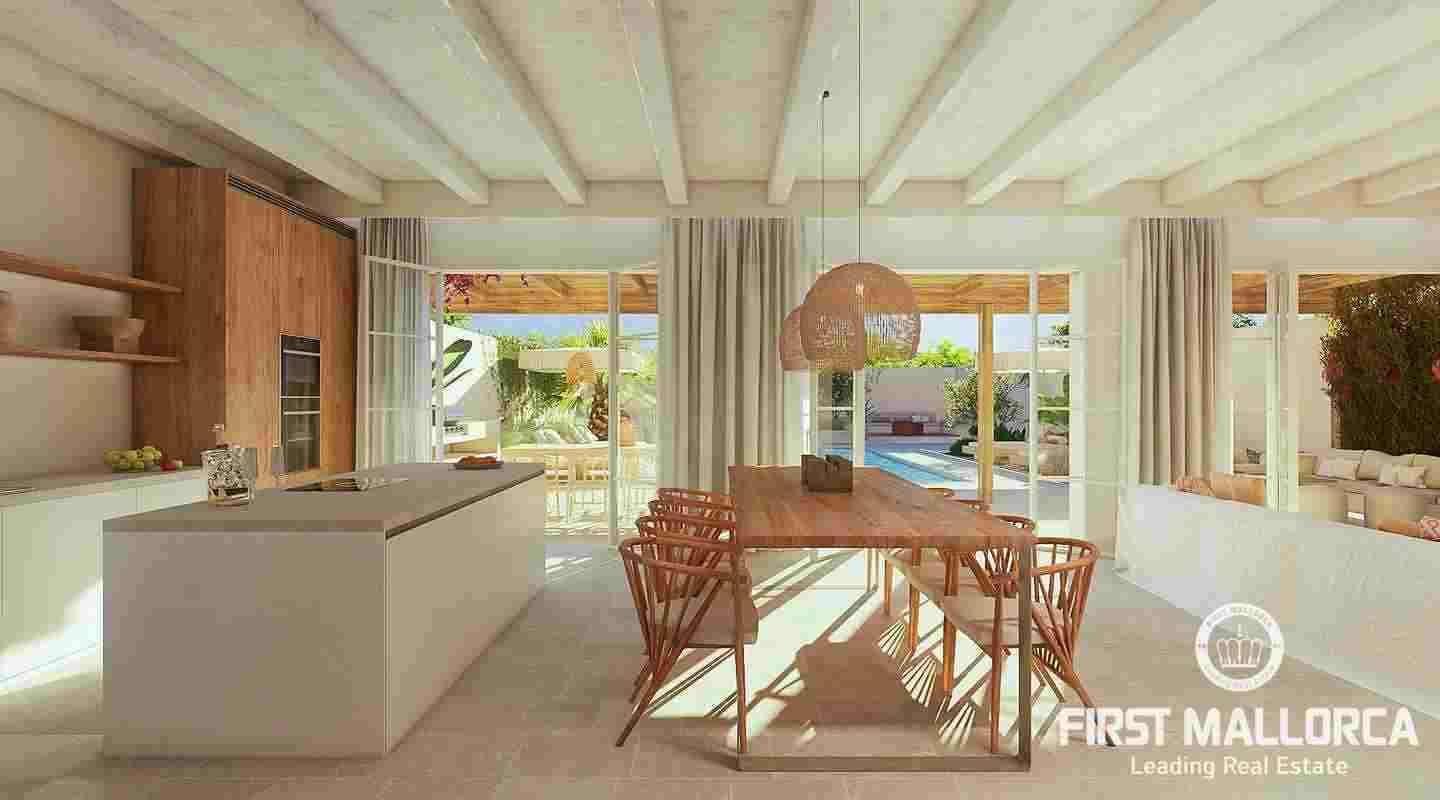 Denna extraordinära fastighet ligger i Ses Salines. Detta townhouse erbjuder dig en underbar trädgård, terrass och poolområde. Själva huset med 275 m2 och 4 sovrum med badrum en suite, samt ett öppet och ljust vardagsrum och matplats. Den har också ett garage. Stora fönster och den öppna designen skapar en otroligt ljus känsla av boende. Missa inte detta unika tillfälle och kontakta oss. Färdigställande av detta nybyggnadsprojekt runt sommaren 2023.
