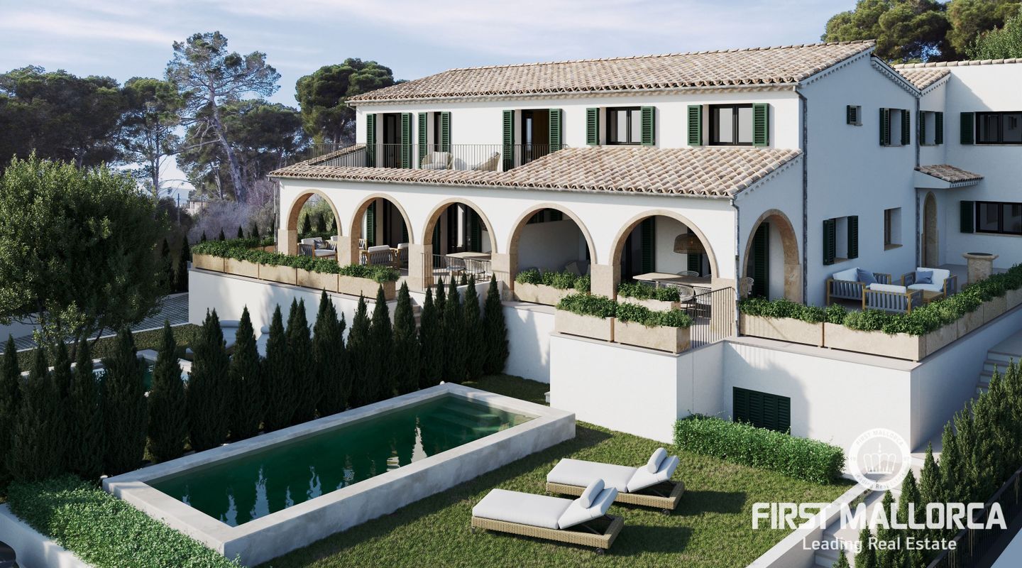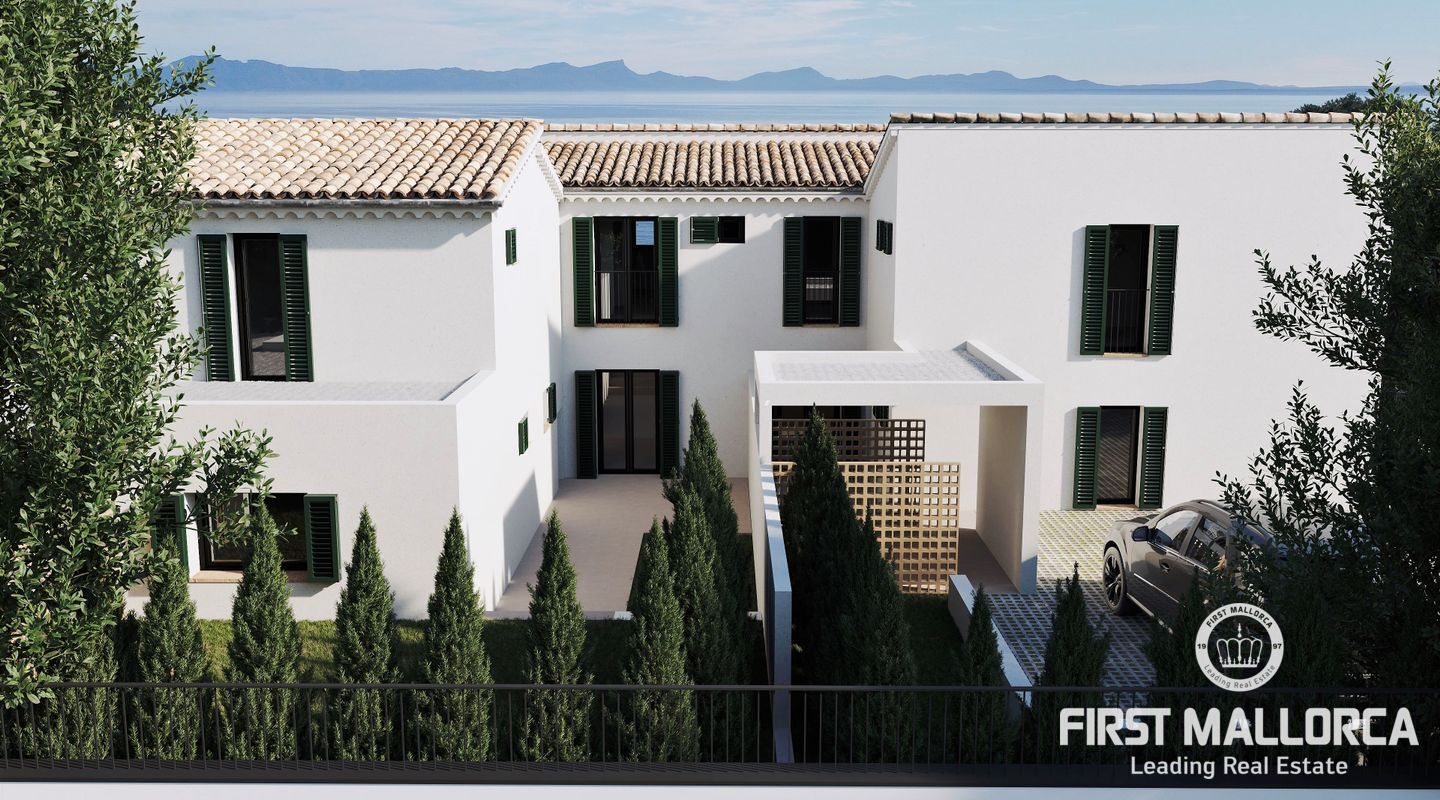 Detta fantastiska projekt kommer att ligga i det charmiga området Alcanada vid havet, med utsikt över Alcúdia-bukten. Parhuset, förutom att vara ljust och rymligt, kommer att fördelas på två våningar och kommer att ha 4 dubbelrum och 3 badrum. Nedre våningen är en öppen planlösning med ett stort vardagsrum med vardagsrum, ett rymligt kök och en matsal med direkt tillgång till verandan, inhägnad trädgård och pool. Denna nivå har också ett sovrum med dubbelsäng med havsutsikt, ett badrum och en uteplats med tvättstuga. Den övre våningen har tre sovrum. Det stora sovrummet med omklädningsrum och badrum en suite och två andra sovrum med badrum och terrass. Dessutom kommer det också att erbjuda parkeringsplats för upp till tre bilar. Huset kommer att vara utrustat med ett varmt och kallt luftkonditioneringssystem. Det är en ny konstruktion och endast material av högsta kvalitet kommer att användas. Det är parhus A, på vänster sida. Det ligger 1 minuts promenad från den prestigefyllda Alcanada Golf Club och 15 minuter från Paseo Maritimo.