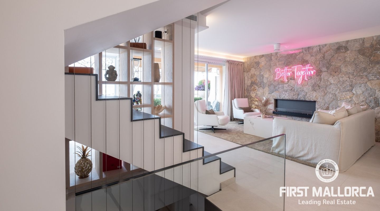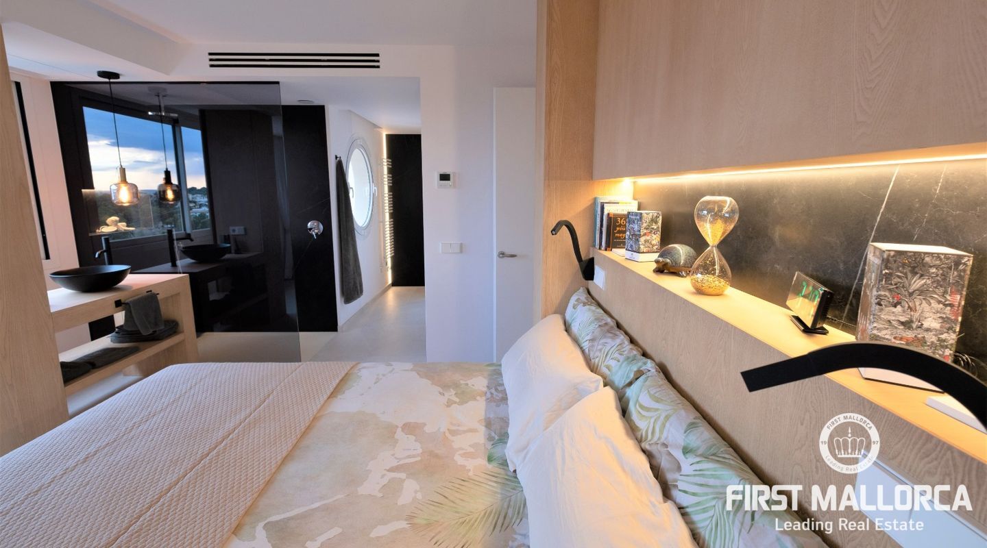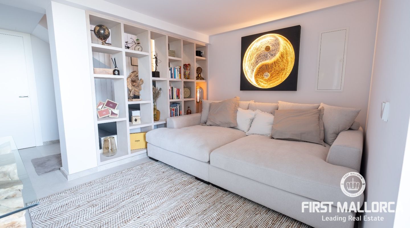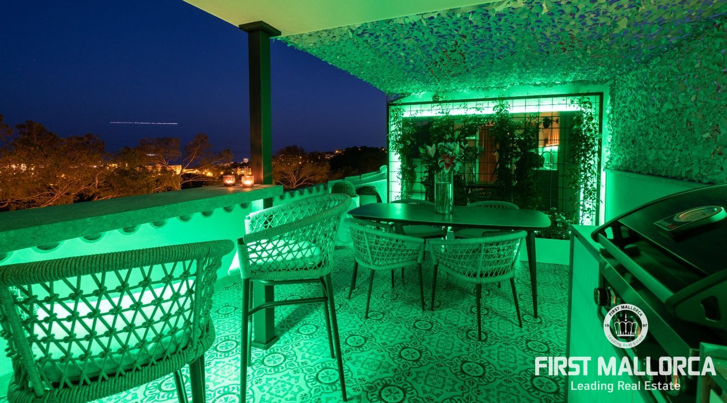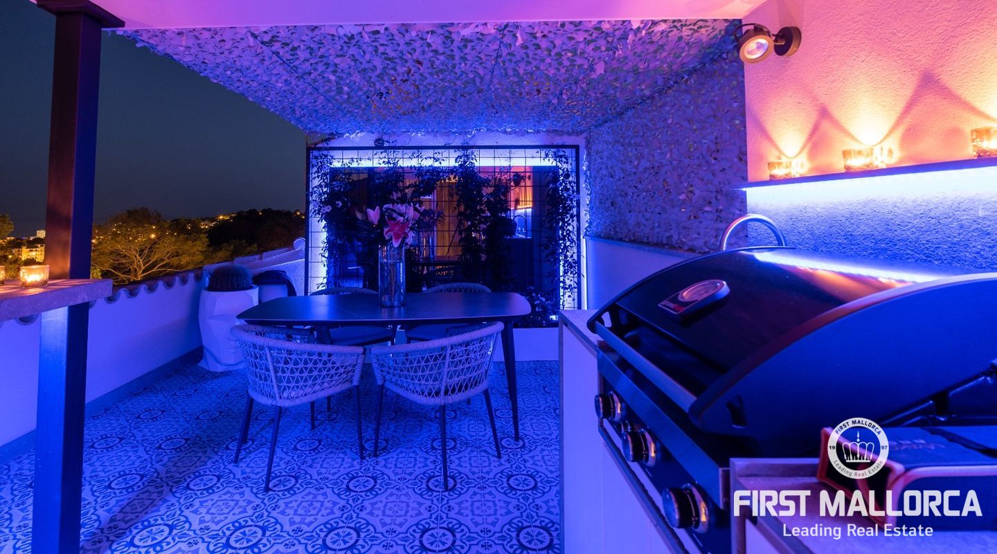 På andra våningen finns det stora sovrummet med eget badrum, ytterligare 2 sovrum och ytterligare ett badrum. Den övre våningen döljer husets juvel, en takterrass med 180 graders utsikt över Palmabukten. Utrustad med grill, diskbänk och kylskåp, bord och bar, och upplyst med ett roligt urval av färgade lysdioder