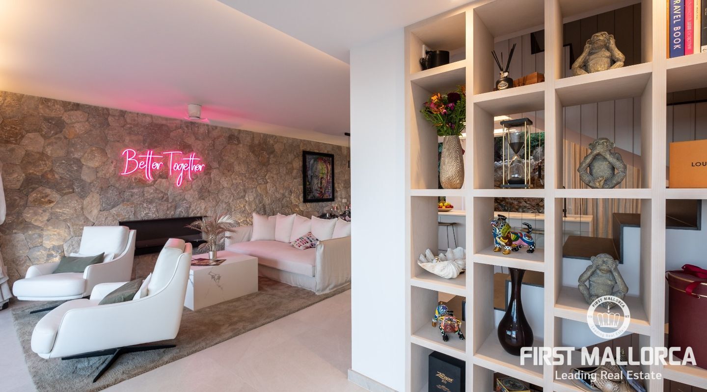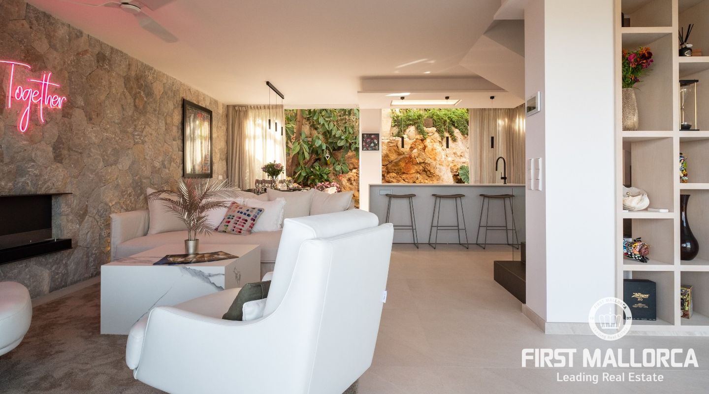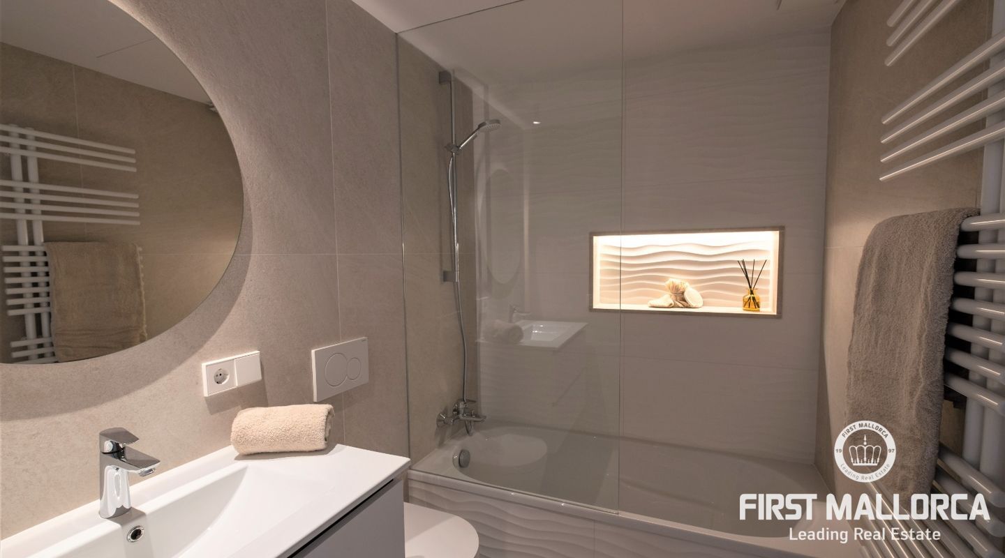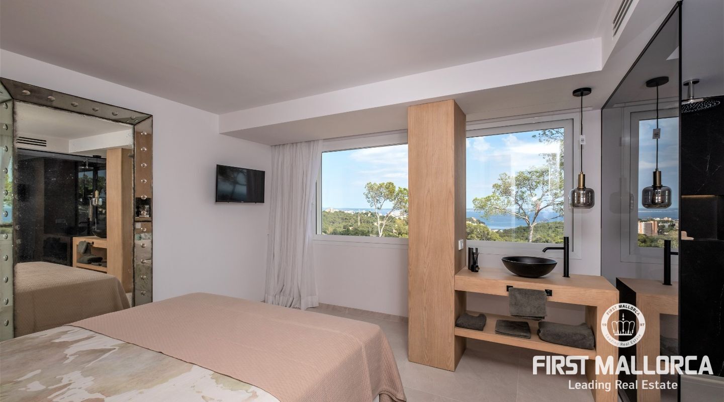 På andra våningen finns det stora sovrummet med eget badrum, ytterligare 2 sovrum och ytterligare ett badrum. Den övre våningen döljer husets juvel, en takterrass med 180 graders utsikt över Palmabukten. Utrustad med grill, diskbänk och kylskåp, bord och bar, och upplyst med ett roligt urval av färgade lysdioder