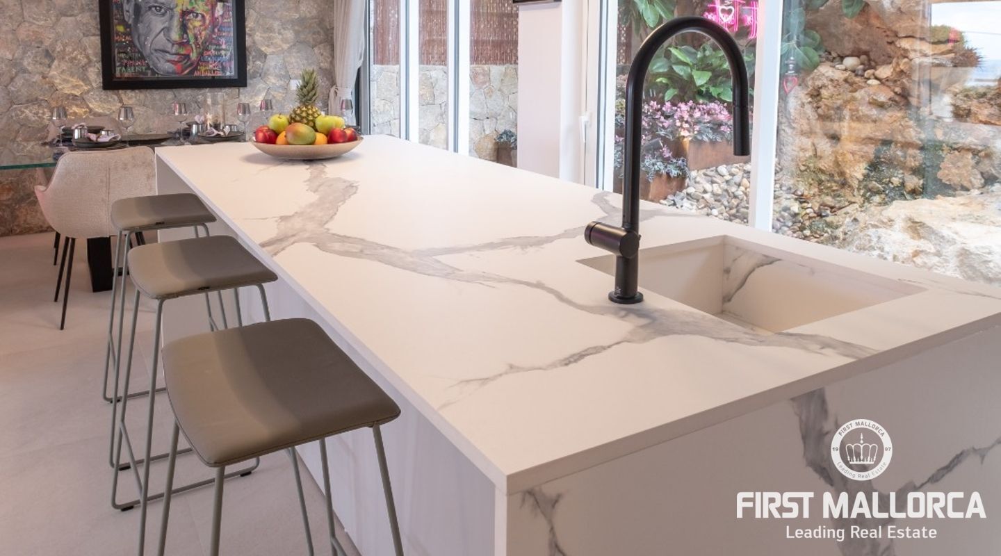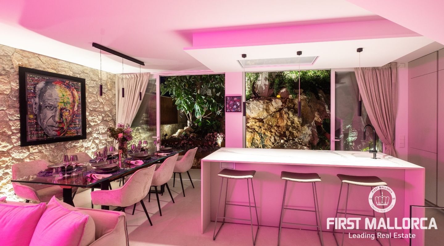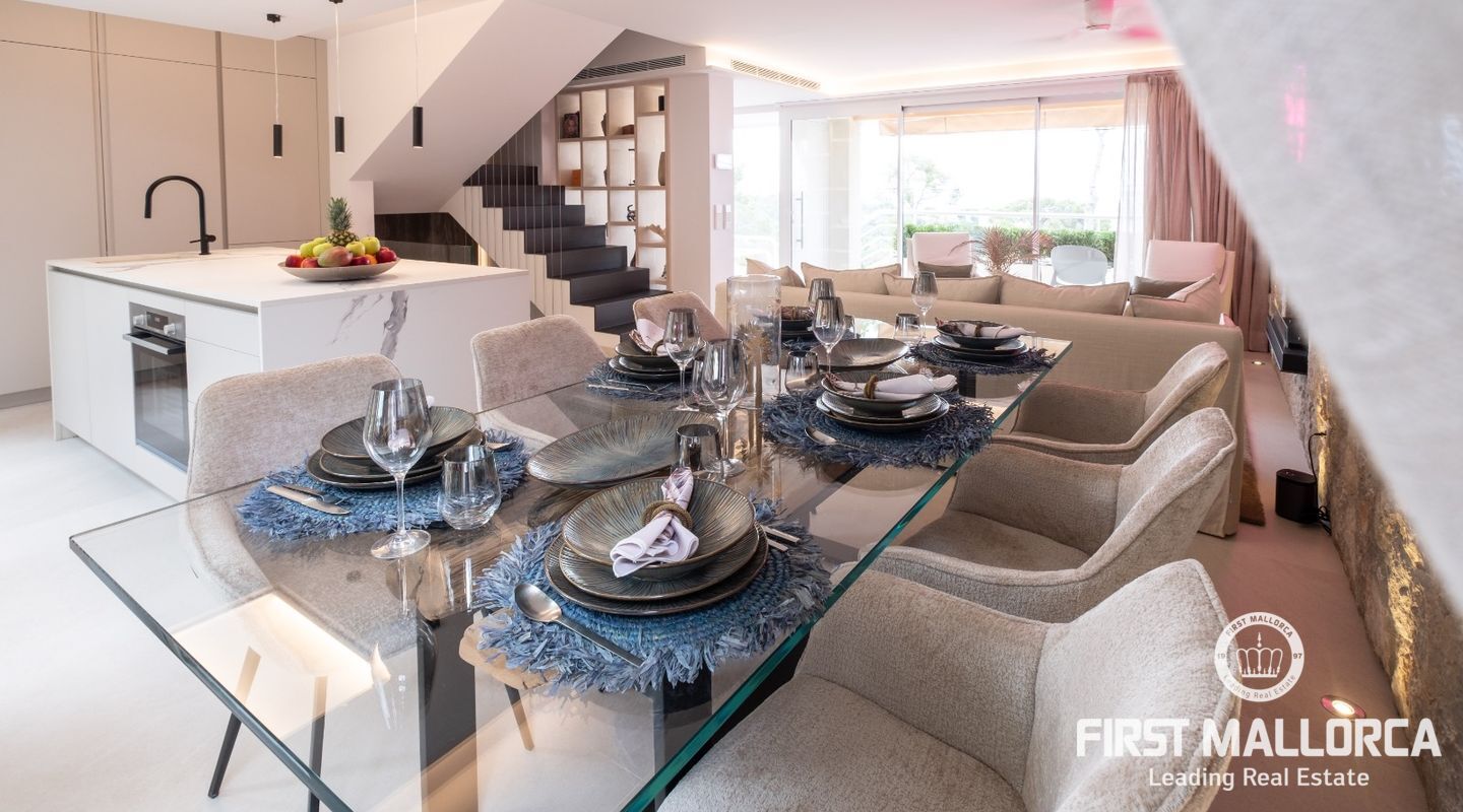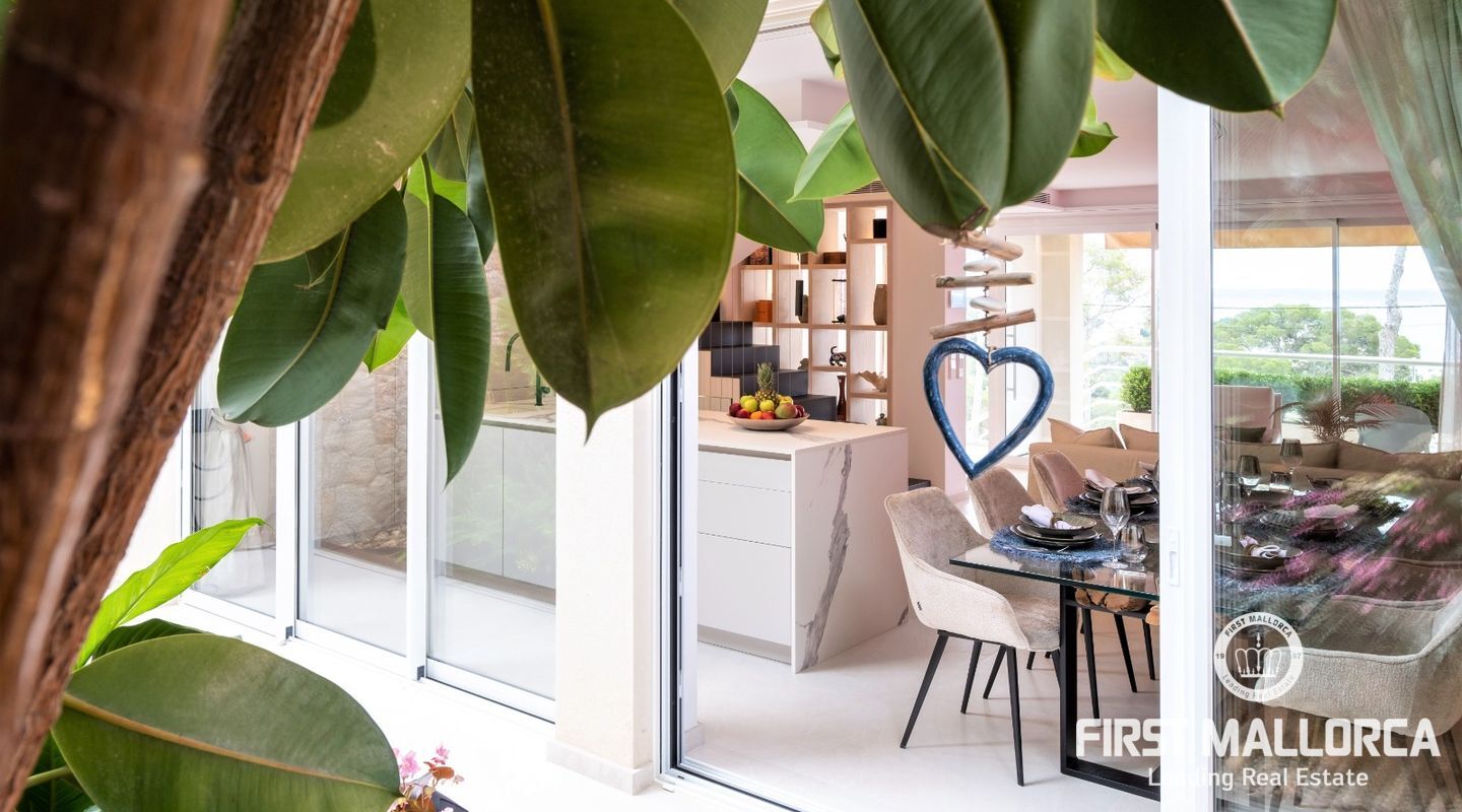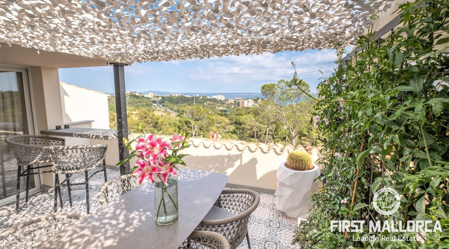 På andra våningen finns det stora sovrummet med eget badrum, ytterligare 2 sovrum och ytterligare ett badrum. Den övre våningen döljer husets juvel, en takterrass med 180 graders utsikt över Palmabukten. Utrustad med grill, diskbänk och kylskåp, bord och bar, och upplyst med ett roligt urval av färgade lysdioder