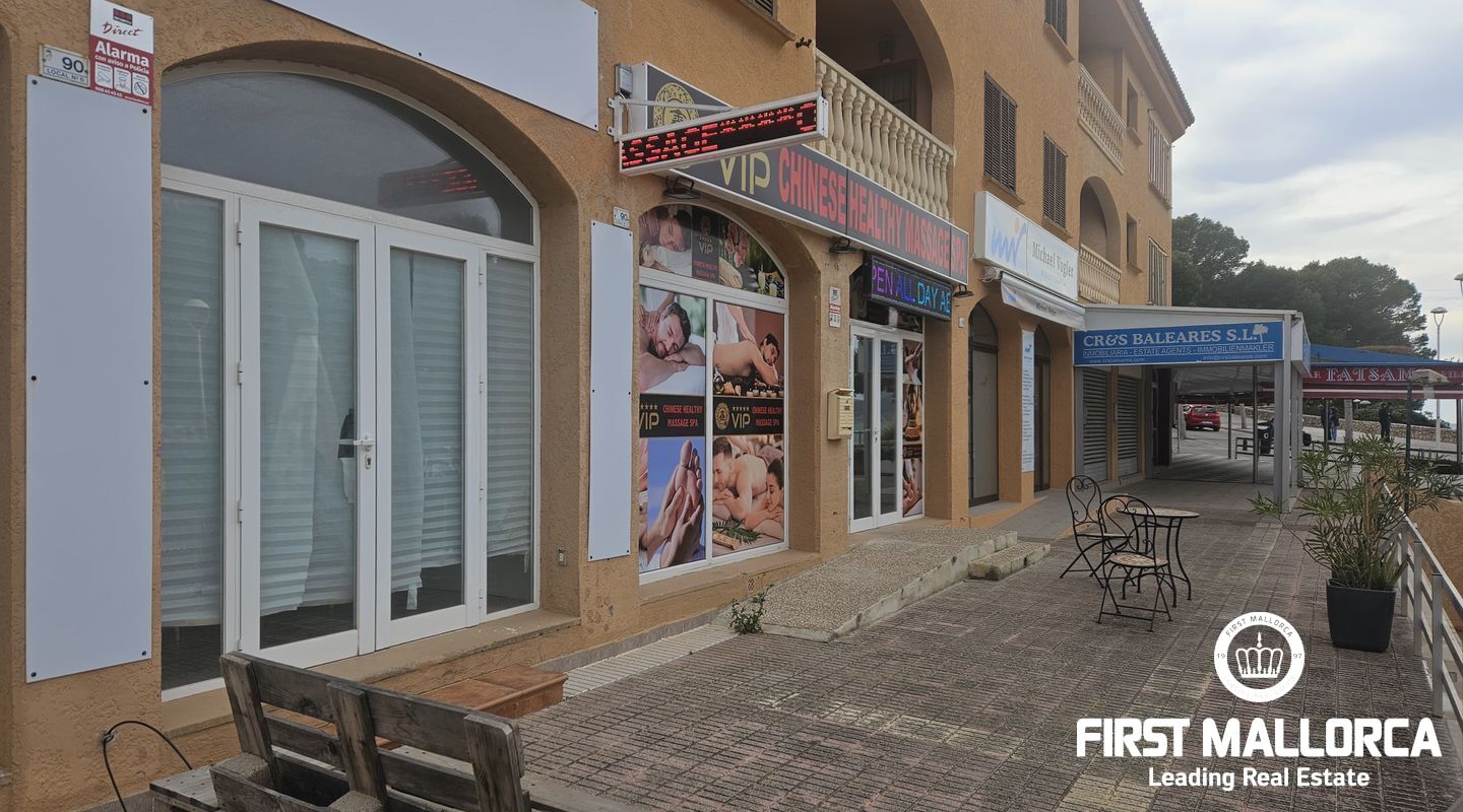 Lokalen med en rymlig storlek som för närvarande används som en spa-butik, ett badrum, ett skafferi mellan huvudrummet och badrummet, trappor som leder till ett område under lokalen som också kan användas som förråd. Terrassen är för privat bruk med utsikt över stranden. Det ingår en parkeringsplats vilket gör det inte bara till en bekväm affärslokal utan också till ett önskvärt och centralt läge på stranden där många kunder passerar.