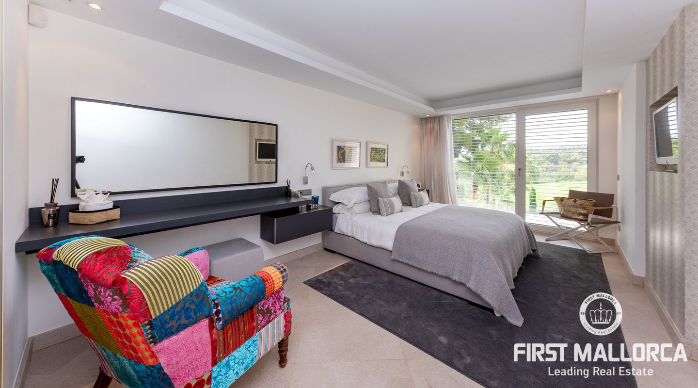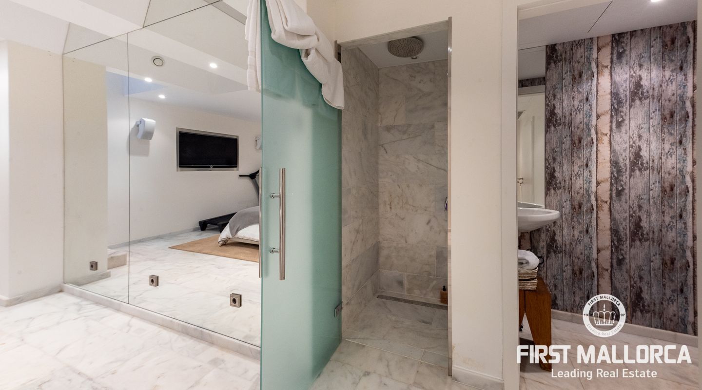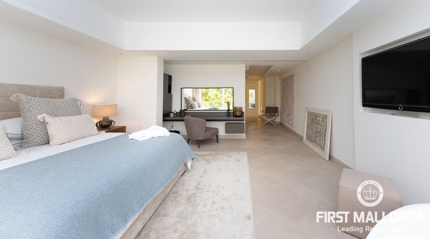 Denna enastående villa ligger på en rymlig 1.750 m2 tomt och har en byggd yta på ca 550 m2, och ytterligare 200m2 ca terrasser. Det finns 4 sovrum med eget badrum och wallk i garderober och en gästtoalett. Spa-avdelningen och gymmet används för närvarande som ett rymligt 5: e sovrum med eget badrum. Det finns också en härlig platt gräsmatta med fruktträd utöver de gräsmattor som omger poolterrasserna.