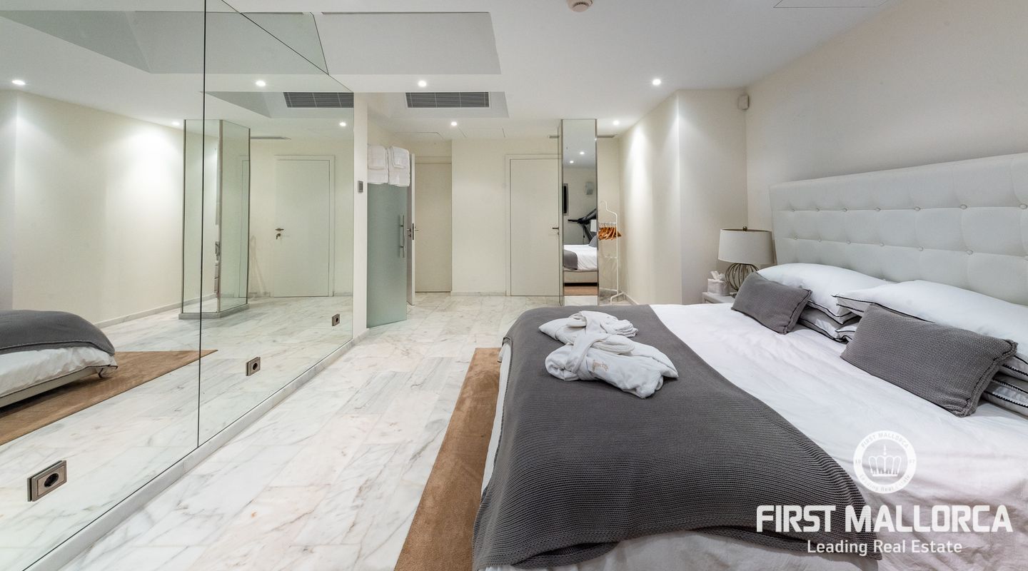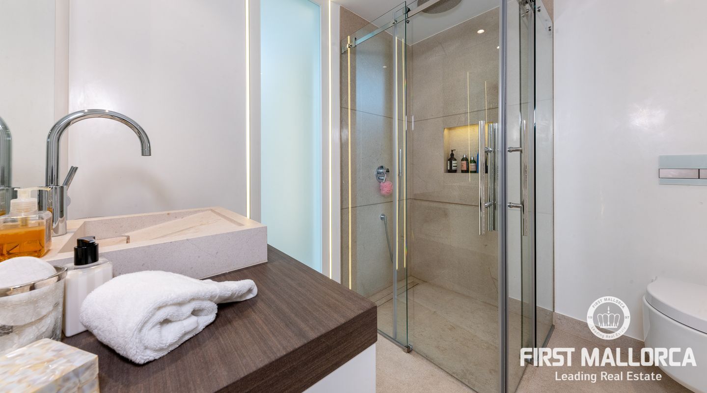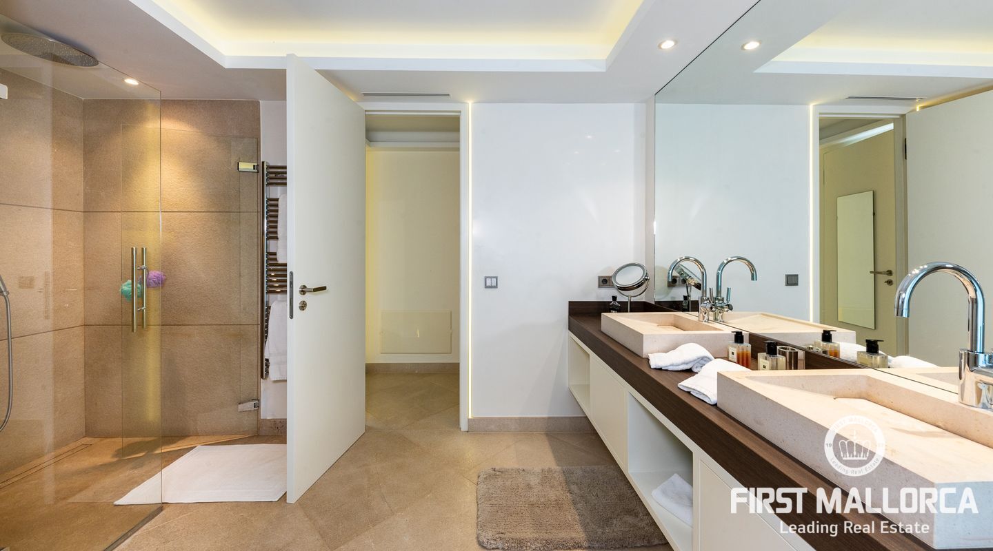 Denna enastående villa ligger på en rymlig 1.750 m2 tomt och har en byggd yta på ca 550 m2, och ytterligare 200m2 ca terrasser. Det finns 4 sovrum med eget badrum och wallk i garderober och en gästtoalett. Spa-avdelningen och gymmet används för närvarande som ett rymligt 5: e sovrum med eget badrum. Det finns också en härlig platt gräsmatta med fruktträd utöver de gräsmattor som omger poolterrasserna.