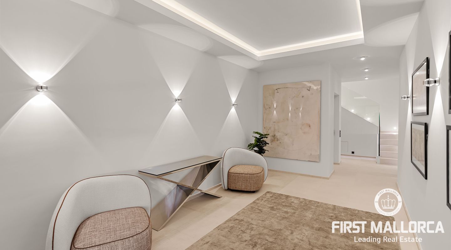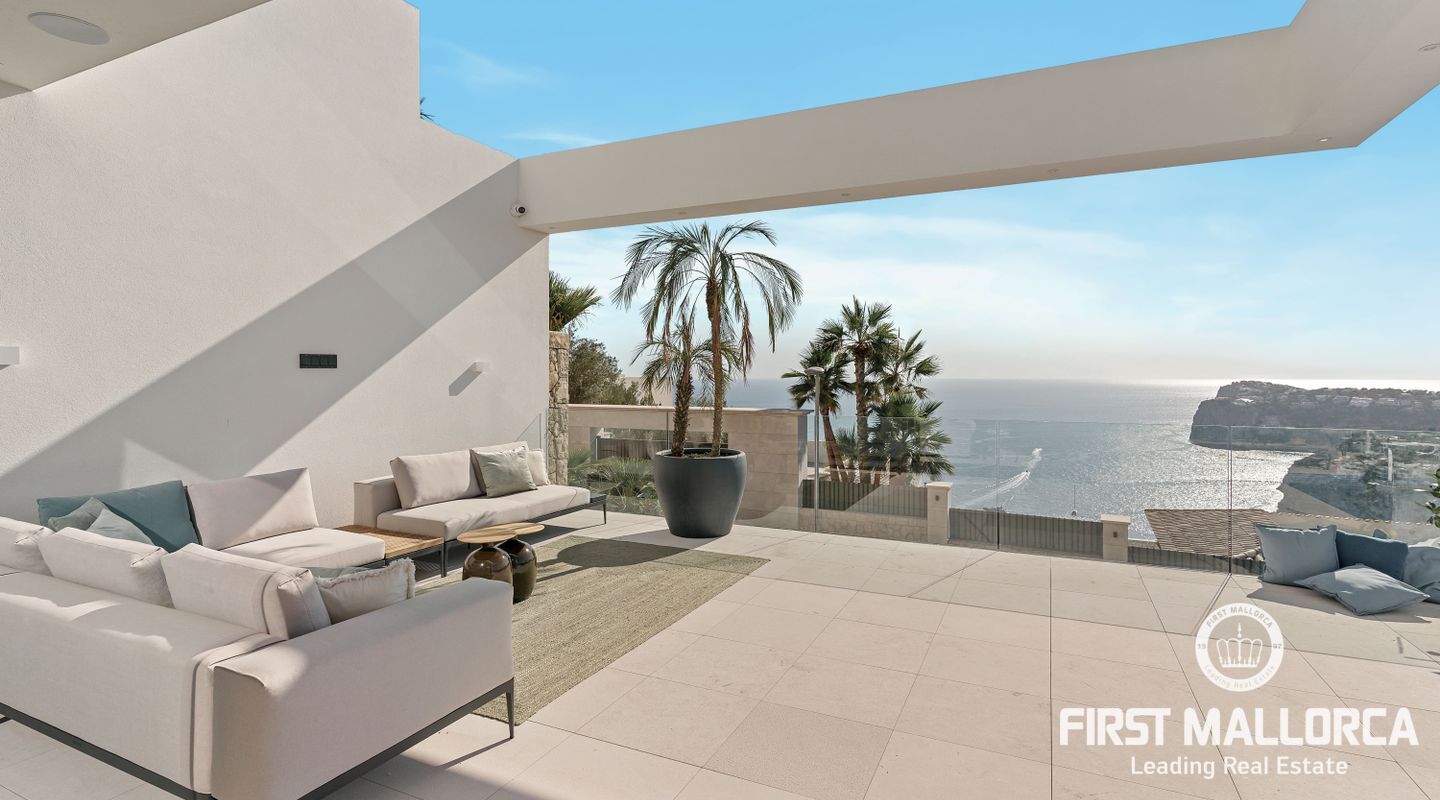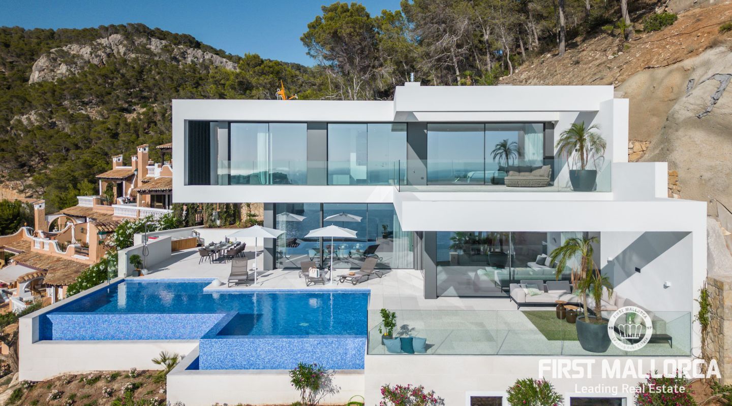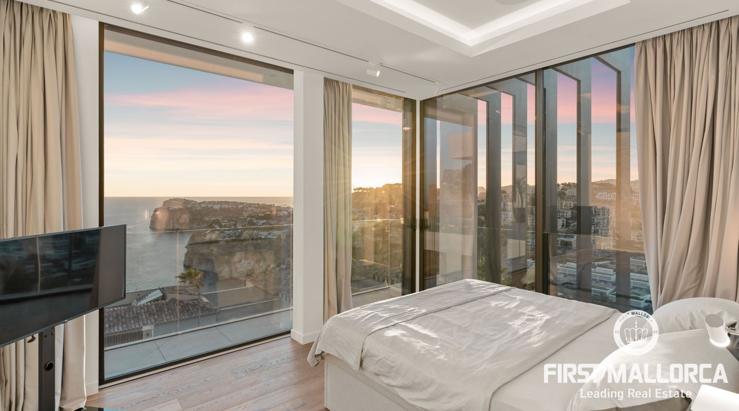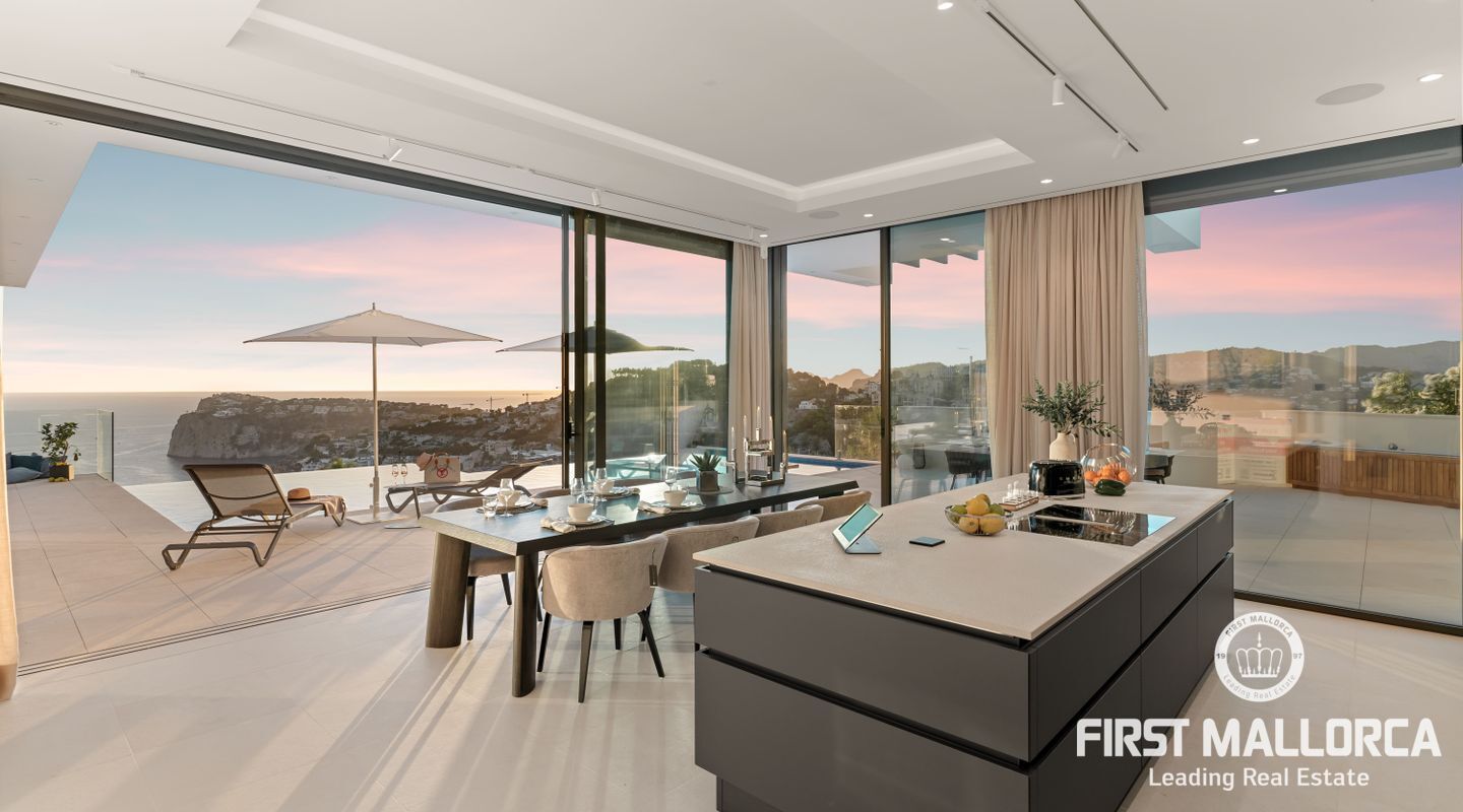 Denna moderna, fullt möblerade villa ligger i en av de vackraste vikarna i Puerto Andratx, Cala Llamp. Förutom bearbetningen av de finaste materialen är den absoluta höjdpunkten den spektakulära havsutsikten med solnedgångsgaranti. Fastigheten erbjuder en imponerande uppfart med vändskiva för din bil, en entréhall med central trappa och hiss till alla våningar. Upp till sex generösa sovrum med eget badrum och inbyggda garderober finns tillgängliga för ägaren och hans gäster. Vardagsrummet / matsalen med rymligt ultramodernt kök och de senaste Gaggenau-elektriska apparaterna, ansluter sömlöst till det stora terrassområdet med infinitypool och fri havsutsikt. Naturstengolv i stort format på terrasserna och i vardagsrummet, samt parkettgolv i sovrummen understryker den eleganta karaktären hos denna fantastiska villa. Funktionerna inkluderar: Underjordisk parkering för upp till 6 bilar, lyxiga badrum med inredning av Dornbracht och Hansgrohe, hemautomation, golvvärme, individuellt styrd luftkonditionering, vattenmjuknings- och reningssystem, en gasväggspis och en helt planterad och upplyst trädgård med automatiskt bevattningssystem. Kontakta oss gärna när som helst för mer information.