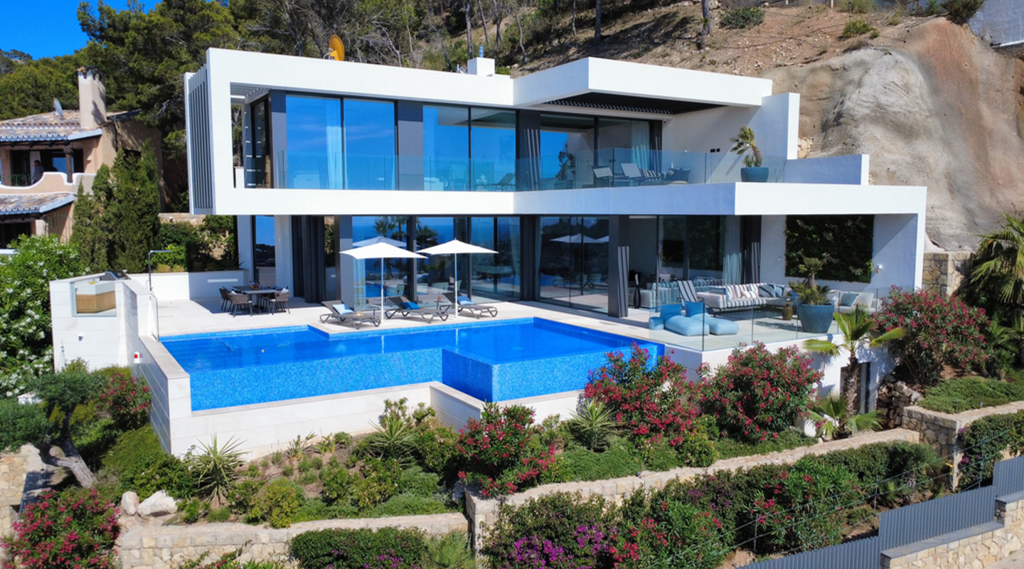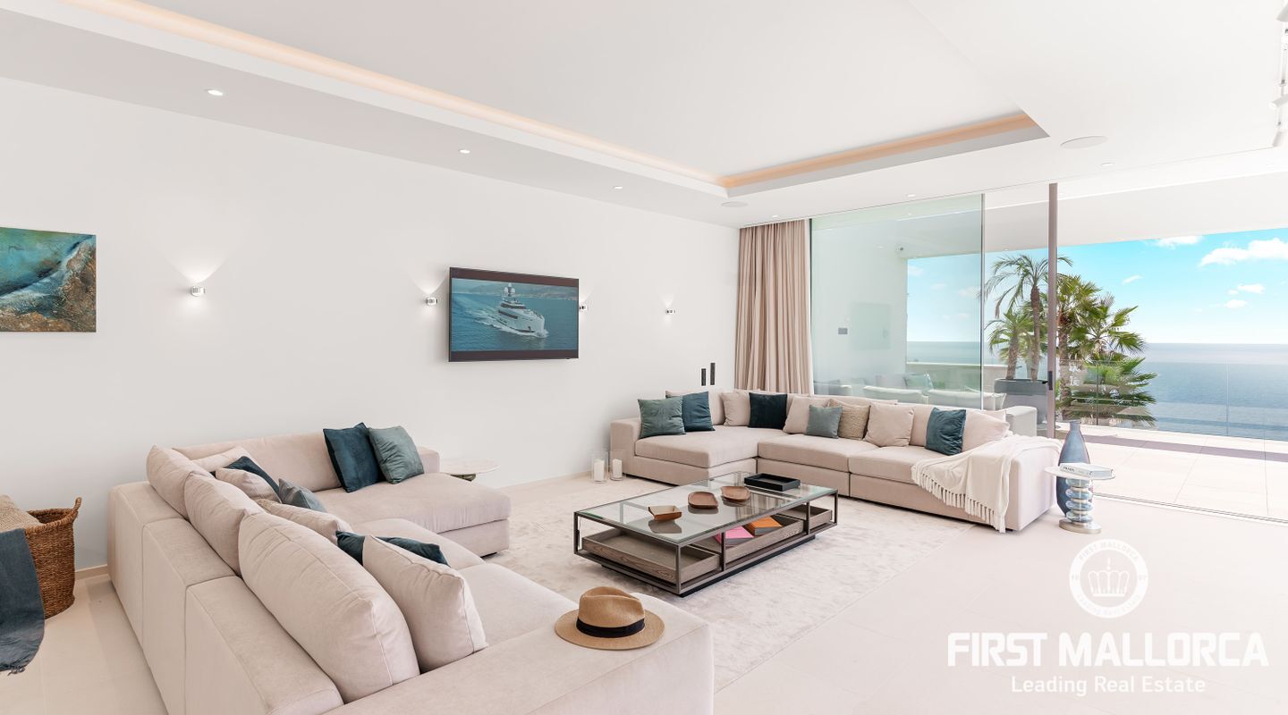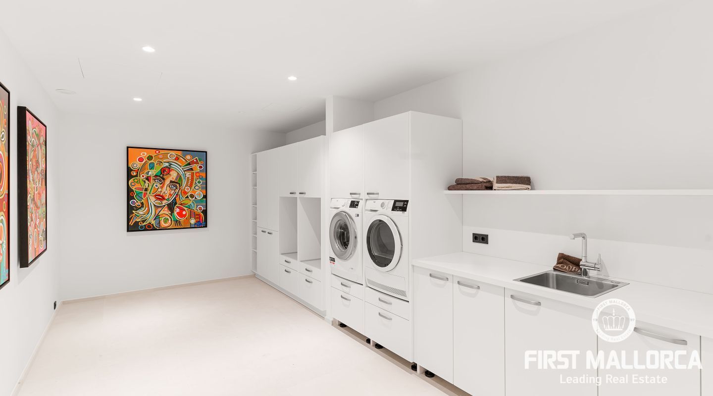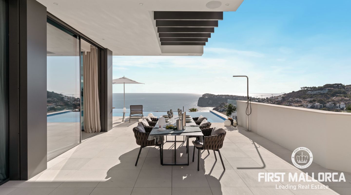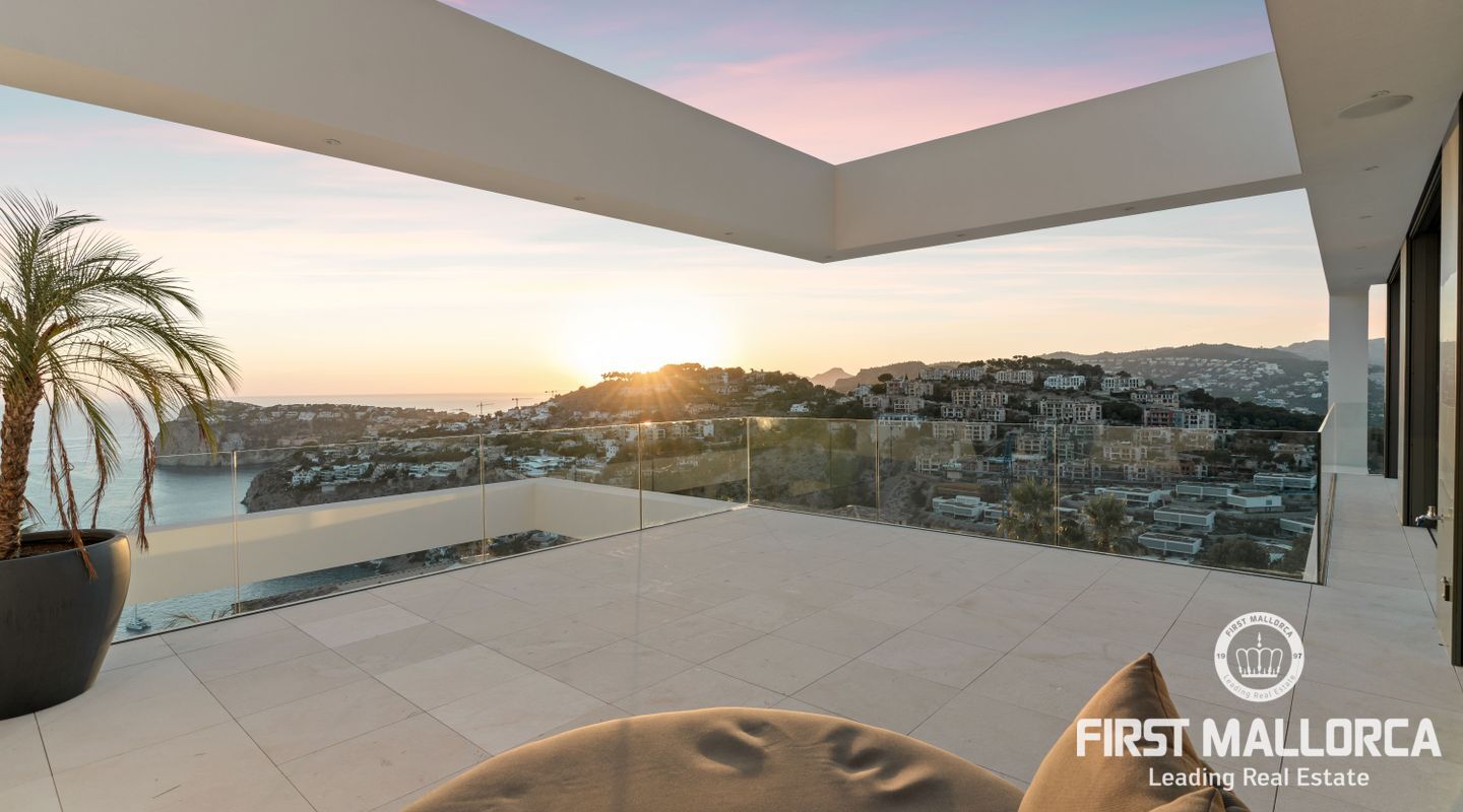 Denna moderna, fullt möblerade villa ligger i en av de vackraste vikarna i Puerto Andratx, Cala Llamp. Förutom bearbetningen av de finaste materialen är den absoluta höjdpunkten den spektakulära havsutsikten med solnedgångsgaranti. Fastigheten erbjuder en imponerande uppfart med vändskiva för din bil, en entréhall med central trappa och hiss till alla våningar. Upp till sex generösa sovrum med eget badrum och inbyggda garderober finns tillgängliga för ägaren och hans gäster. Vardagsrummet / matsalen med rymligt ultramodernt kök och de senaste Gaggenau-elektriska apparaterna, ansluter sömlöst till det stora terrassområdet med infinitypool och fri havsutsikt. Naturstengolv i stort format på terrasserna och i vardagsrummet, samt parkettgolv i sovrummen understryker den eleganta karaktären hos denna fantastiska villa. Funktionerna inkluderar: Underjordisk parkering för upp till 6 bilar, lyxiga badrum med inredning av Dornbracht och Hansgrohe, hemautomation, golvvärme, individuellt styrd luftkonditionering, vattenmjuknings- och reningssystem, en gasväggspis och en helt planterad och upplyst trädgård med automatiskt bevattningssystem. Kontakta oss gärna när som helst för mer information.