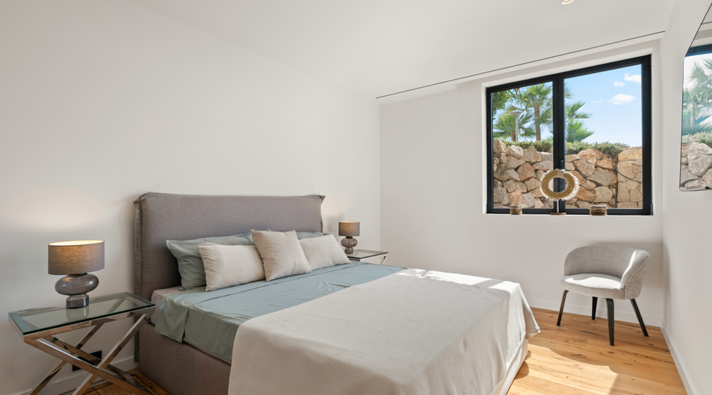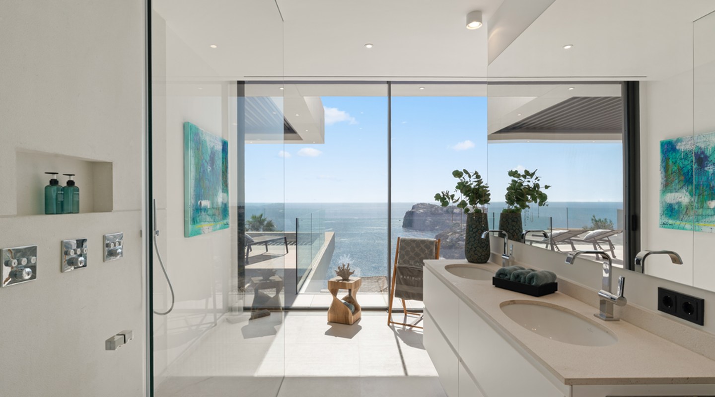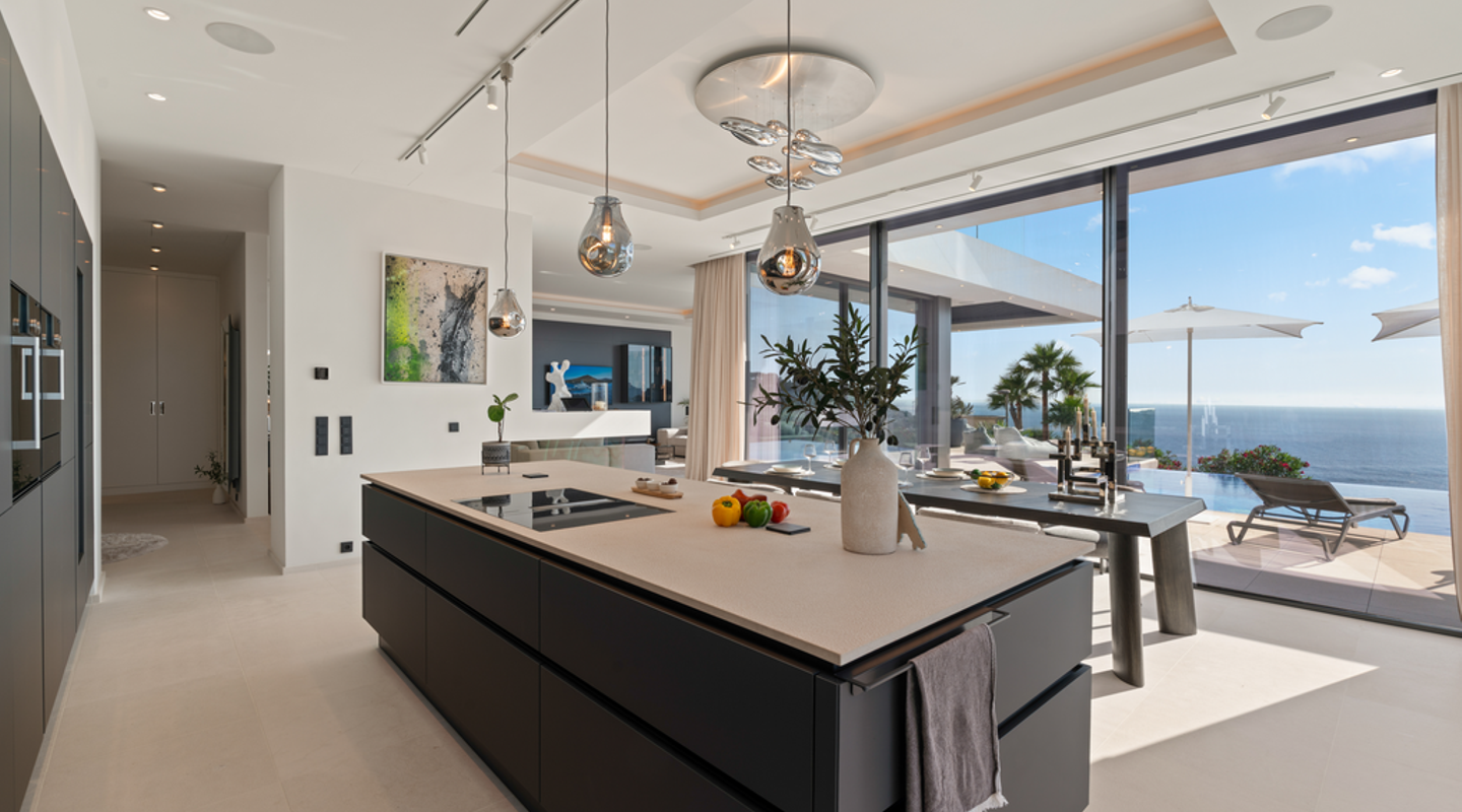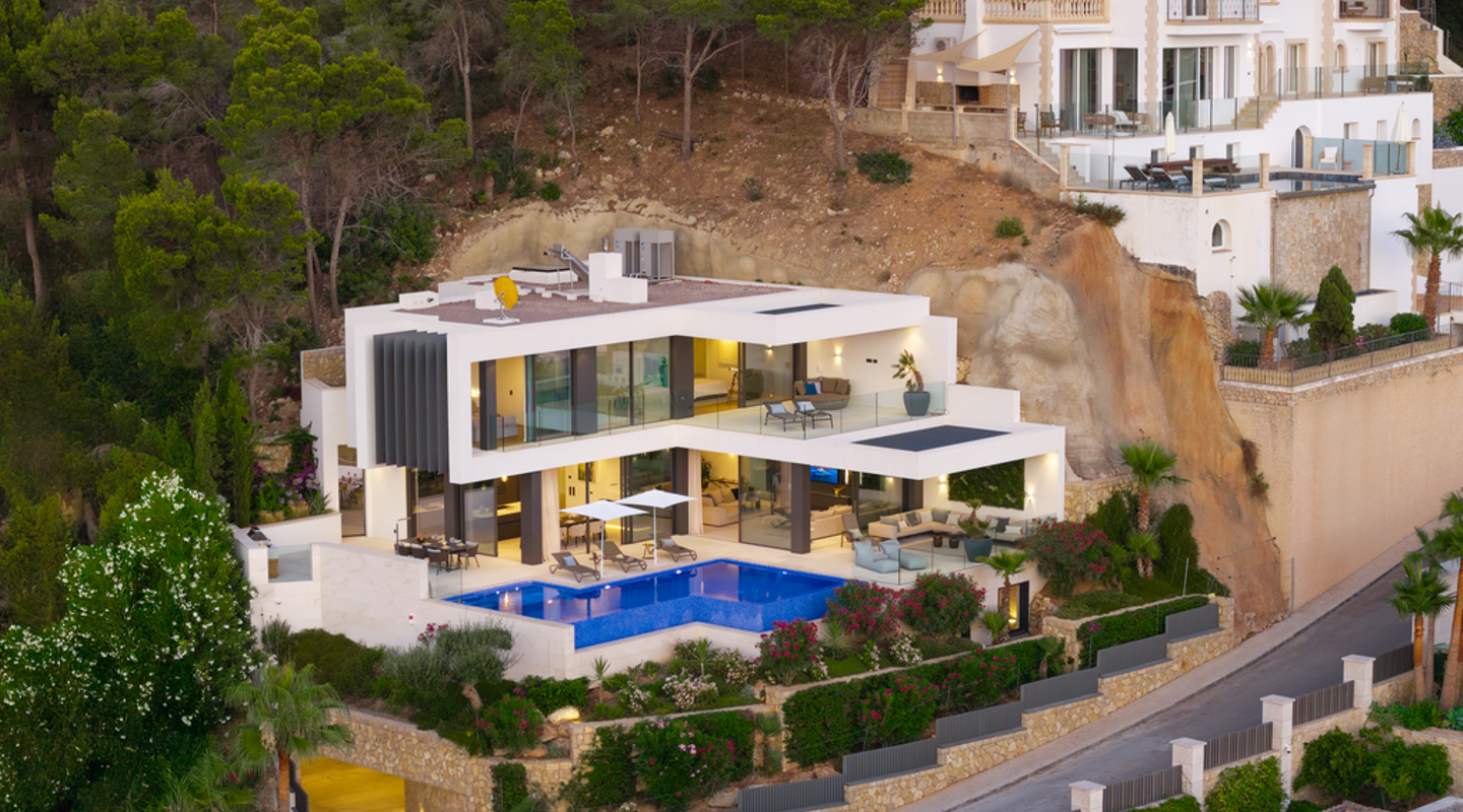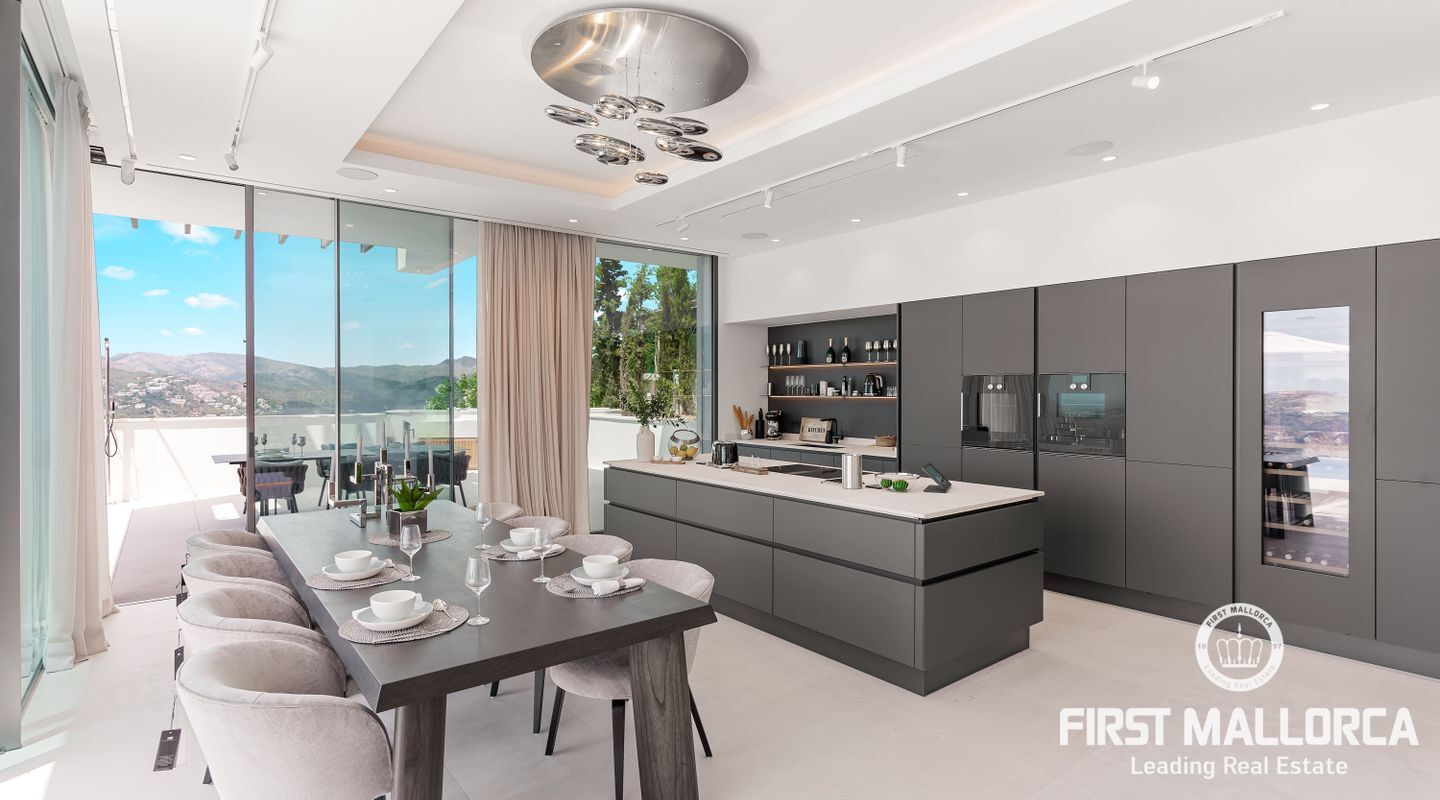 Denna moderna, fullt möblerade villa ligger i en av de vackraste vikarna i Puerto Andratx, Cala Llamp. Förutom bearbetningen av de finaste materialen är den absoluta höjdpunkten den spektakulära havsutsikten med solnedgångsgaranti. Fastigheten erbjuder en imponerande uppfart med vändskiva för din bil, en entréhall med central trappa och hiss till alla våningar. Upp till sex generösa sovrum med eget badrum och inbyggda garderober finns tillgängliga för ägaren och hans gäster. Vardagsrummet / matsalen med rymligt ultramodernt kök och de senaste Gaggenau-elektriska apparaterna, ansluter sömlöst till det stora terrassområdet med infinitypool och fri havsutsikt. Naturstengolv i stort format på terrasserna och i vardagsrummet, samt parkettgolv i sovrummen understryker den eleganta karaktären hos denna fantastiska villa. Funktionerna inkluderar: Underjordisk parkering för upp till 6 bilar, lyxiga badrum med inredning av Dornbracht och Hansgrohe, hemautomation, golvvärme, individuellt styrd luftkonditionering, vattenmjuknings- och reningssystem, en gasväggspis och en helt planterad och upplyst trädgård med automatiskt bevattningssystem. Kontakta oss gärna när som helst för mer information.