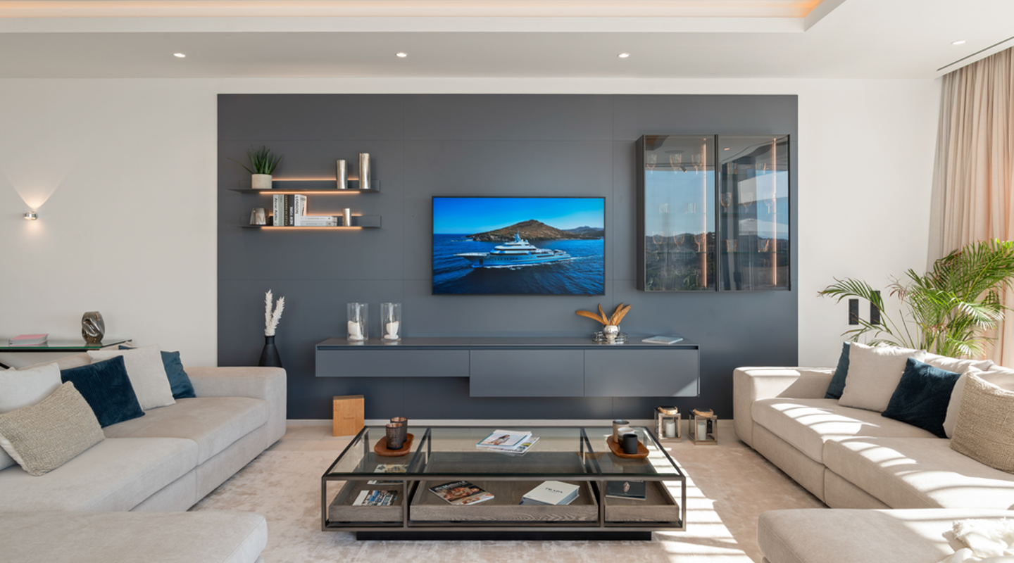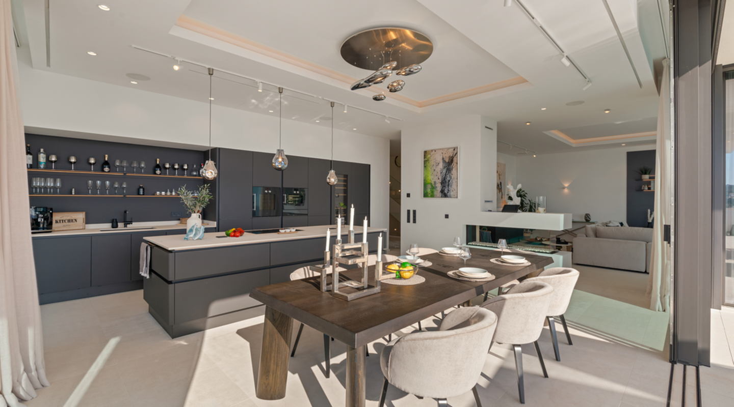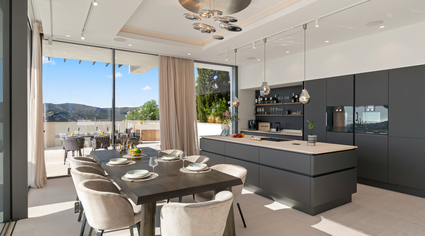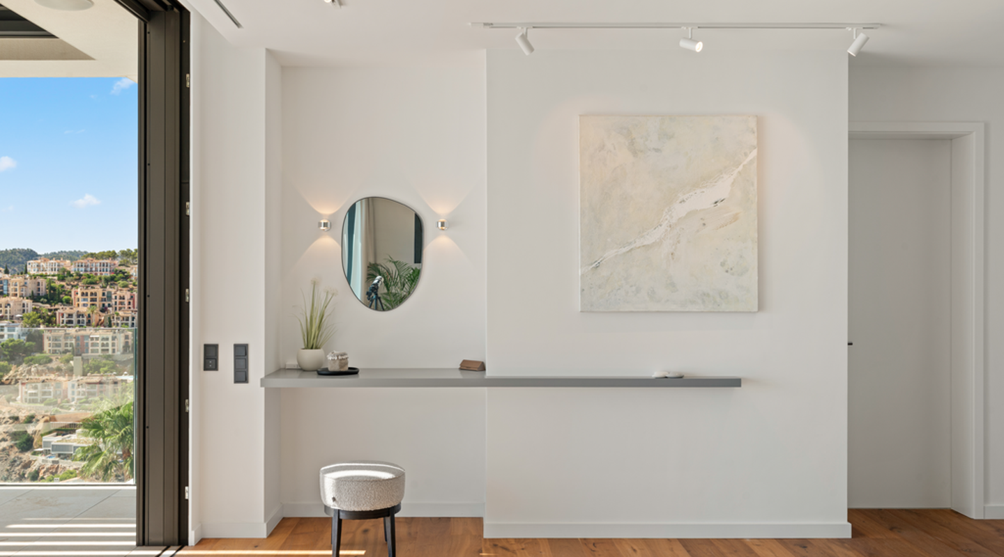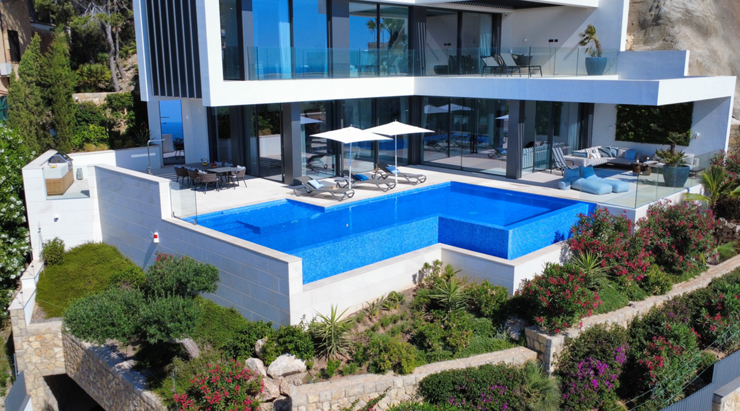 Denna moderna, fullt möblerade villa ligger i en av de vackraste vikarna i Puerto Andratx, Cala Llamp. Förutom bearbetningen av de finaste materialen är den absoluta höjdpunkten den spektakulära havsutsikten med solnedgångsgaranti. Fastigheten erbjuder en imponerande uppfart med vändskiva för din bil, en entréhall med central trappa och hiss till alla våningar. Upp till sex generösa sovrum med eget badrum och inbyggda garderober finns tillgängliga för ägaren och hans gäster. Vardagsrummet / matsalen med rymligt ultramodernt kök och de senaste Gaggenau-elektriska apparaterna, ansluter sömlöst till det stora terrassområdet med infinitypool och fri havsutsikt. Naturstengolv i stort format på terrasserna och i vardagsrummet, samt parkettgolv i sovrummen understryker den eleganta karaktären hos denna fantastiska villa. Funktionerna inkluderar: Underjordisk parkering för upp till 6 bilar, lyxiga badrum med inredning av Dornbracht och Hansgrohe, hemautomation, golvvärme, individuellt styrd luftkonditionering, vattenmjuknings- och reningssystem, en gasväggspis och en helt planterad och upplyst trädgård med automatiskt bevattningssystem. Kontakta oss gärna när som helst för mer information.