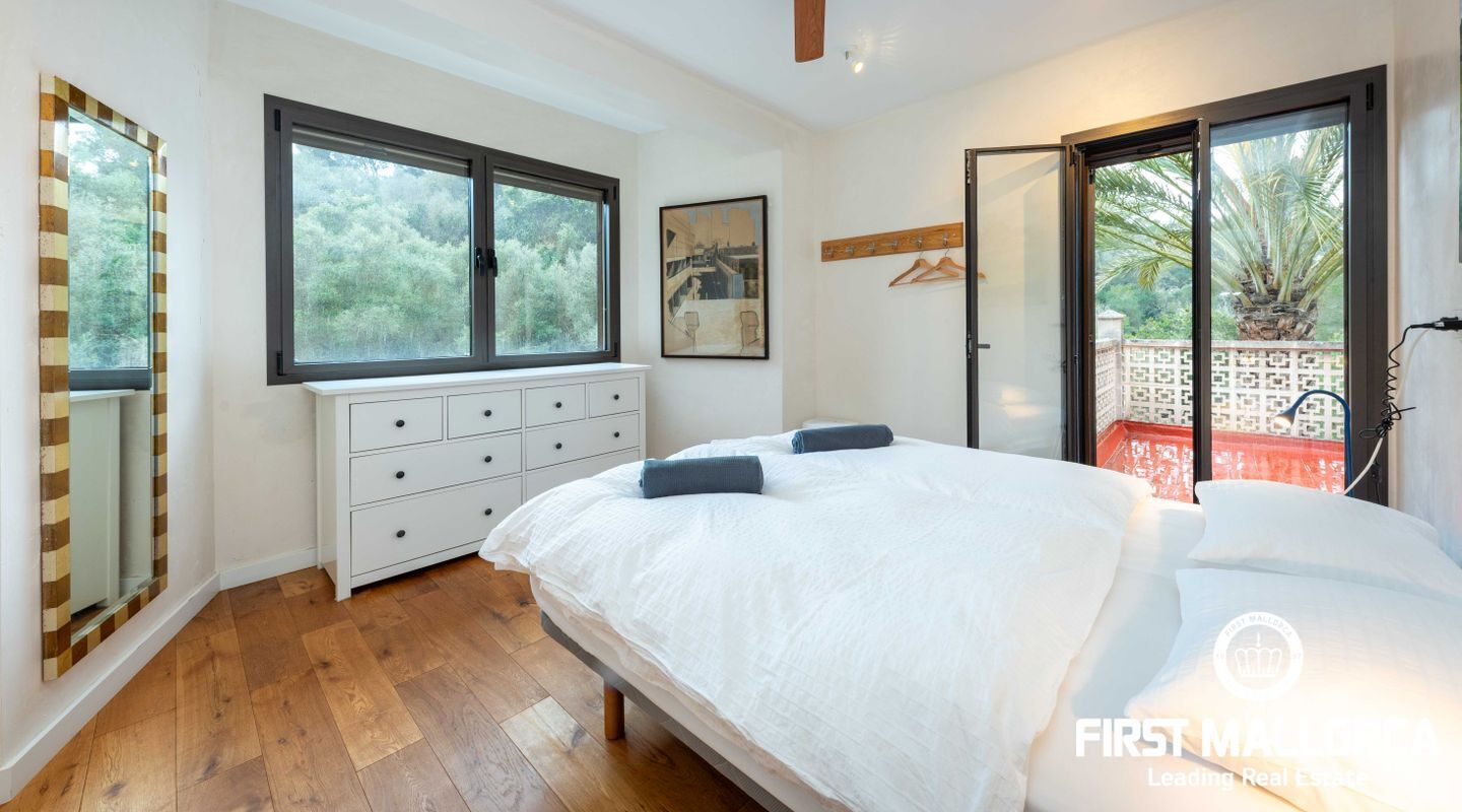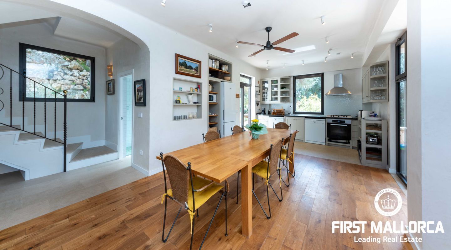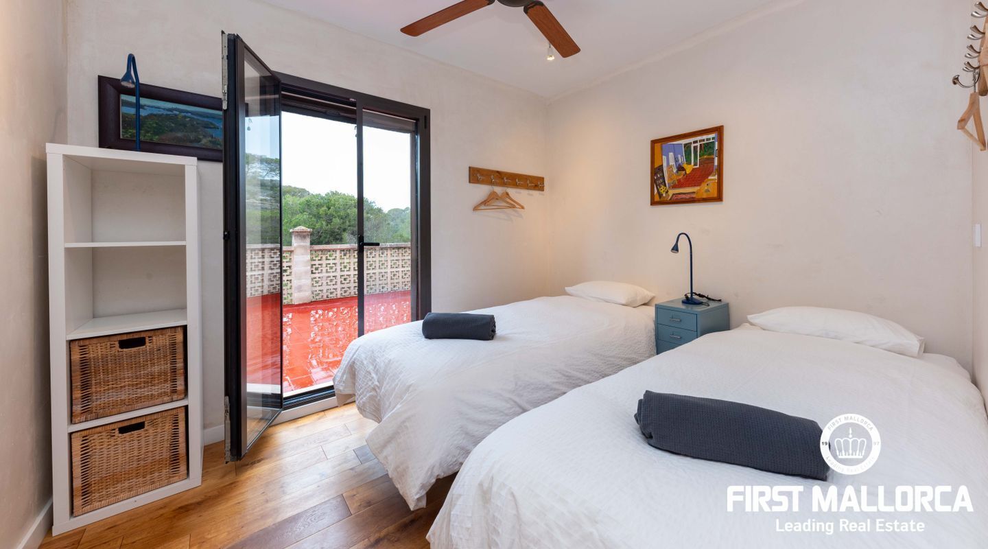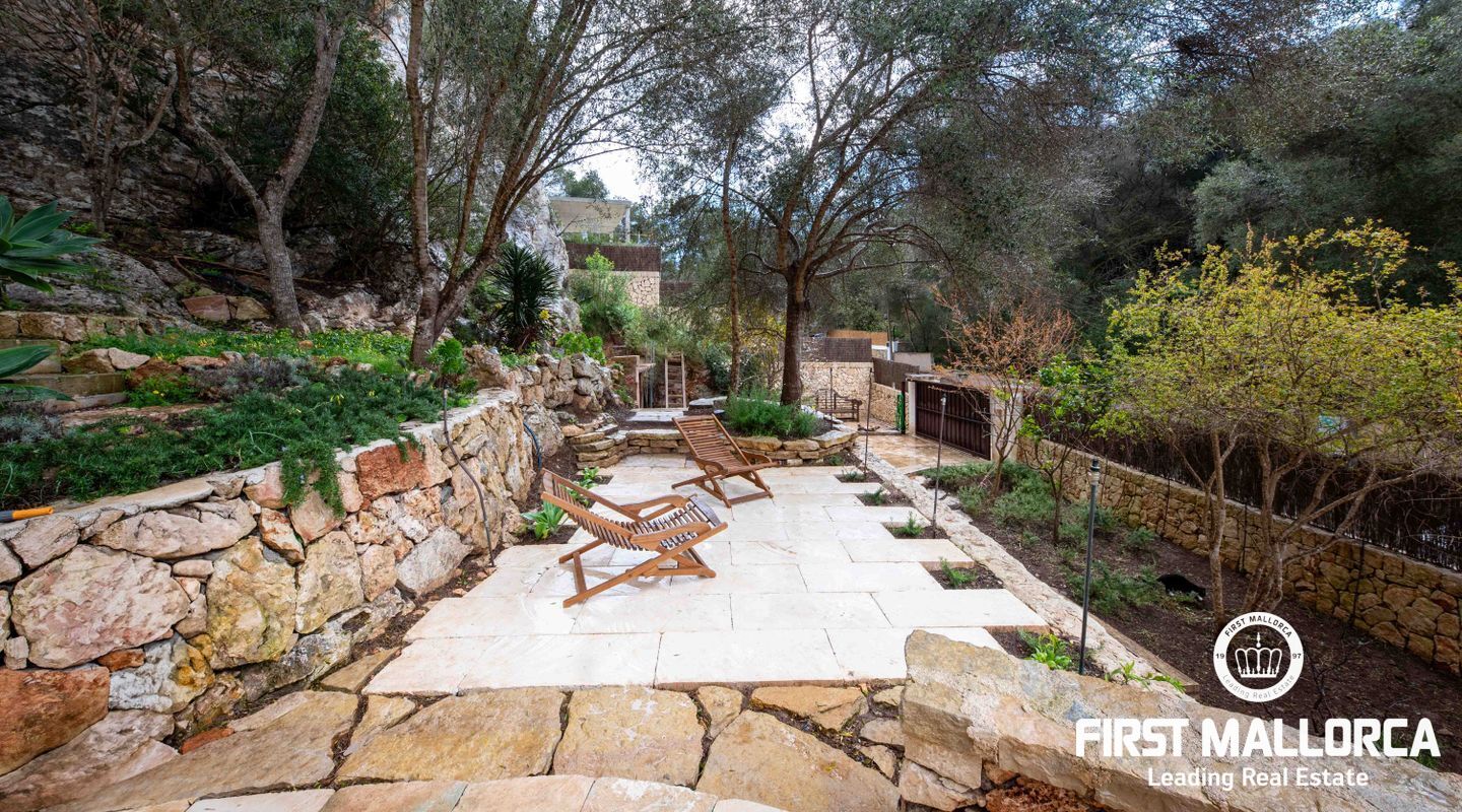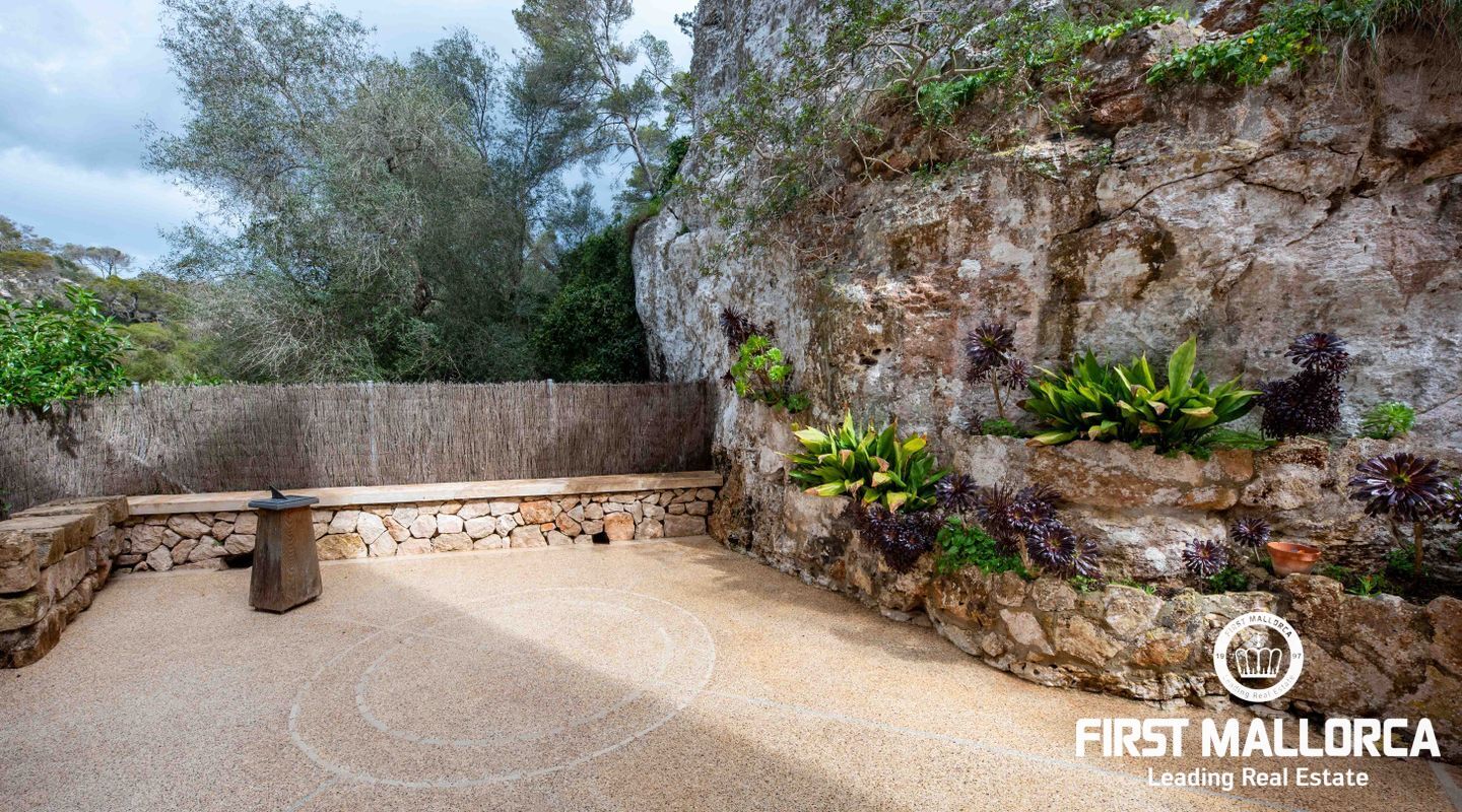 Denna villa ligger i den spektakulära bukten Cala Llombards och är en verklig fristad för fred och natur. Bara två minuters promenad från stranden erbjuder den en makalös boendeupplevelse, omgiven av vilda olivträd och inhemsk vegetation. Dess privilegierade läge på en sluttning skyddar inte bara mot vinden utan ger också absolut avskildhet.