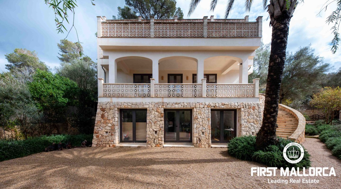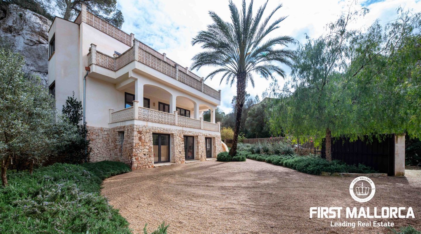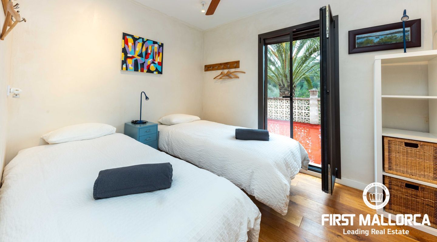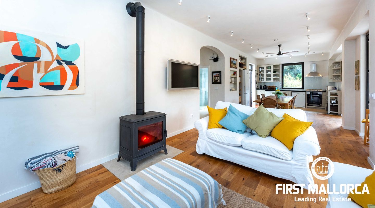 Denna villa ligger i den spektakulära bukten Cala Llombards och är en verklig fristad för fred och natur. Bara två minuters promenad från stranden erbjuder den en makalös boendeupplevelse, omgiven av vilda olivträd och inhemsk vegetation. Dess privilegierade läge på en sluttning skyddar inte bara mot vinden utan ger också absolut avskildhet.