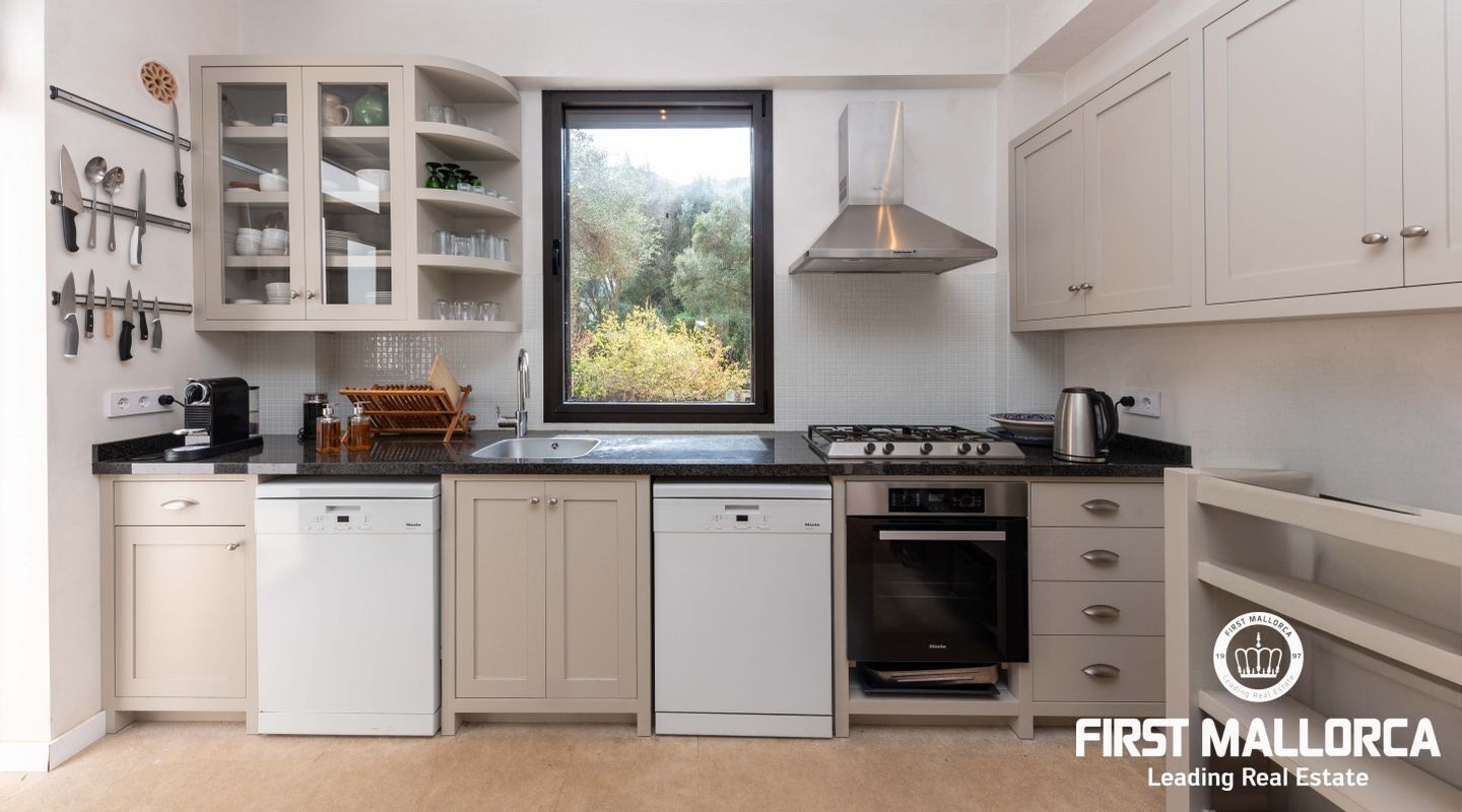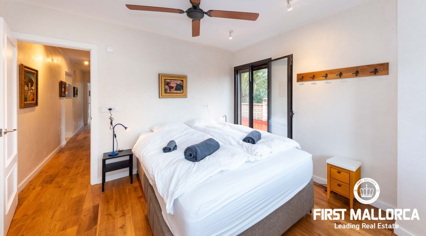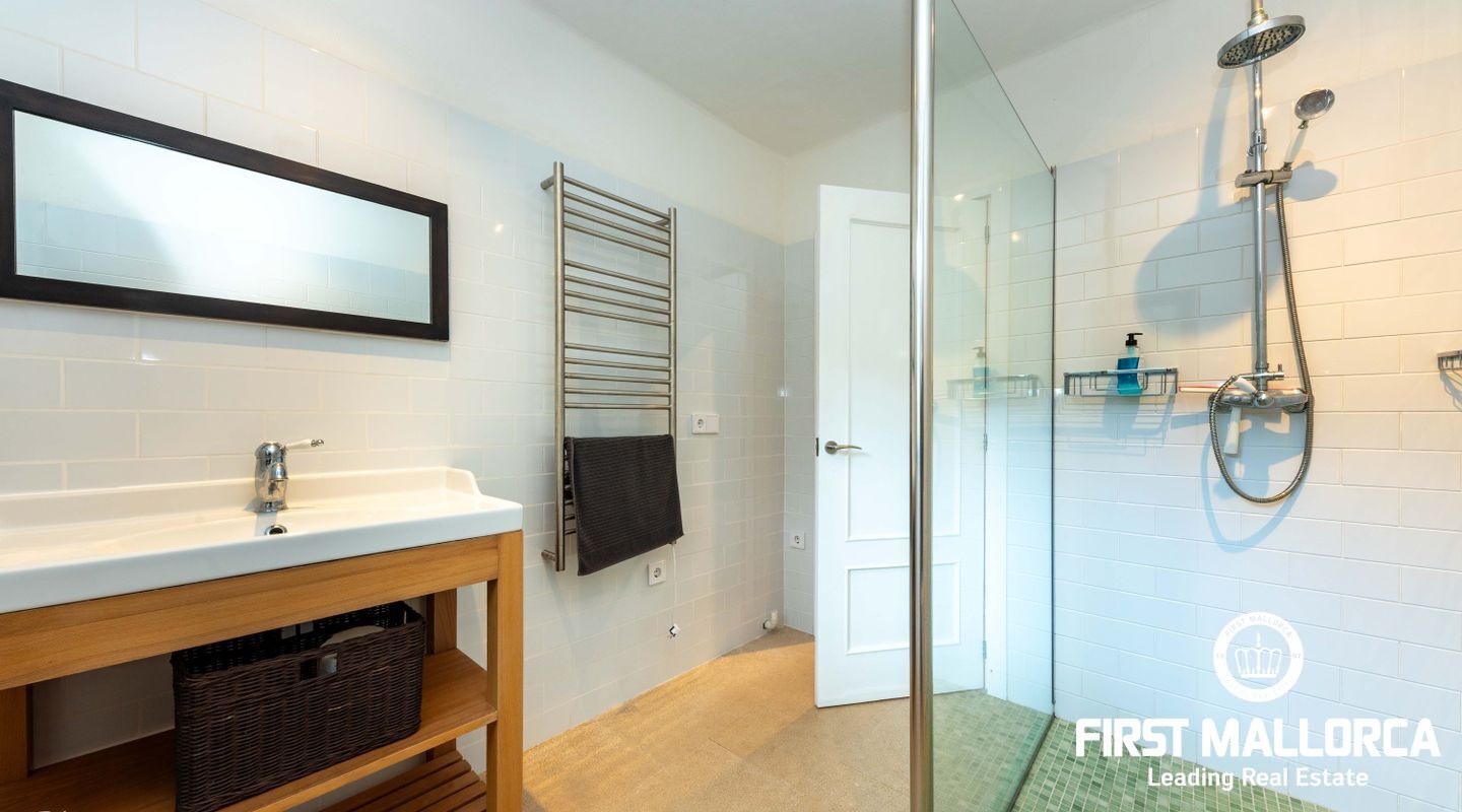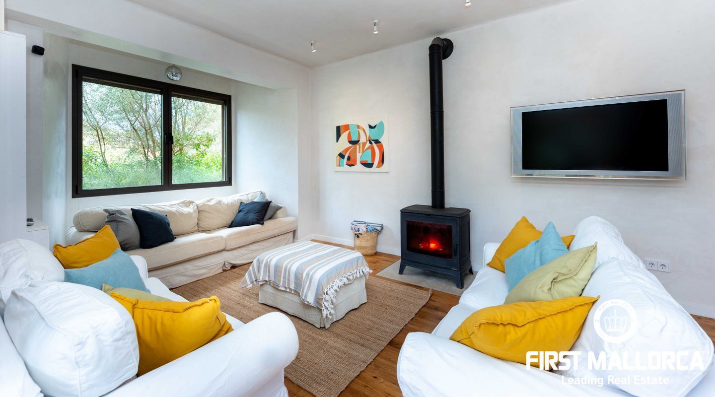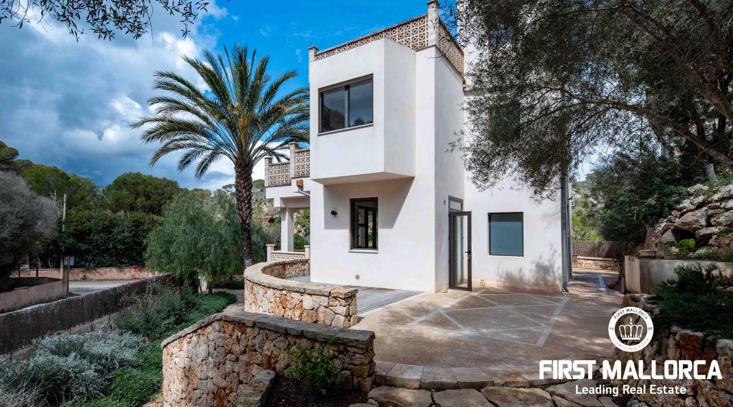 Denna villa ligger i den spektakulära bukten Cala Llombards och är en verklig fristad för fred och natur. Bara två minuters promenad från stranden erbjuder den en makalös boendeupplevelse, omgiven av vilda olivträd och inhemsk vegetation. Dess privilegierade läge på en sluttning skyddar inte bara mot vinden utan ger också absolut avskildhet.