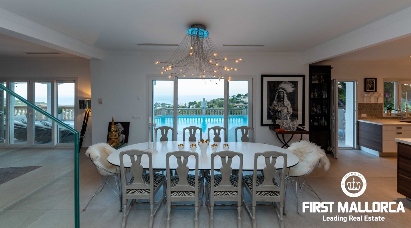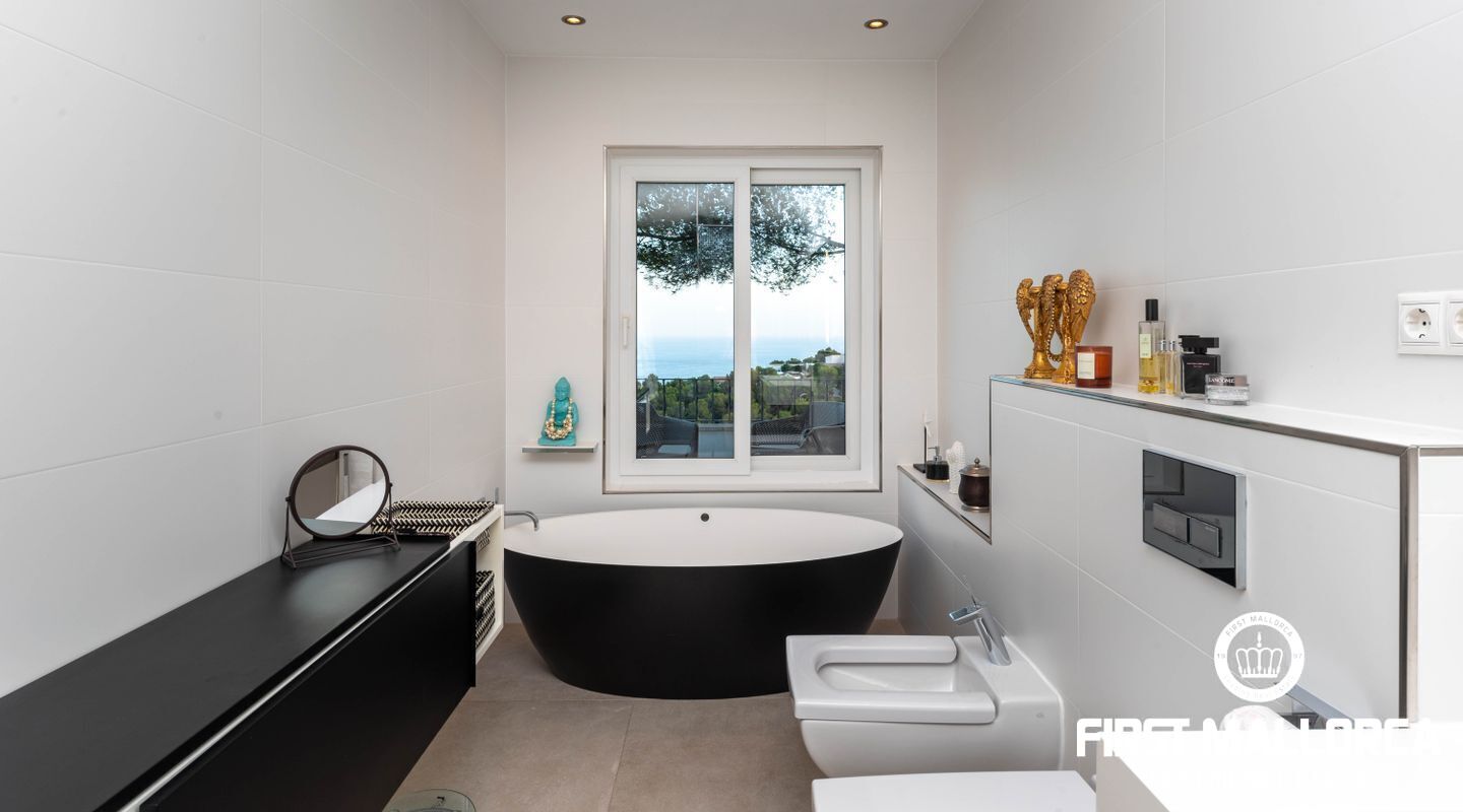 Denna charmiga medelhavsvilla ligger högt på kullen i Costa d´en Blanes med fantastisk utsikt över kusten och ut mot havet. Fastigheten som njuter av 3 sovrumssviter har en rymlig och ljus känsla i alla utrymmen med utmärkta terrasser. Fördelningen av fastigheten är som följer: på entréplanet - en rymlig foajé som också kan användas som kontor eller TV-rum, master bedroom med eget badrum och ytterligare 2 sovrumssviter. Trappor leder ner till vardagsrummet där det finns ett stort vardagsrum med matplats, rymligt kök, separat tvättstuga och en gästtoalett. Vardagsrummet öppnar direkt ut till den fantastiska levande poolterrassen. Huset har totalrenoverats och presenteras idag i ett utmärkt skick. Egenskaper för denna fastighet inkluderar varm och kall luftkonditionering, golvvärme i badrummen, pool och garageparkering.
