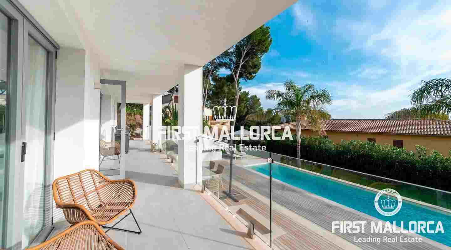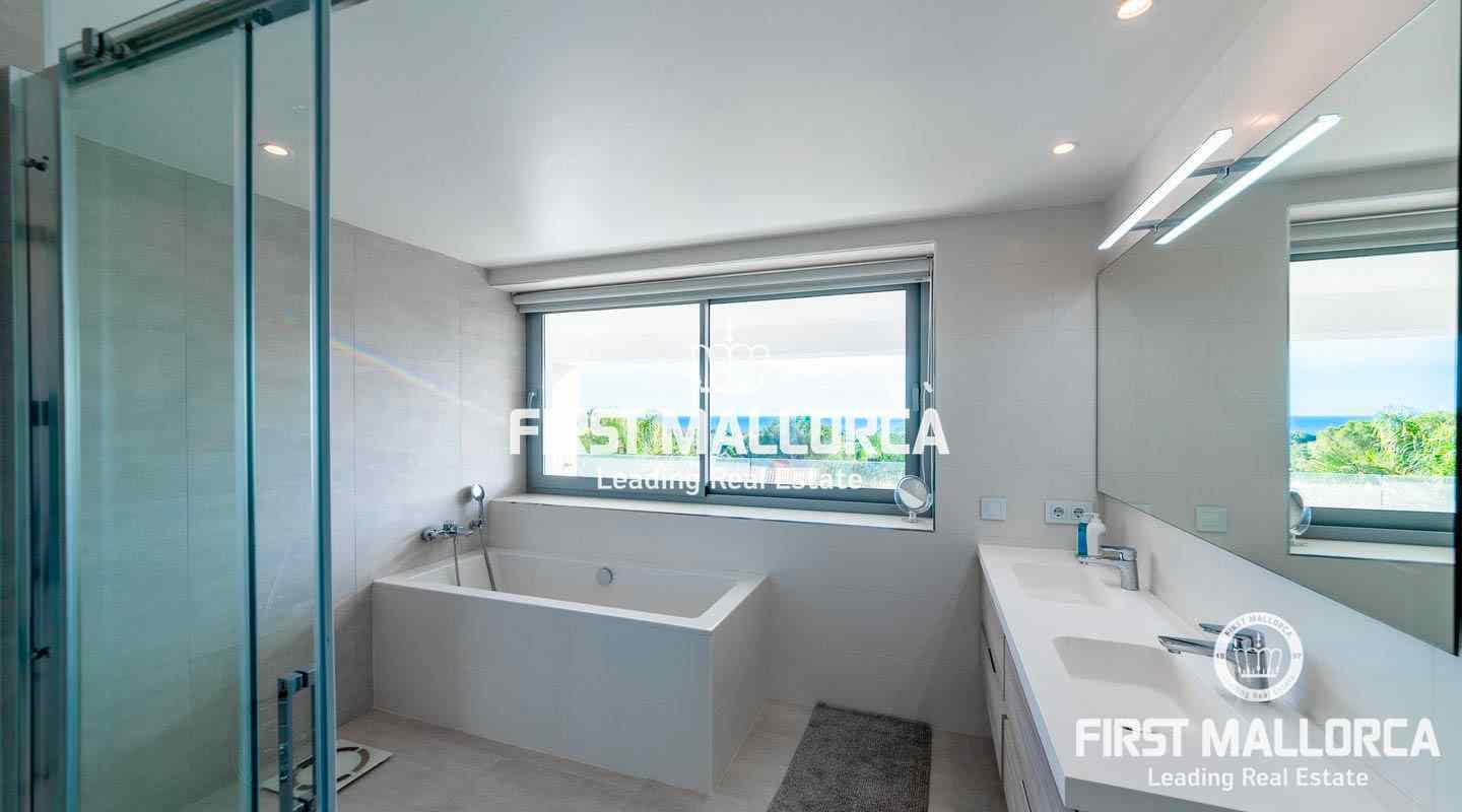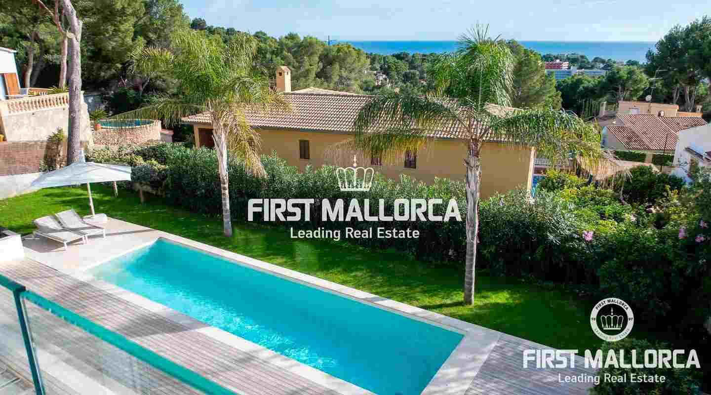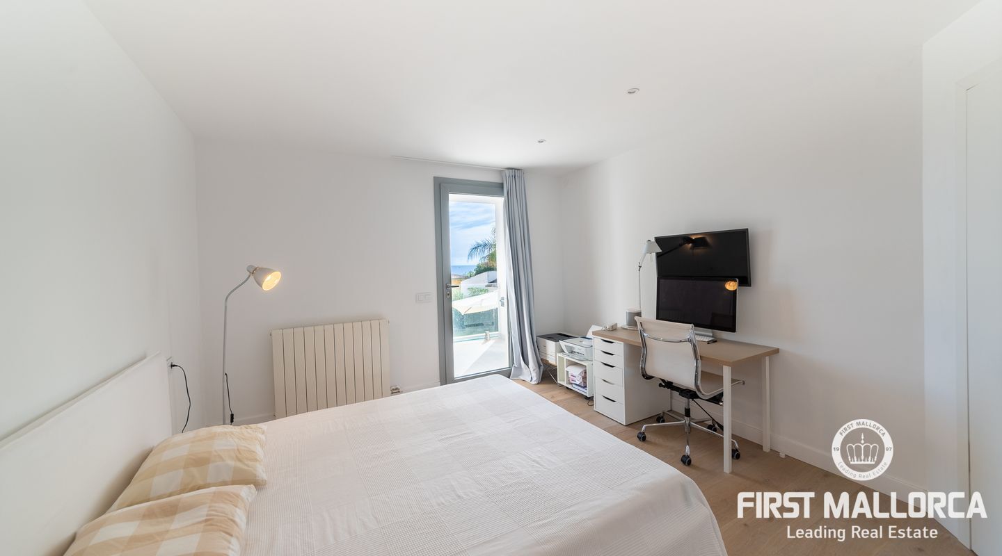 Denna eleganta villa med havsutsikt i Costa d'en Blanes har nyligen moderniserats helt och hållet enligt nya byggnormer och imponerar nu med sin moderna och fräscha design. Fastigheten som vetter mot söder har ett stort, platt utomhusområde med pool och gräsmattor, vilket gör den särskilt lämplig för familjer, men också för alla som älskar utomhuslivet och vill njuta av den mallorcanska solen. På bottenvåningen i den ljusa villan finns det öppna vardagsrummet och matplatsen med ett öppet kök samt ett sovrum och ett badrum. De övriga 3 sovrummen och badrummen ligger på övervåningen och är kopplade till en täckt terrass från vilken du har en underbar utsikt över Medelhavet. Fastigheten har en högkvalitativ interiör och är utrustad med luftkonditionering, centralvärme, vattenfilter, utrustat kök med Neff-apparater och ett garage. Dessutom finns det tillräckligt med förvaringsutrymme i källaren, en vinkällare och ytterligare ett stort rum som skulle kunna användas som till exempel ett gym.