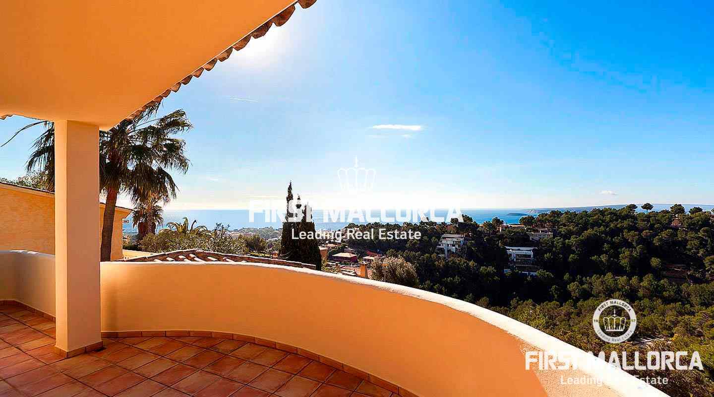 Denna sydvästvända villa erbjuder spektakulära panoramautsikter över kusten och det öppna havet. Belägen högst upp i bostadsområdet Costa d'en Blanes, i ett säkert samhälle med 17 exklusiva villor, är den unikt tyst och privat, med havsutsikt från varje fönster. Internationella skolor, stranden, marinan, restauranger, caféer och all service finns bara några minuter bort.