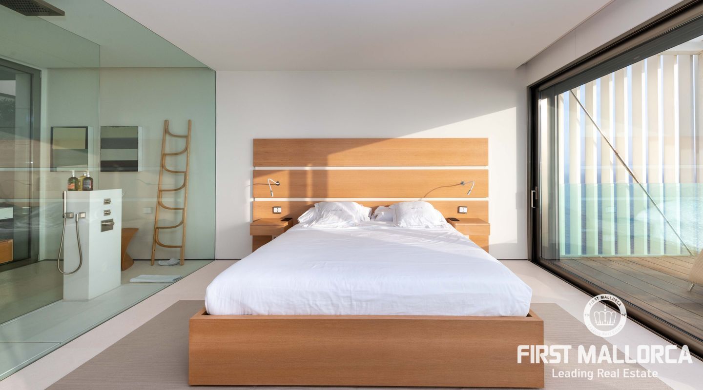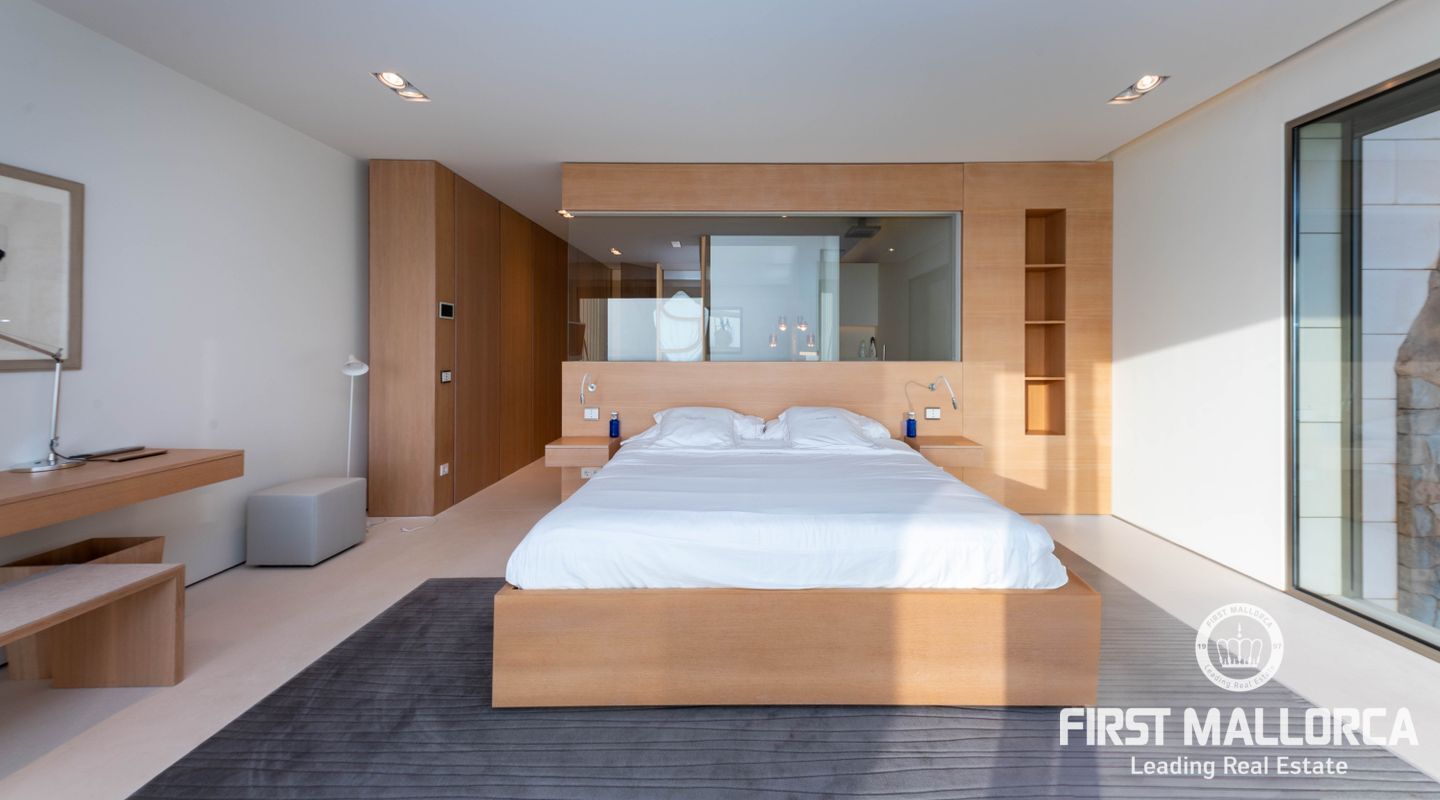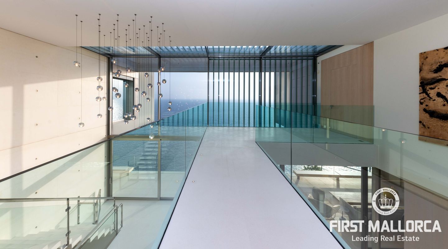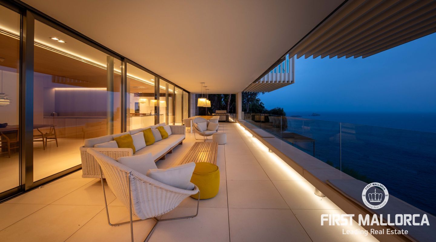 Det som verkligen särskiljer denna fastighet är dess privata tillgång till havet – en sällsynt förmån på Mallorca. Den samtida och tidlösa designen kombinerar vit betong, varm kalksten och elegant ekträ. De generösa fönstren från golv till tak skapar en sömlös övergång mellan inomhus- och utomhusmiljö.