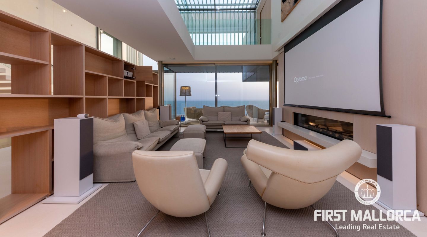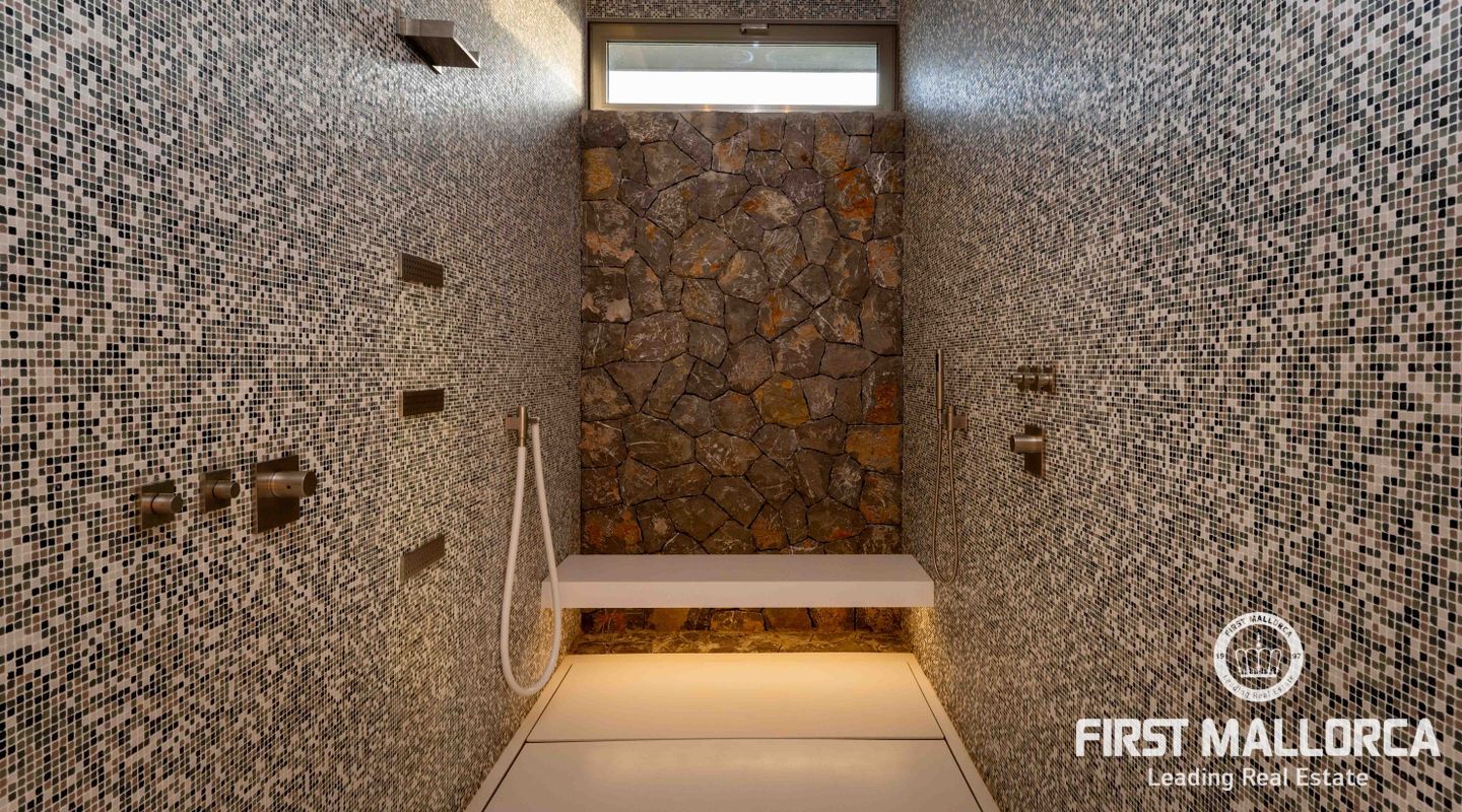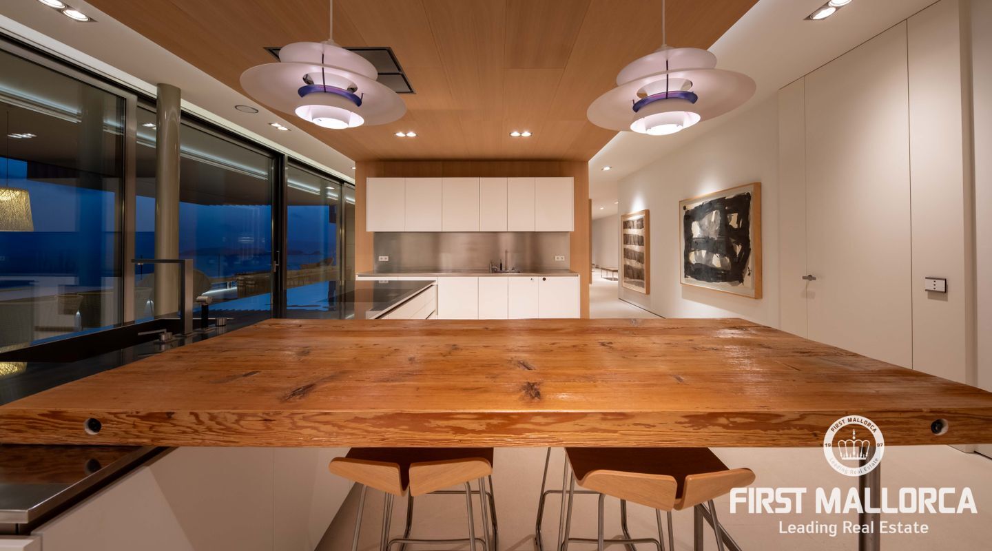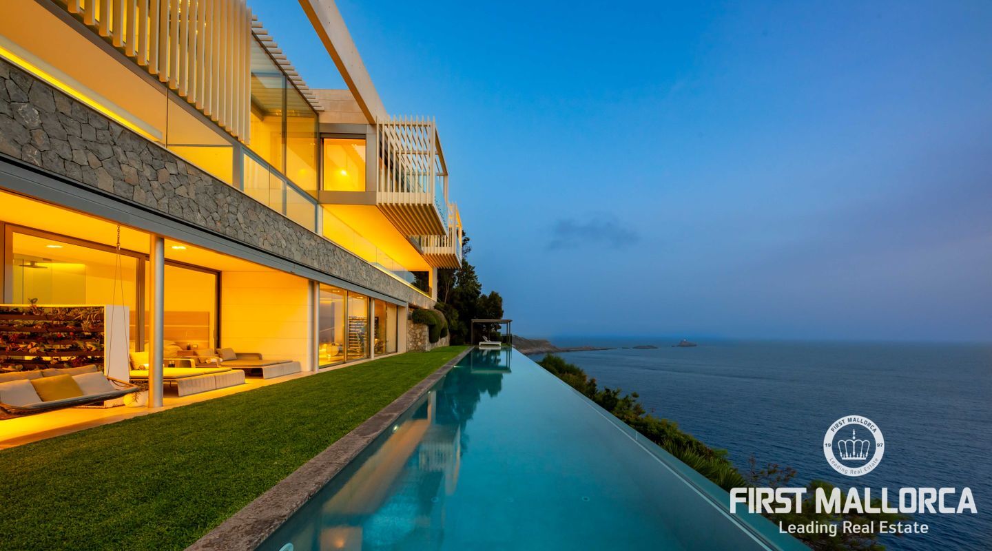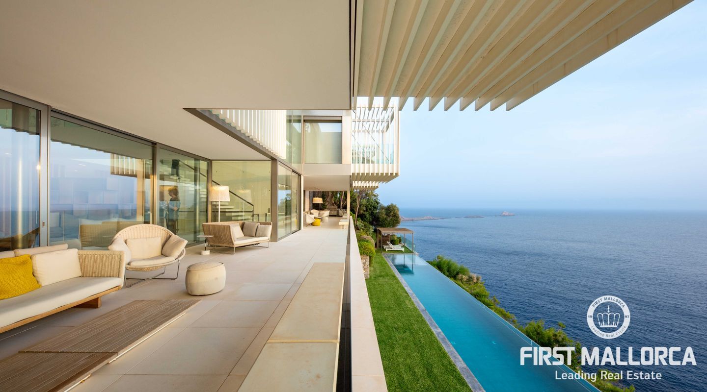 Det som verkligen särskiljer denna fastighet är dess privata tillgång till havet – en sällsynt förmån på Mallorca. Den samtida och tidlösa designen kombinerar vit betong, varm kalksten och elegant ekträ. De generösa fönstren från golv till tak skapar en sömlös övergång mellan inomhus- och utomhusmiljö.