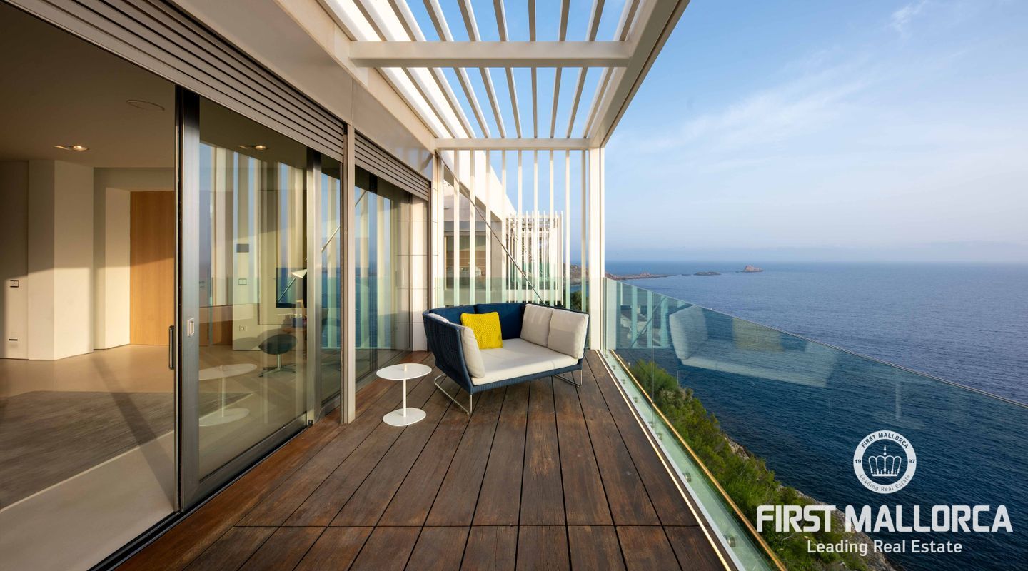 Upptäck en arkitektonisk juvel vid havet, belägen i ett av de mest eftertraktade områdena i sydvästra Mallorca, endast ett stenkast från den välkända marinan Port Adriano.