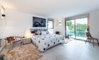 Denna moderna villa med havsutsikt i Nova Santa Ponsa har nyligen moderniserats helt och hållet, både invändigt och utvändigt. De nuvarande ägarna har gett fastigheten en ljus och inbjudande karaktär med sin öppna planlösning och överflöd av ljus. På en byggd yta på 360 m2 inklusive en täckt terrass erbjuder villan ett kontor, 5 sovrum, 3 av dem hittar du på första våningen, alla med eget badrum, omklädningsrum och terrass. Därifrån har du tillgång till takterrassen med ca 80 m2 och vacker 360 graders utsikt hela vägen till bukten Santa Ponsa. På den huvudsakliga levnadsnivån på bottenvåningen finns ett vardagsrum/matsal med ett lyxigt utrustat kök, ytterligare två sovrum med badrum, en gästtoalett och ett tvättstuga. Utanför ligger plana gräsmattor och terrasser runt den 12 x 5,5 m stora saltvattenpoolen, varifrån du kan njuta av den vackra utsikten över Tramuntanabergen. Villan är utrustad med keramiska golv och badrum av hög kvalitet från kända tillverkare. Endast några av de olika utrustningsdetaljerna är: Golvvärme, varm/kall luftkonditionering, solstöd, utrustat kök med Siemens-apparater, garage, aluminiumfönster, elektriska solgardiner och persienner, myggnät, larmsystem, videoövervakning och mycket mer. Om du letar efter en perfekt familjevilla i ett lugnt läge i Nova Santa Ponsa, tveka inte att kontakta det professionella teamet på First Mallorca för att ordna en visning.