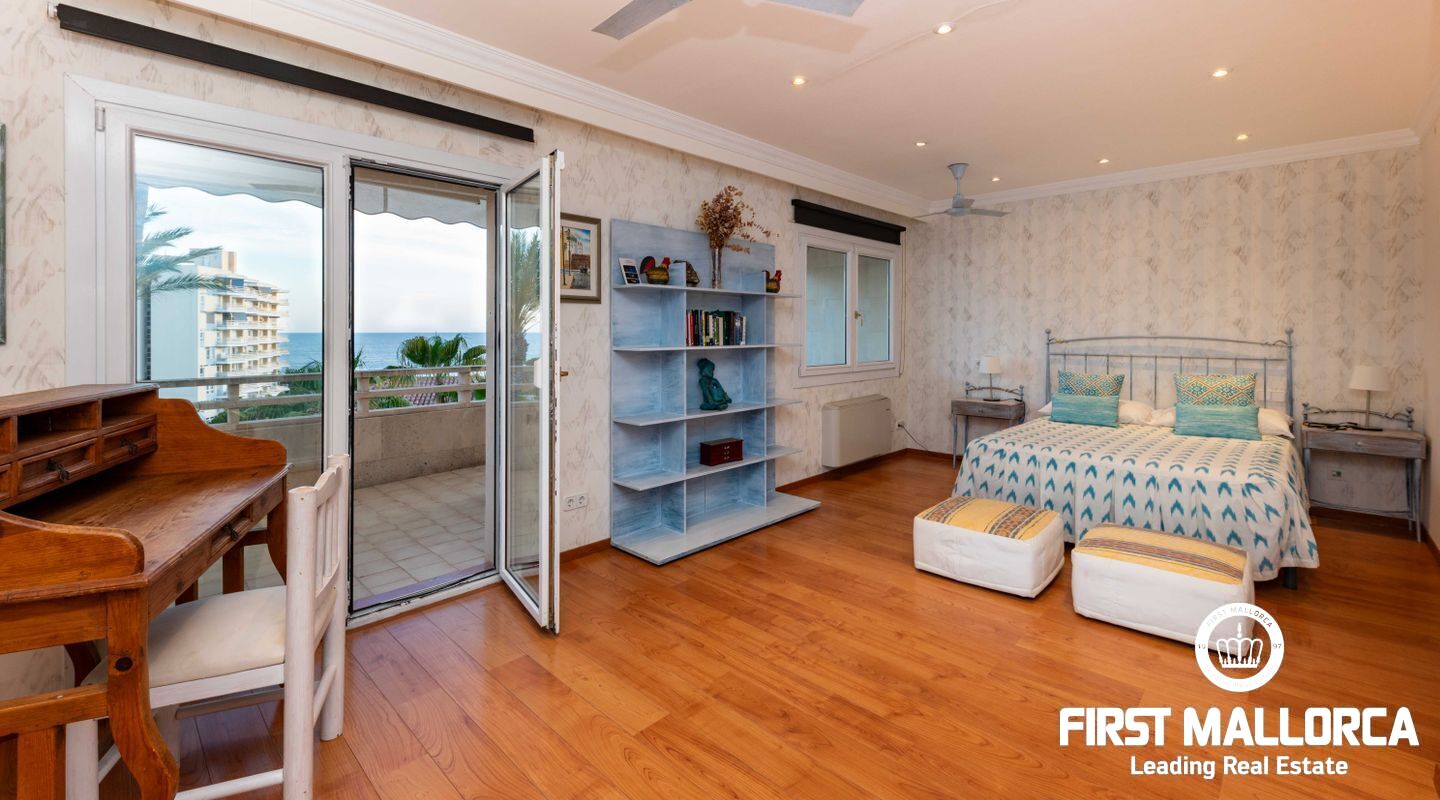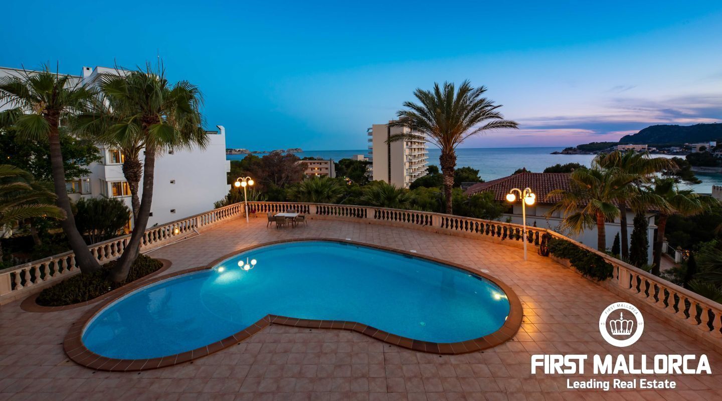 Rymlig villa med stor omgivande trädgård, pool och utsikt över havet och bergen i Paguera. Söderläge. Fastigheten har den gamla turistlicensen för 12 personer. Fastigheten på 2 våningar (och 2 gästhus) består av stort vardagsrum med öppen spis, 6 dubbelrum och 7 badrum (4 ensuite). Det finns 3 utrustade kök: 2 inne och 1 ute på den täckta poolterrassen med grill. Fastighetens höjdpunkt (förutom den spektakulära utsikten) är dess stora och mycket privata utomhusområde med pool, trädgård med naturliga träd och fruktträd (granatäpplen, apelsiner, citroner, kinesiska apelsiner, kinesiska citroner, avokado, aloe vera och mandariner), trädgårdsmöbler, täckt och otäckt terrass, balkonger och utomhusdusch. A/C, uppvärmning, takfläktar. Villan har solpaneler. Privat garage. Vinkällare. Fastigheten ligger 5 minuters promenad till stranden och nära alla bekvämligheter, men i ett mycket lugnt och privat läge.