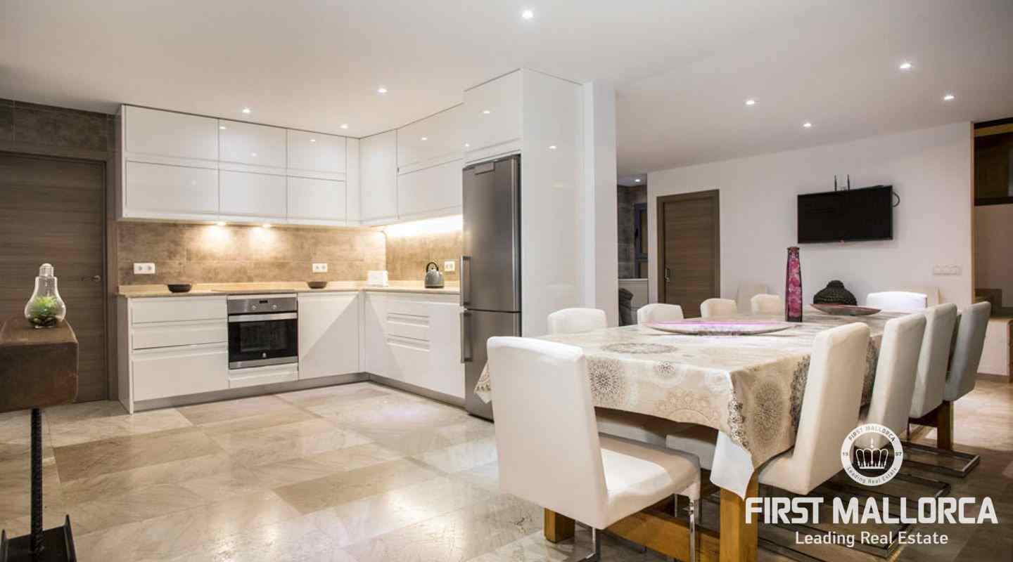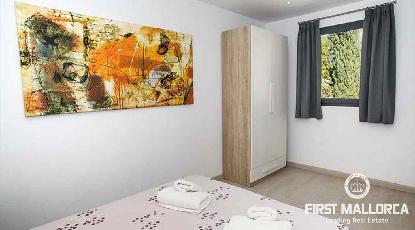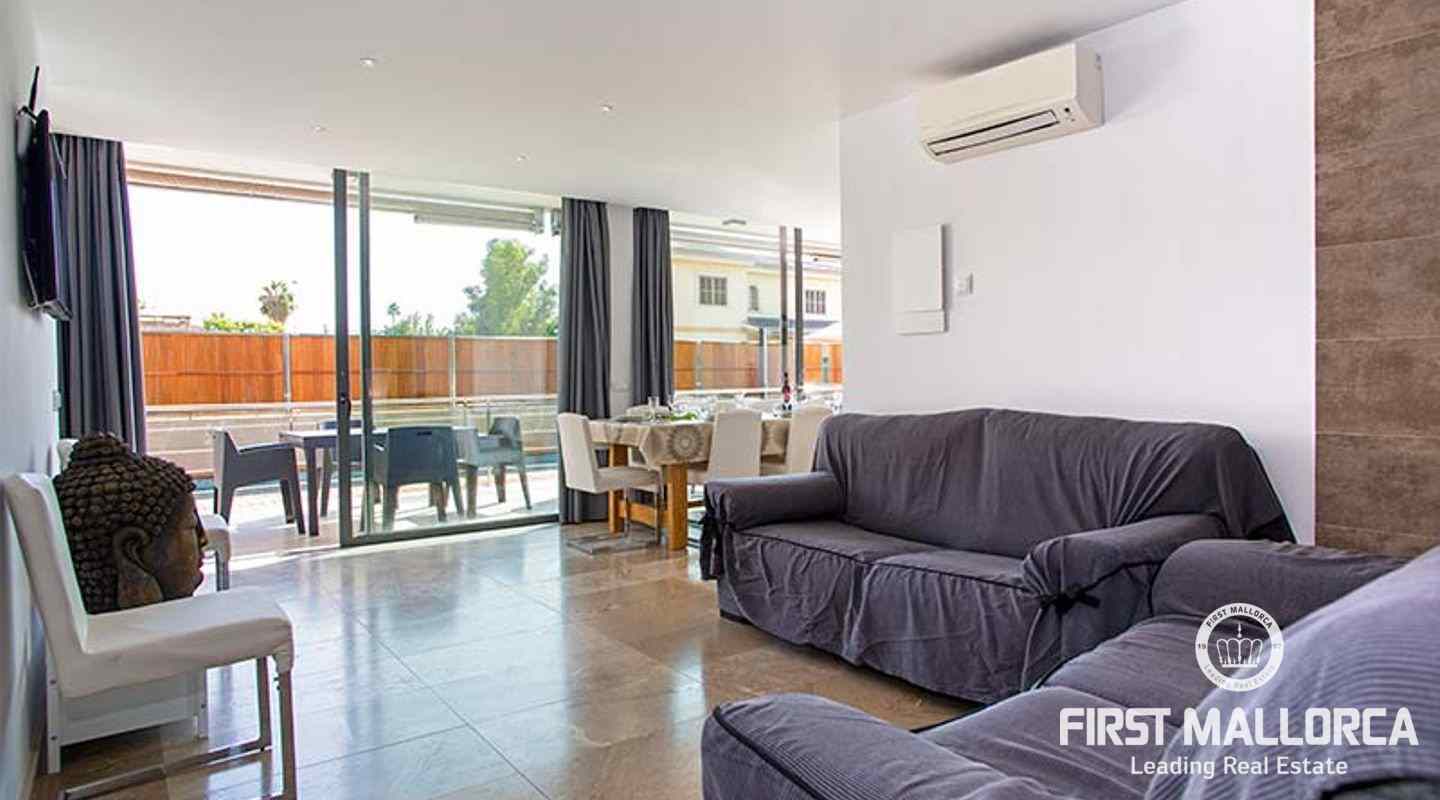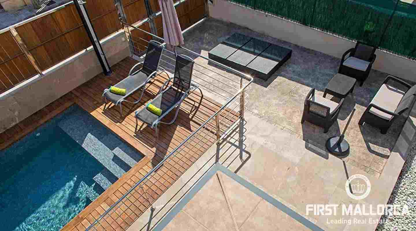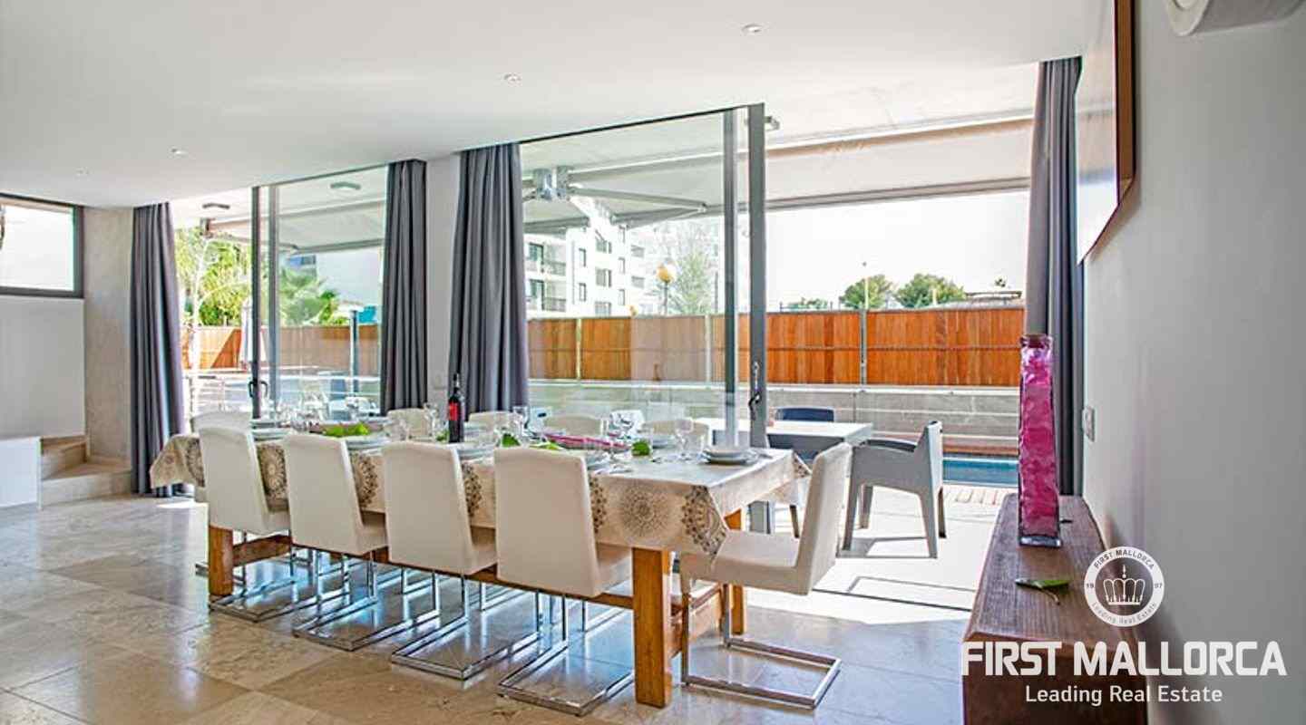 Denna minimalistiska villa i modern stil ligger bara några meter från den populära sandstranden Playa de Muro på norra Mallorca. Totalt sex sovrum, fyra badrum, ett ljust vardagsrum/matsal och ett fullt utrustat kök är en del av utrymmet som erbjuds. Alla rum är utrustade med luftkonditionering varm/kall. Från vardagsrummet kommer du in i den vackra trädgården. Denna har en pool med omgivande solterrass, en egen lekplats och ytterligare terrassutrymme för att njuta av medelhavslivsstilen med familj och vänner. Dessutom erbjuder fastigheten en privat parkeringsplats för upp till tre bilar. Stranden med sitt kristallklara vatten kan nås på några minuter till fots. Ett urval av kaféer och restauranger, shoppingmöjligheter och andra bekvämligheter för dagliga behov finns också inom gångavstånd. På grund av det utmärkta läget passar fastigheten utmärkt som semesterboende och kan även användas som investering tack vare den redan befintliga licensen för semesteruthyrning för 12 personer.