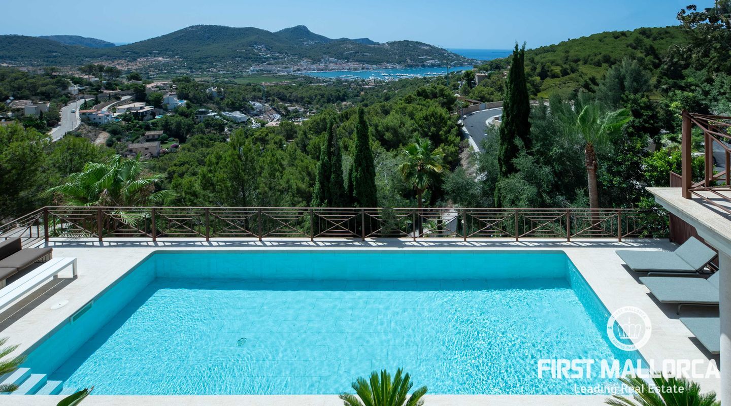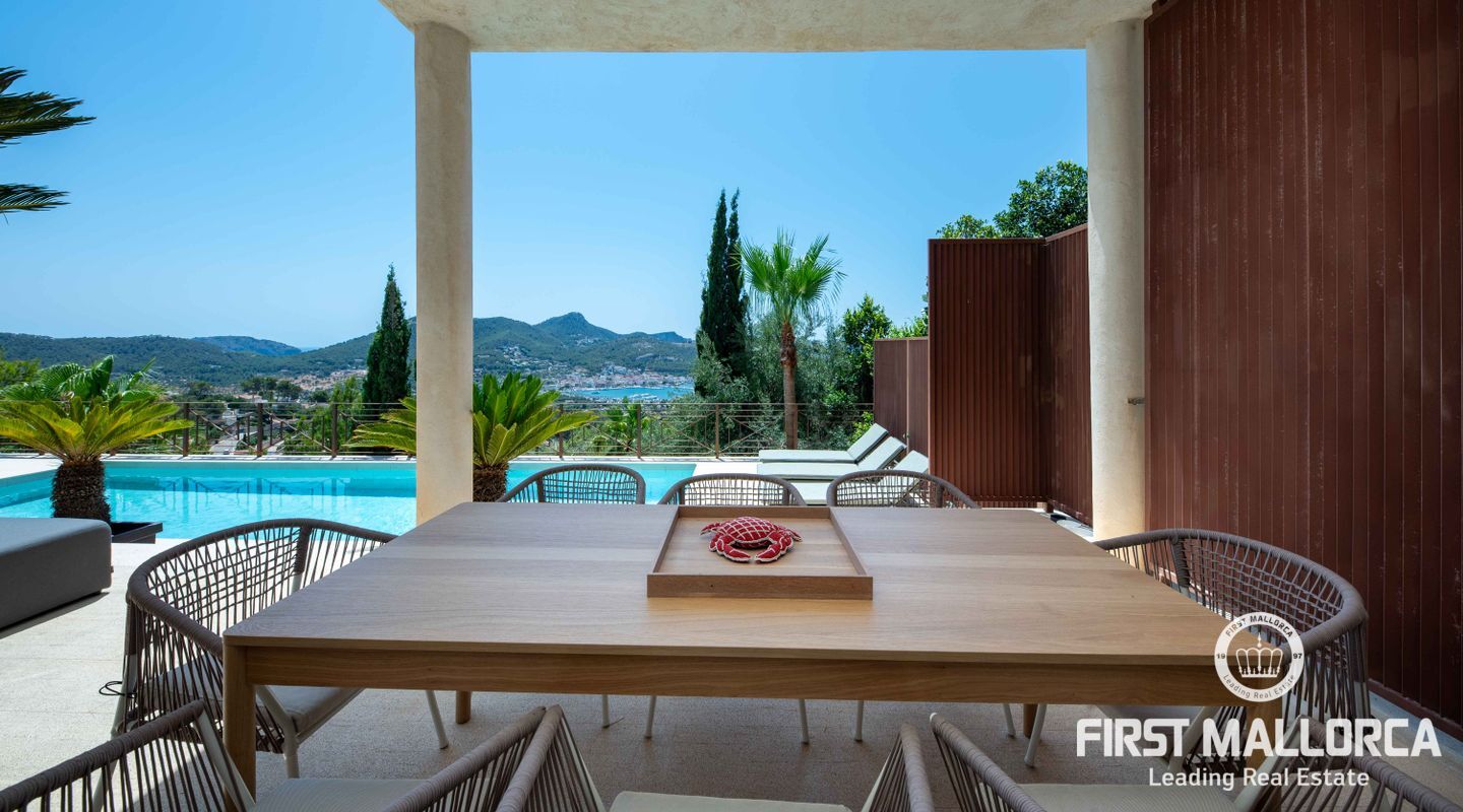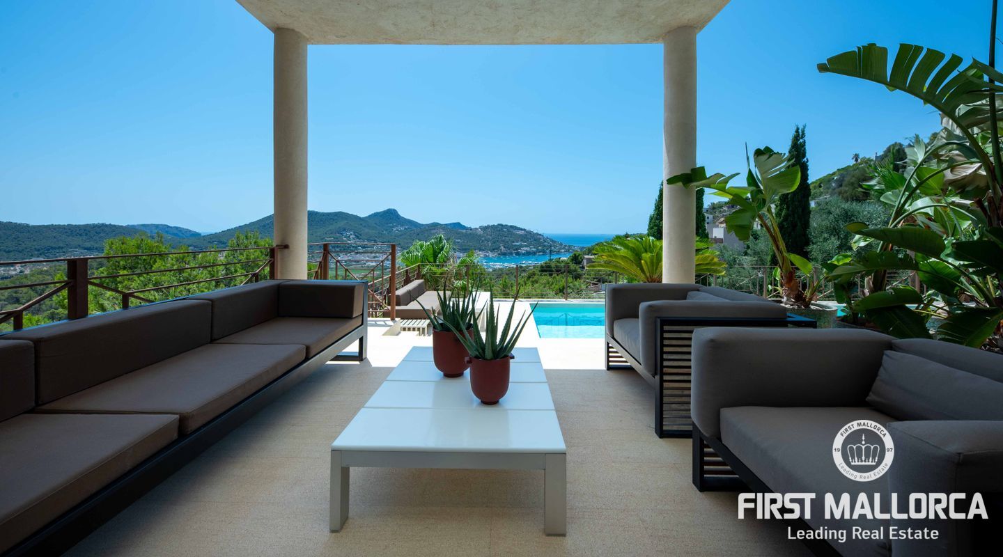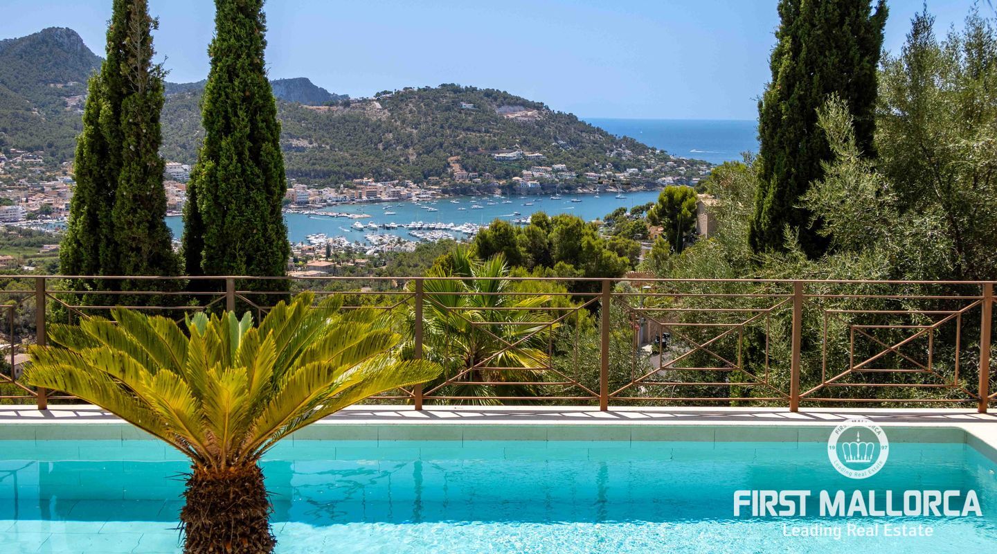 Rymligt, avkopplande hus med havsutsikt i Puerto de Andratx. Fönster från golv till tak ger sol och ljus i huset, med fantastisk utsikt över hamnen. På övervåningen hittar du 2 rymliga sovrum i master suite storlek och 2 ytterligare sovrum - alla med egna badrum. 2 av sovrummen har egna privata terrasser med havsutsikt. Det finns en oberoende och privat gäststudio med pentry och badrum. Snookerrum och en vinkällare. Ytterligare funktioner inkluderar öppen spis, golvvärme, AC varm/kall, garage, larm, satellit-TV.