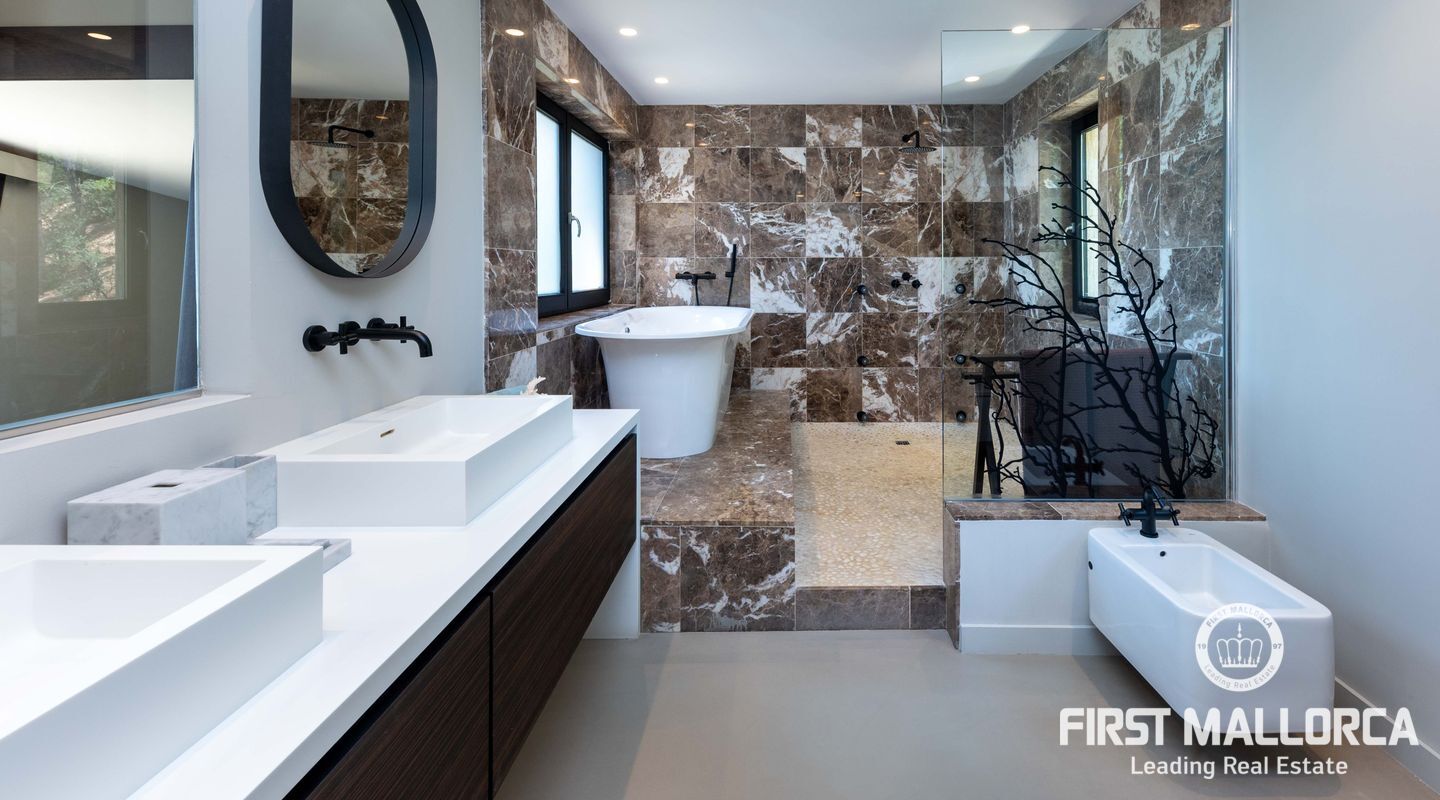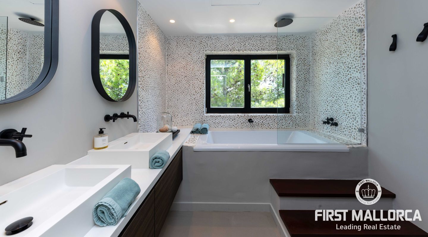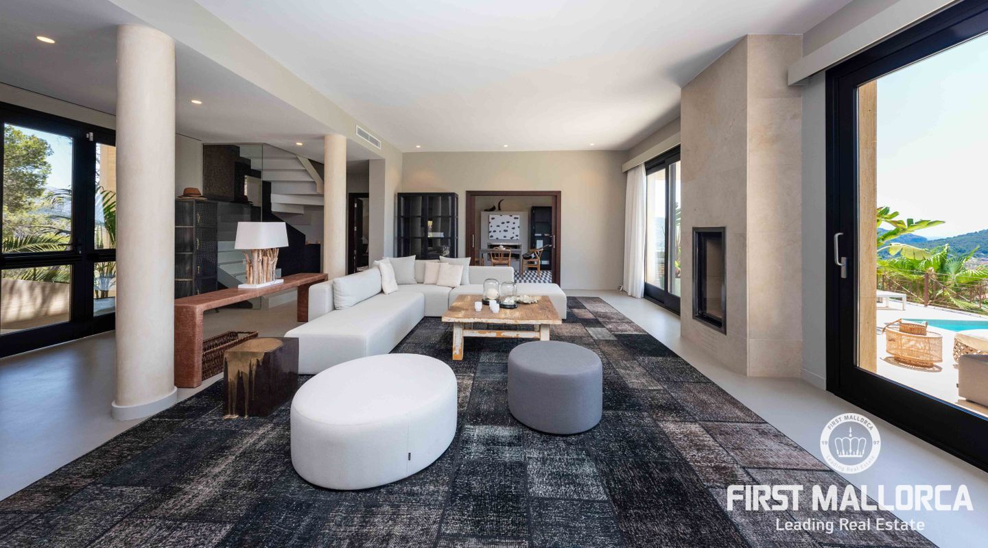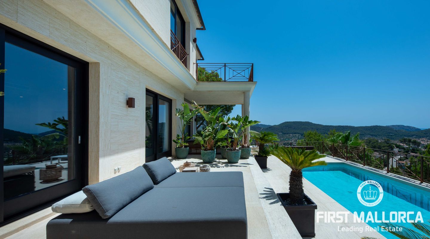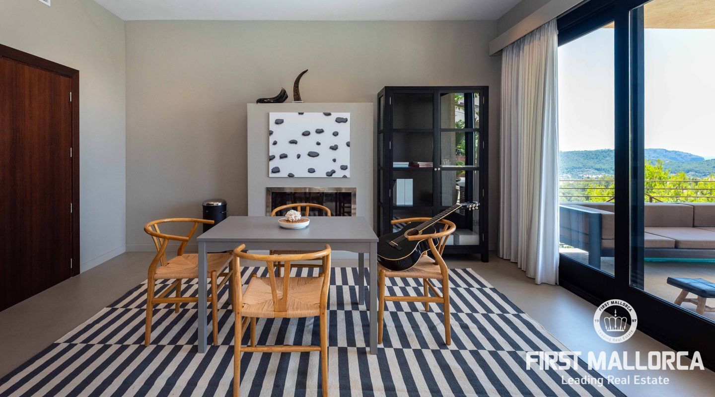 Rymligt, avkopplande hus med havsutsikt i Puerto de Andratx. Fönster från golv till tak ger sol och ljus i huset, med fantastisk utsikt över hamnen. På övervåningen hittar du 2 rymliga sovrum i master suite storlek och 2 ytterligare sovrum - alla med egna badrum. 2 av sovrummen har egna privata terrasser med havsutsikt. Det finns en oberoende och privat gäststudio med pentry och badrum. Snookerrum och en vinkällare. Ytterligare funktioner inkluderar öppen spis, golvvärme, AC varm/kall, garage, larm, satellit-TV.