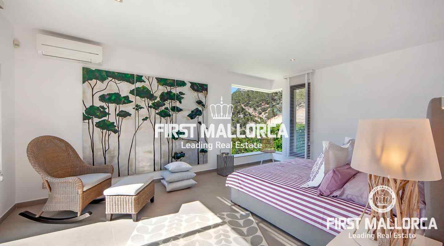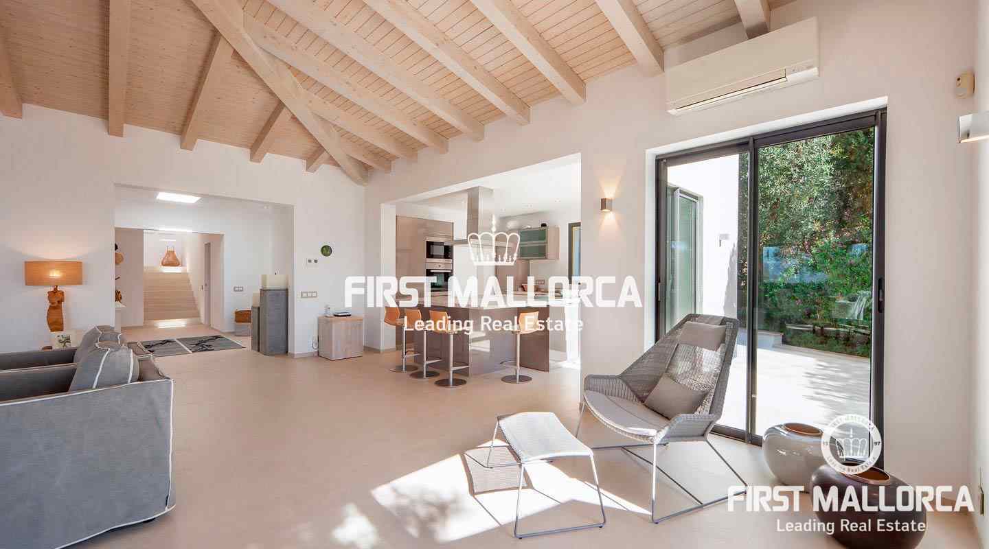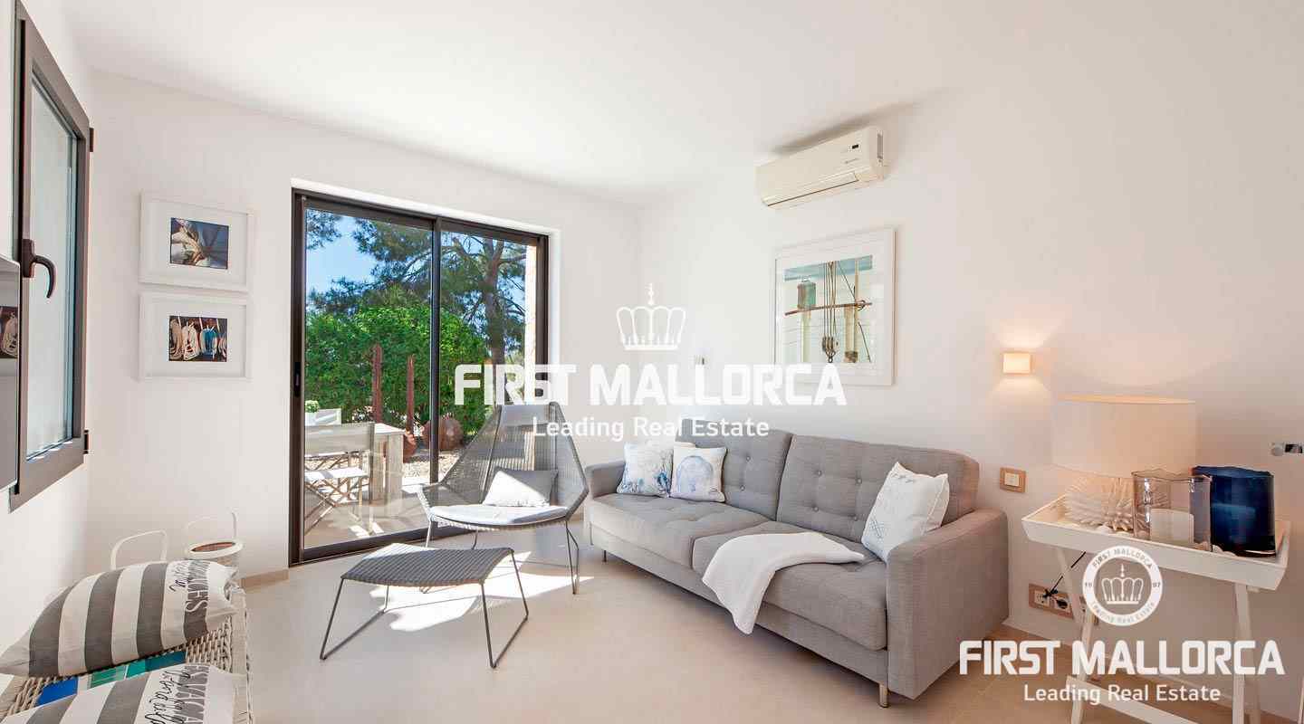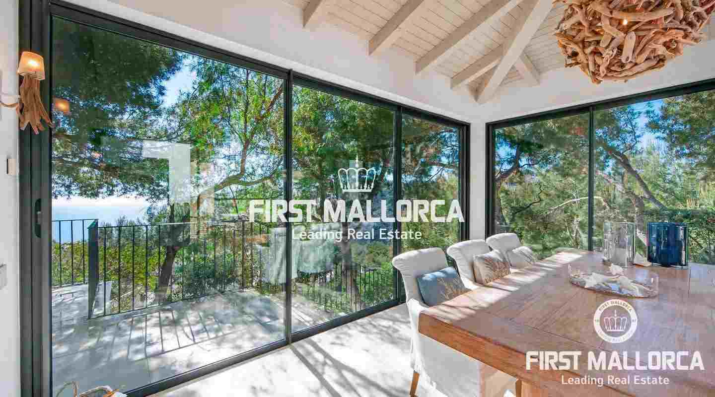 Du välkomnas av ljuset som kommer in i det öppna vardagsrummet, köket och matsalen med högt bjälklag i taket, med fönster från golv till tak. Omgiven av grönskande vegetation kommer du in i en oas av frid och du dras genast till terrassen, som erbjuder fascinerande utsikt över det kristallblå vattnet i Cala Llamp-bukten. En sällsynt fastighet som utstrålar lättsam stil med ett hjärta, men som ändå erbjuder de senaste moderna bekvämligheterna som golvvärme, luftkonditionering, dubbelgarage och en chill out täckt pergola vid den privata poolen.