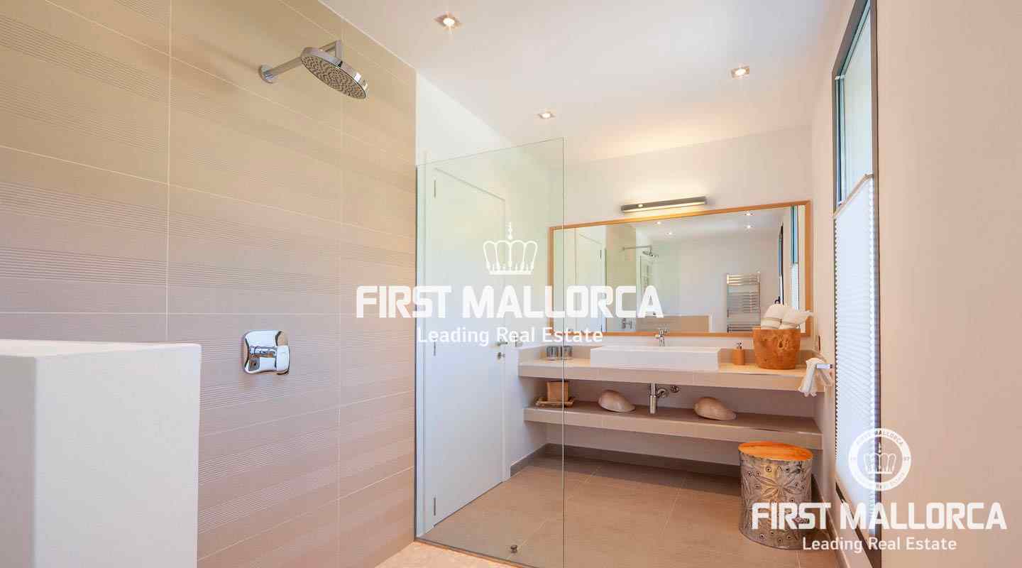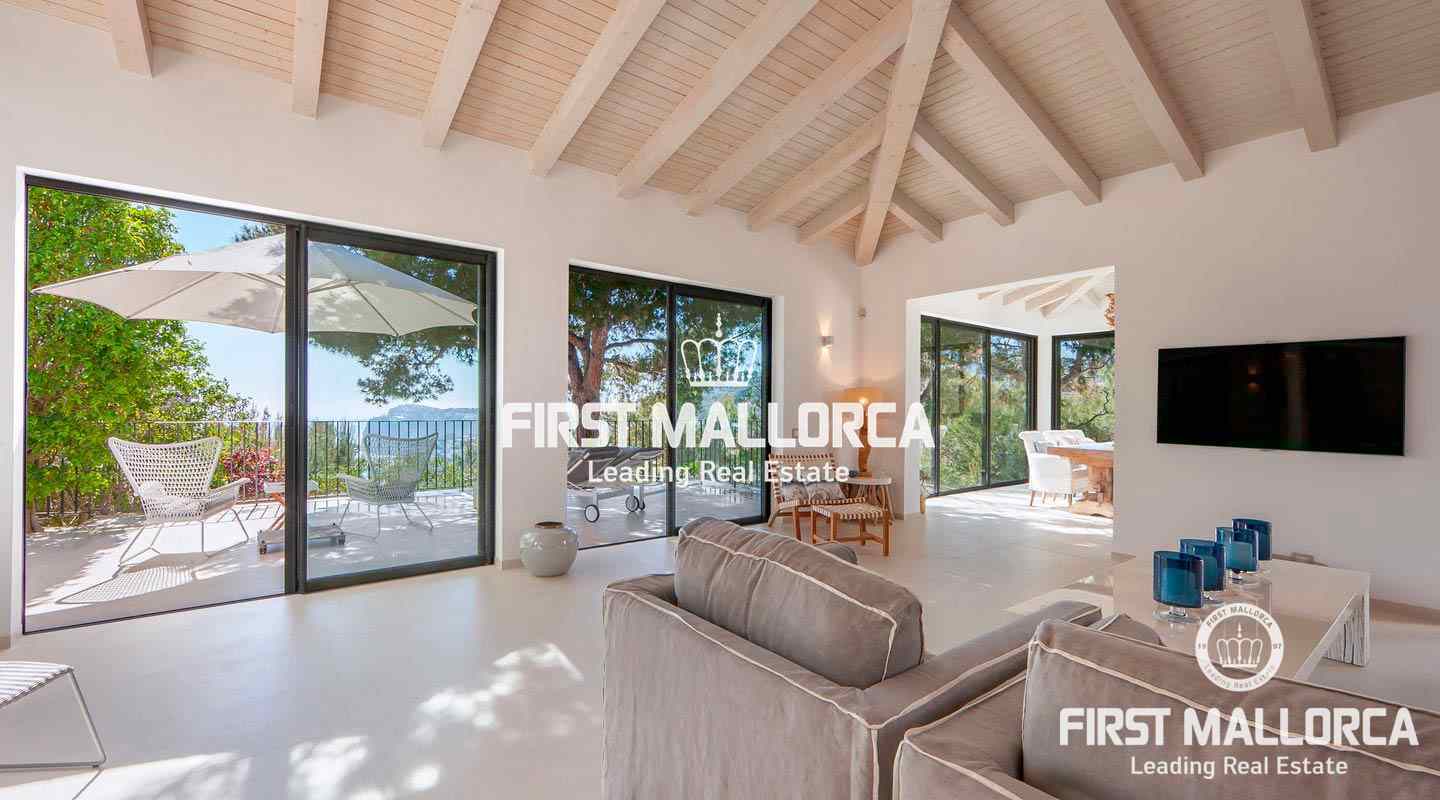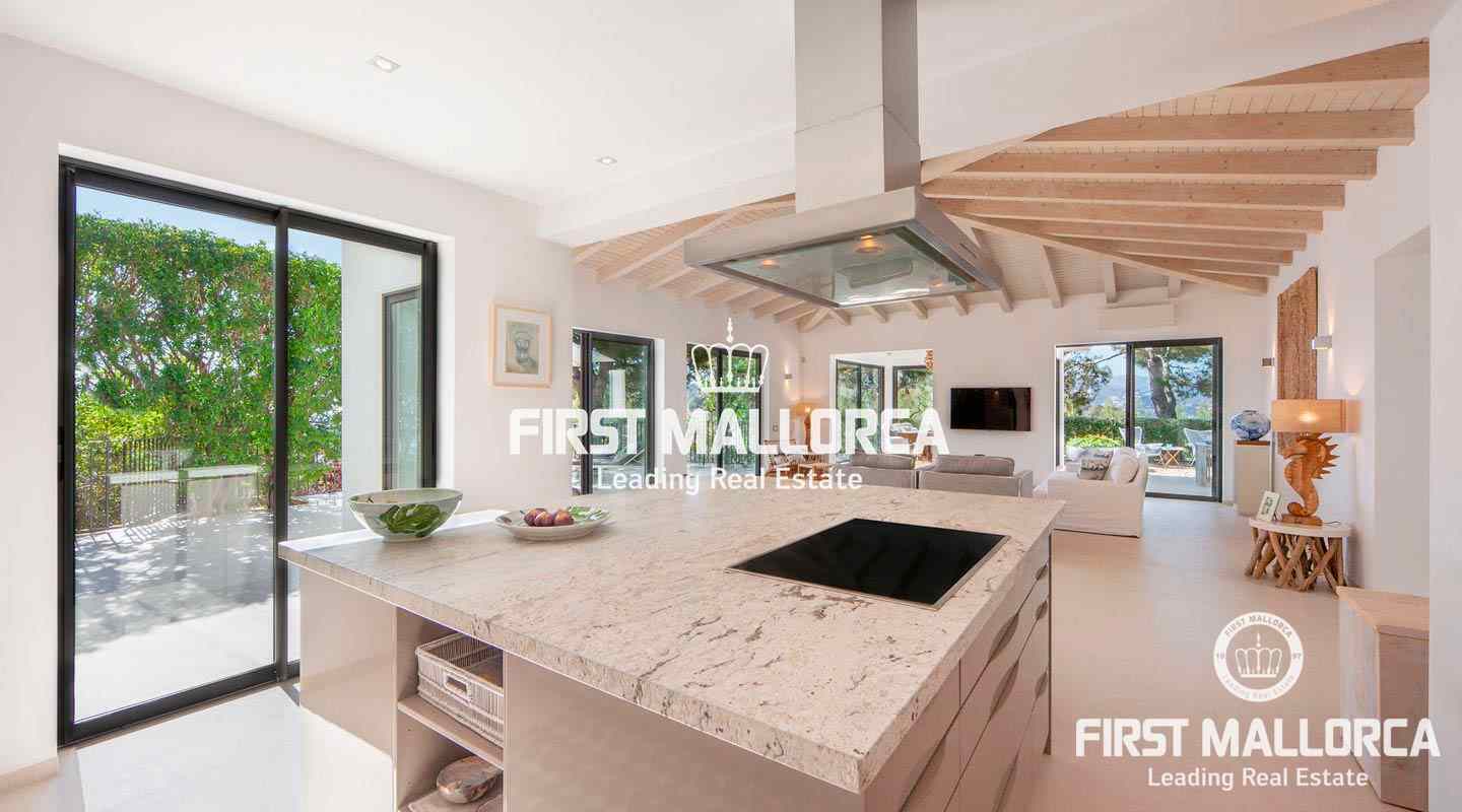 Du välkomnas av ljuset som kommer in i det öppna vardagsrummet, köket och matsalen med högt bjälklag i taket, med fönster från golv till tak. Omgiven av grönskande vegetation kommer du in i en oas av frid och du dras genast till terrassen, som erbjuder fascinerande utsikt över det kristallblå vattnet i Cala Llamp-bukten. En sällsynt fastighet som utstrålar lättsam stil med ett hjärta, men som ändå erbjuder de senaste moderna bekvämligheterna som golvvärme, luftkonditionering, dubbelgarage och en chill out täckt pergola vid den privata poolen.