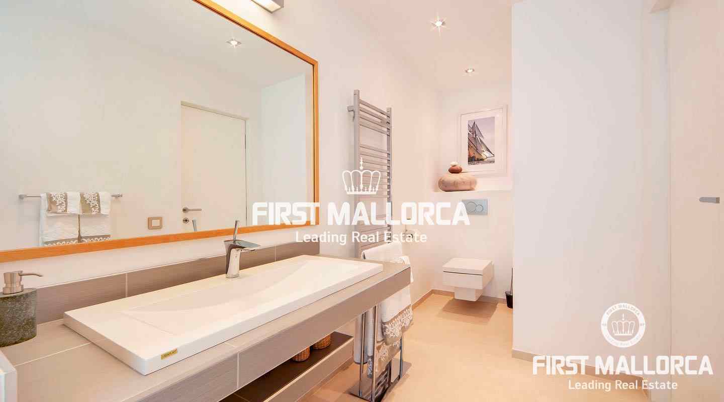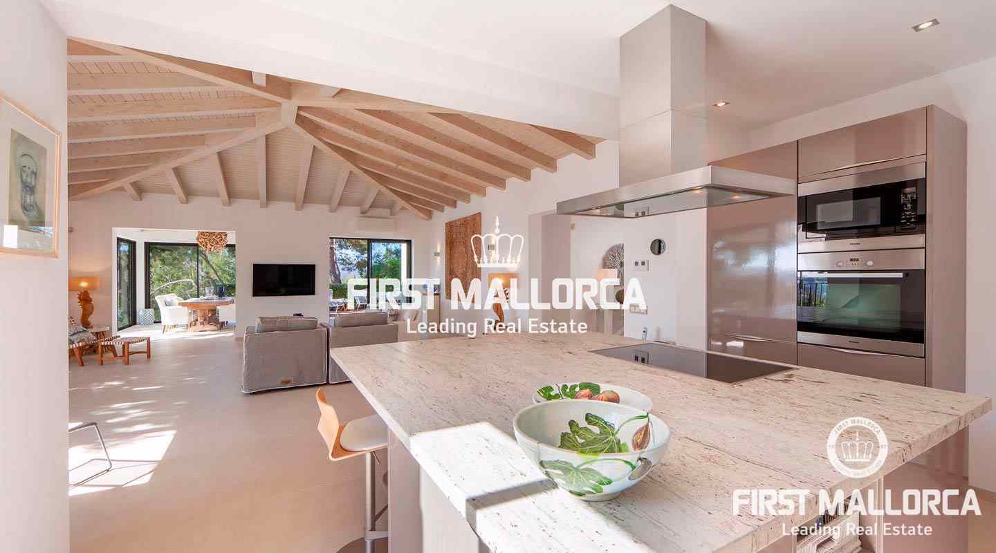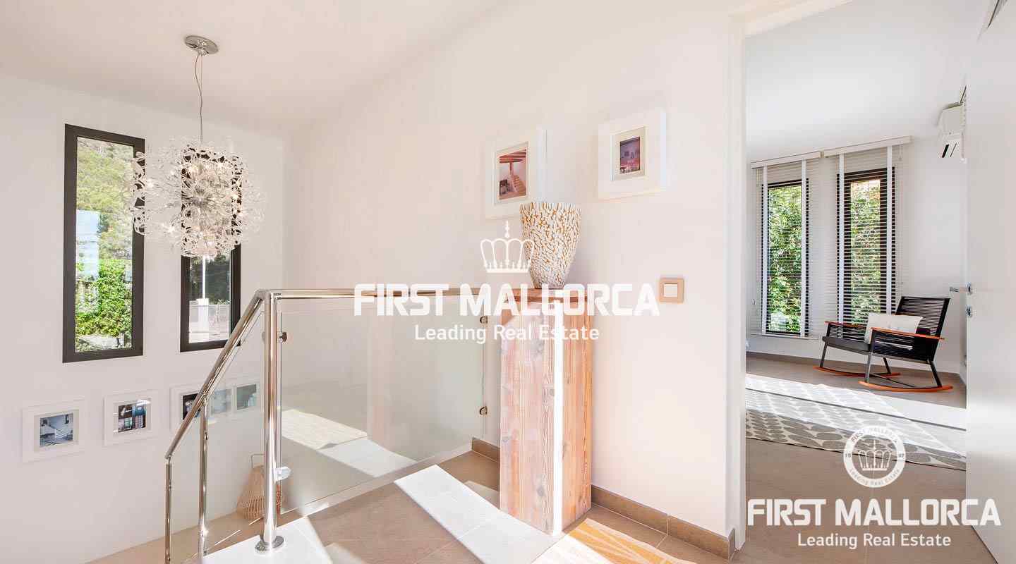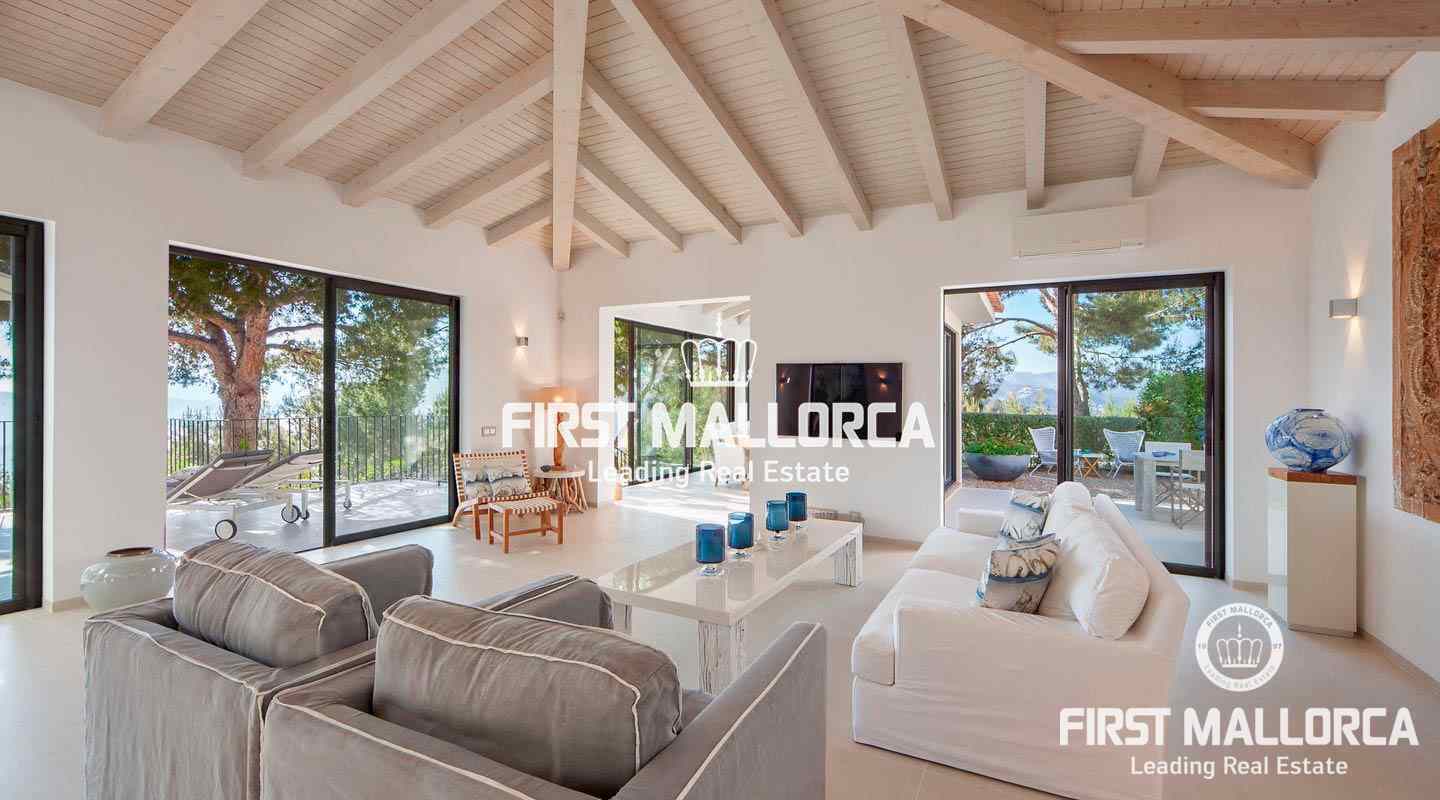 Du välkomnas av ljuset som kommer in i det öppna vardagsrummet, köket och matsalen med högt bjälklag i taket, med fönster från golv till tak. Omgiven av grönskande vegetation kommer du in i en oas av frid och du dras genast till terrassen, som erbjuder fascinerande utsikt över det kristallblå vattnet i Cala Llamp-bukten. En sällsynt fastighet som utstrålar lättsam stil med ett hjärta, men som ändå erbjuder de senaste moderna bekvämligheterna som golvvärme, luftkonditionering, dubbelgarage och en chill out täckt pergola vid den privata poolen.