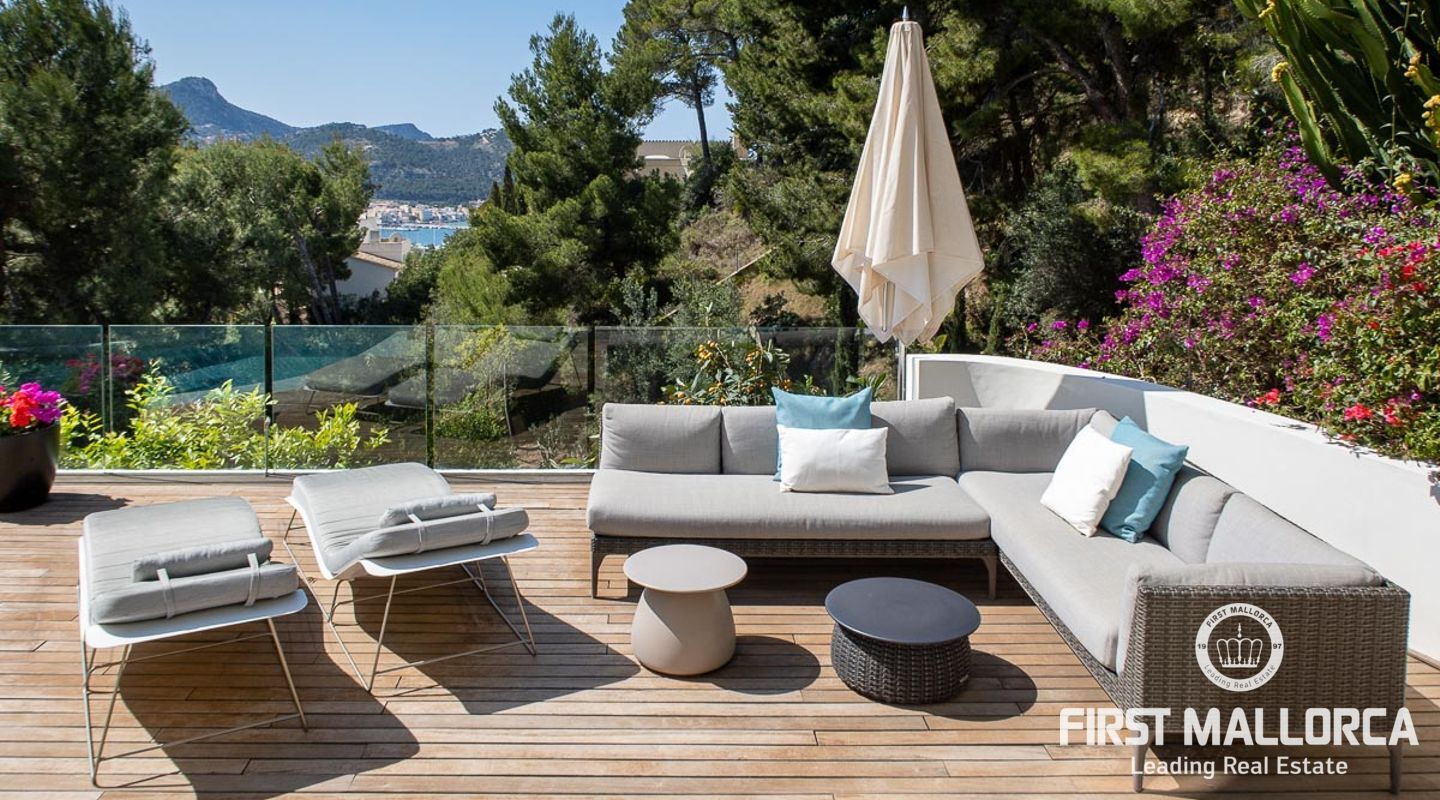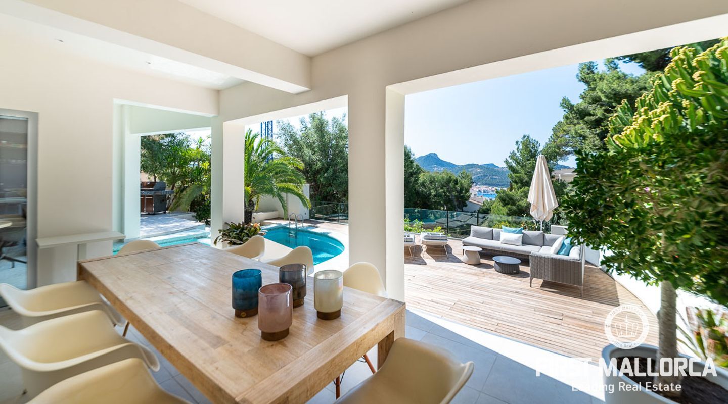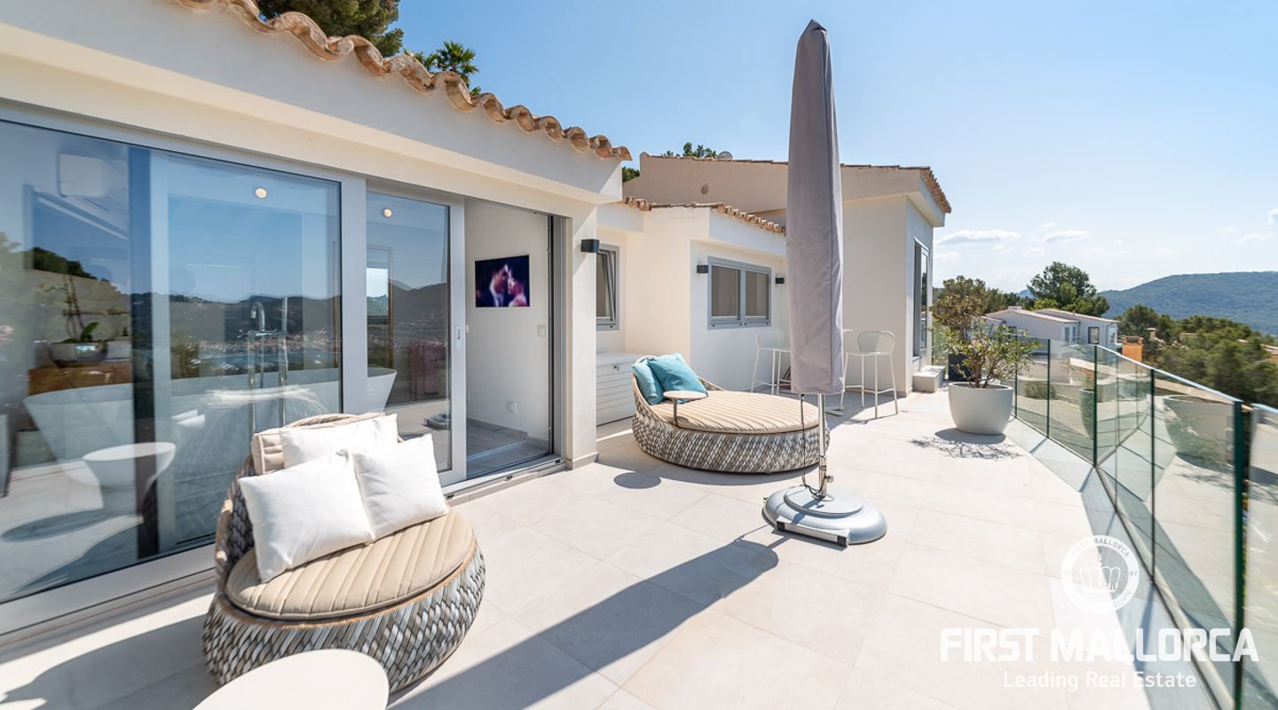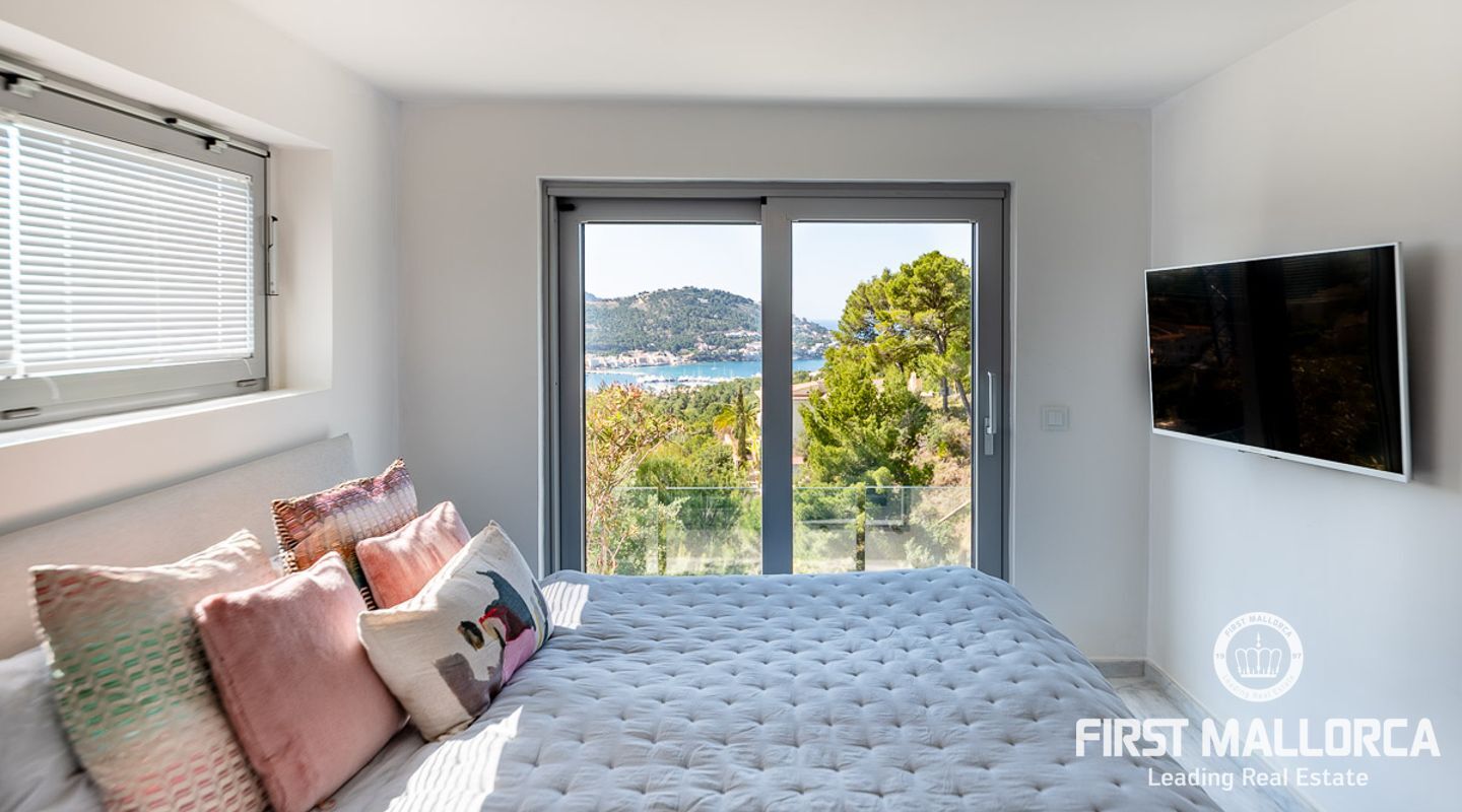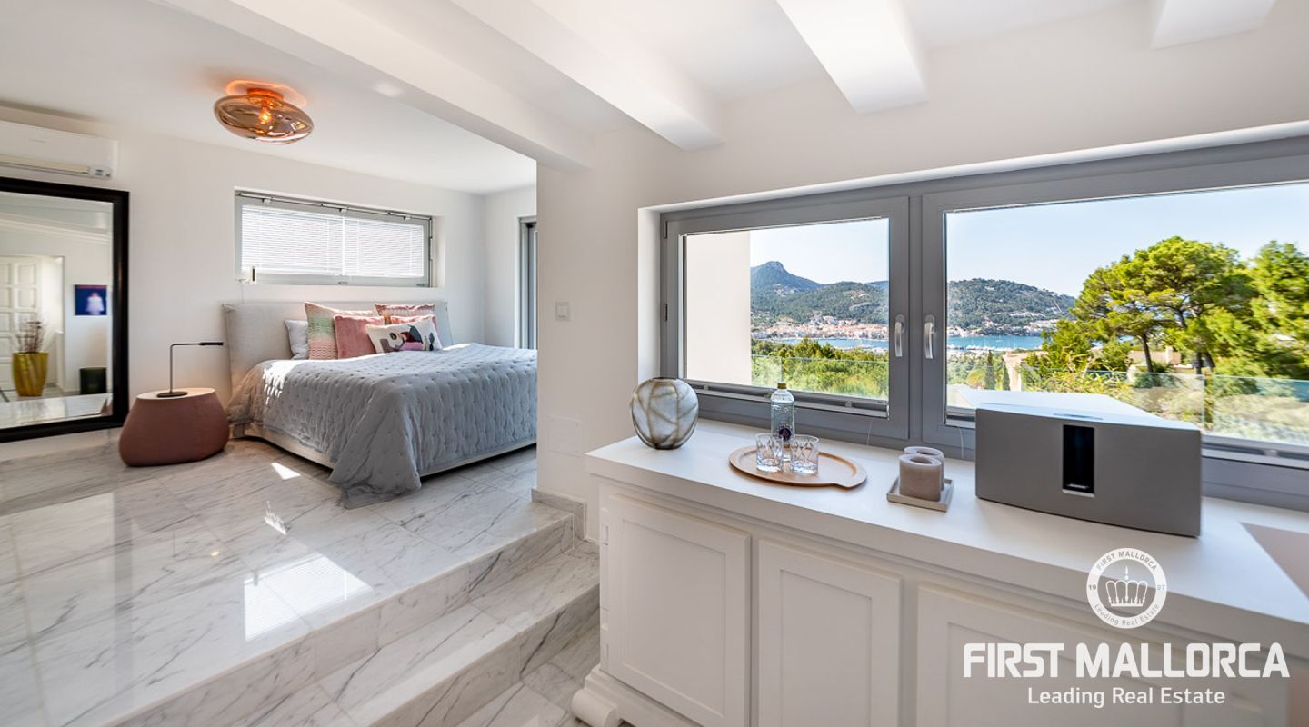 Underbar villa i ett mycket lugnt område med utsikt över Puerto de Andratx. Fastigheten har nyligen renoverats i modern design och kombinerar traditionell arkitektur med modern inredning. Villan ligger i Can Borras som är en trevlig urbanisering bara några minuters bilresa från centrum. Den har en tomt i söderläge på ca 768 m2 och en byggd yta på ca 212 m2 inklusive en täckt terrass på 30 m2 och flera öppna terrasser. Fördelningen är som följer: På bottenvåningen finns det rymliga vardagsrummet och matsalen med ett öppet kök samt gästtoalett och förråd. På första våningen finns 2 sovrum, varav ett med badkar i eget badrum och ett separat badrum. På översta våningen finns det stora sovrummet med spektakulär utsikt över hamnen, bad en-suite och walk-in closet. Ytterligare funktioner: Det finns en pool, golvvärme, luftkonditionering varm/kall i sovrummen, förråd, delvis möblerat.