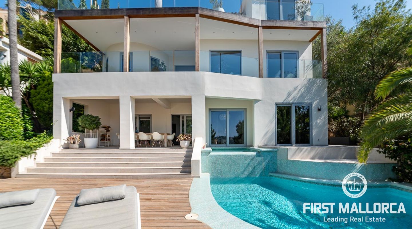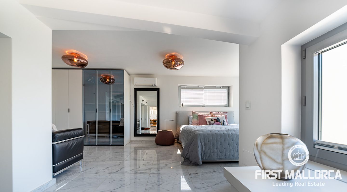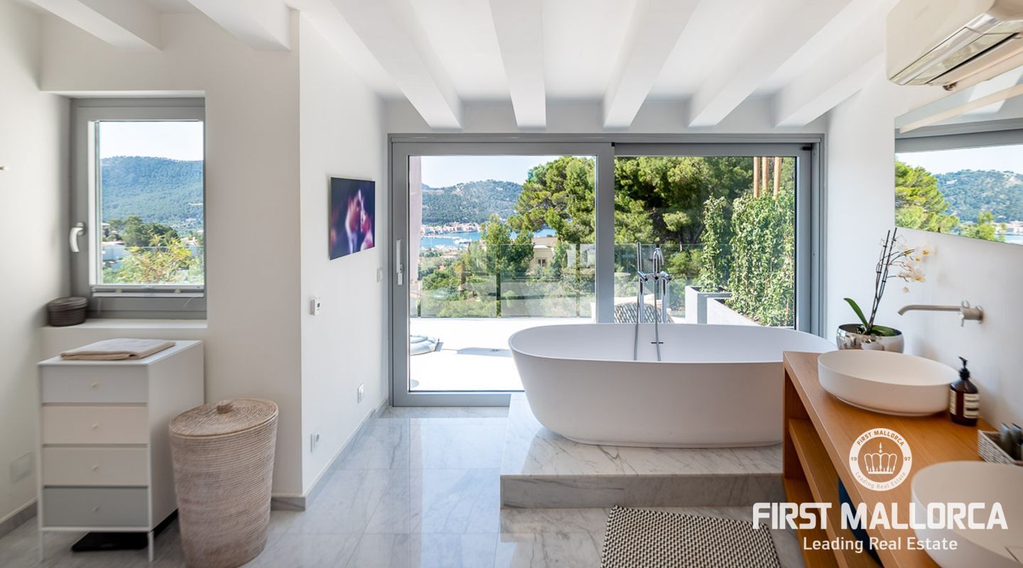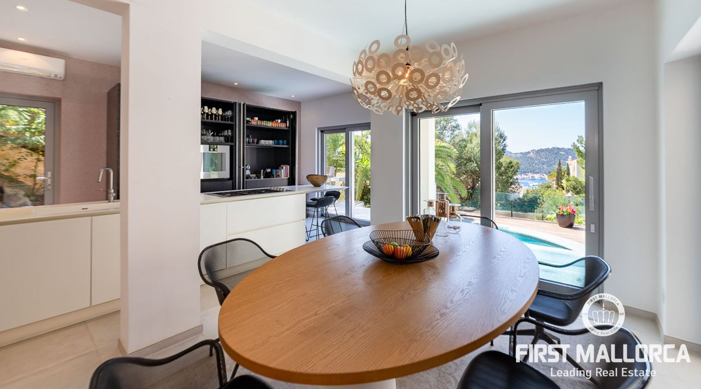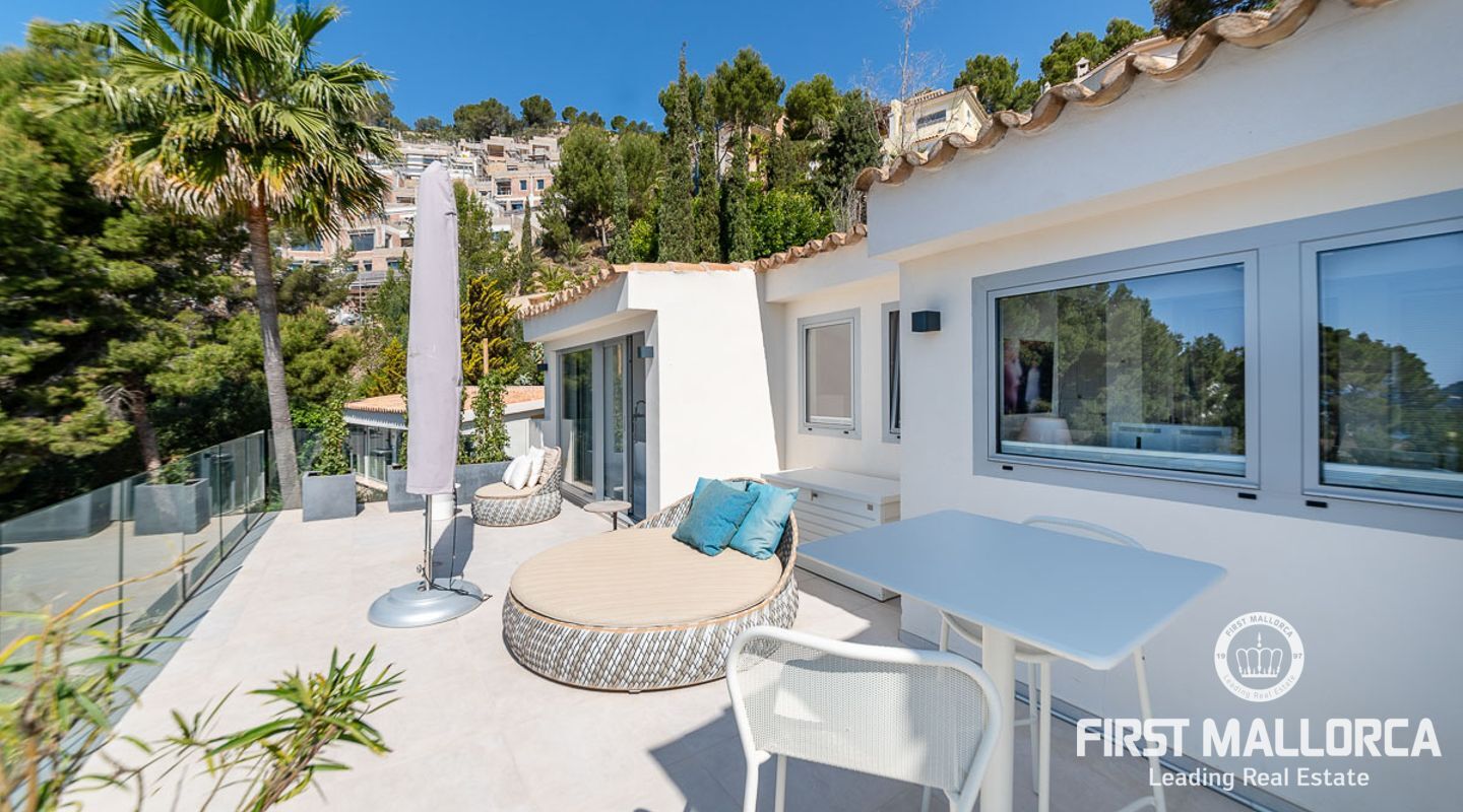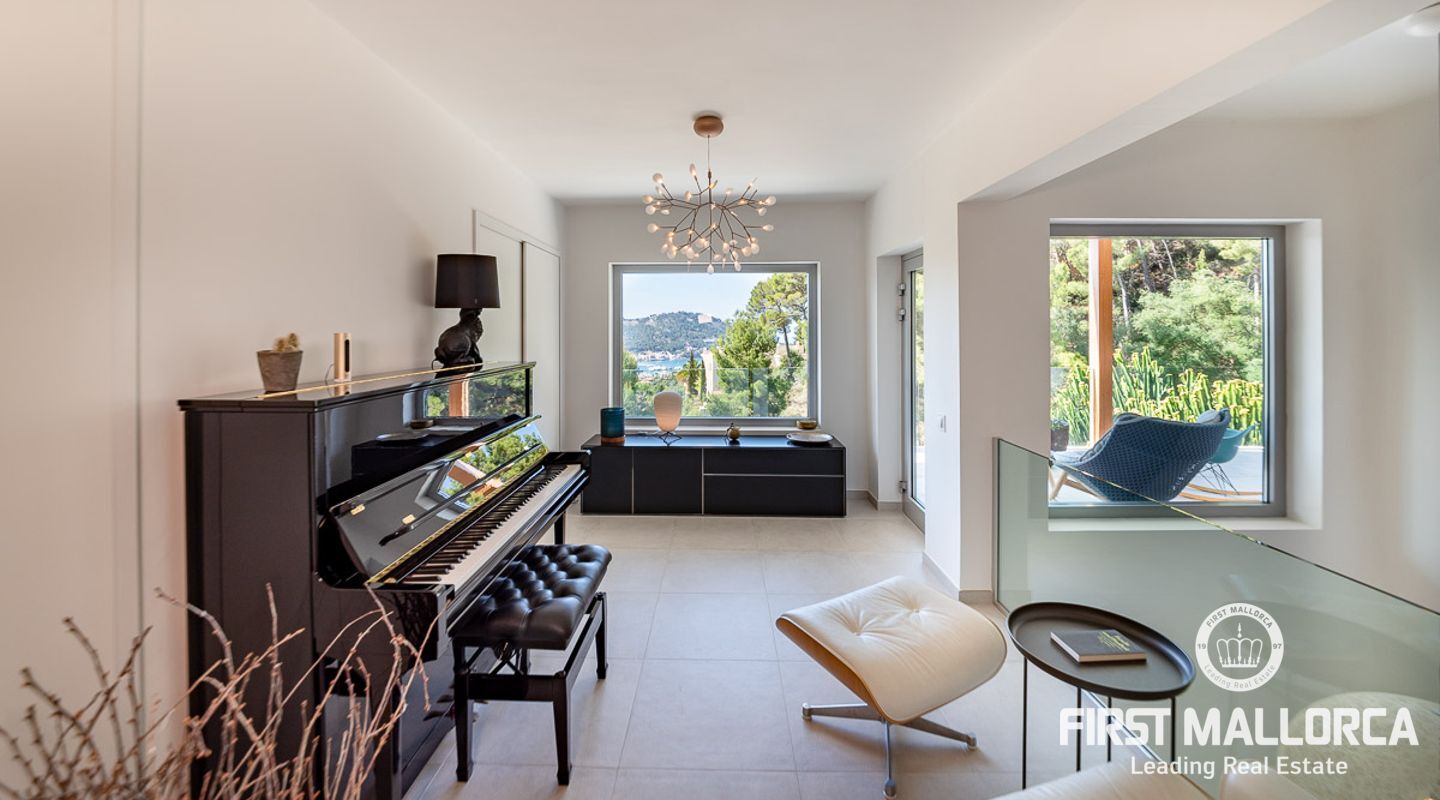 Underbar villa i ett mycket lugnt område med utsikt över Puerto de Andratx. Fastigheten har nyligen renoverats i modern design och kombinerar traditionell arkitektur med modern inredning. Villan ligger i Can Borras som är en trevlig urbanisering bara några minuters bilresa från centrum. Den har en tomt i söderläge på ca 768 m2 och en byggd yta på ca 212 m2 inklusive en täckt terrass på 30 m2 och flera öppna terrasser. Fördelningen är som följer: På bottenvåningen finns det rymliga vardagsrummet och matsalen med ett öppet kök samt gästtoalett och förråd. På första våningen finns 2 sovrum, varav ett med badkar i eget badrum och ett separat badrum. På översta våningen finns det stora sovrummet med spektakulär utsikt över hamnen, bad en-suite och walk-in closet. Ytterligare funktioner: Det finns en pool, golvvärme, luftkonditionering varm/kall i sovrummen, förråd, delvis möblerat.