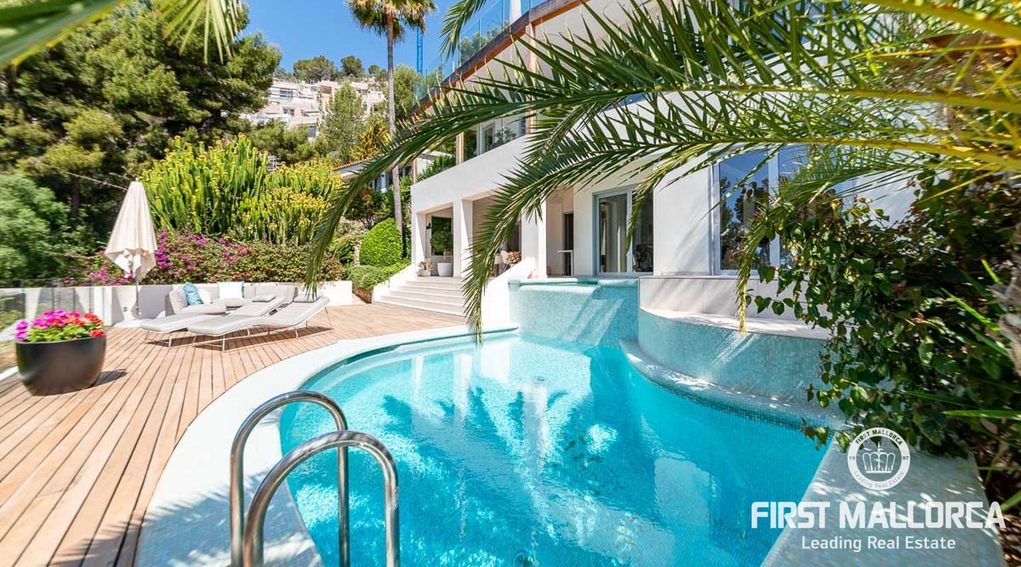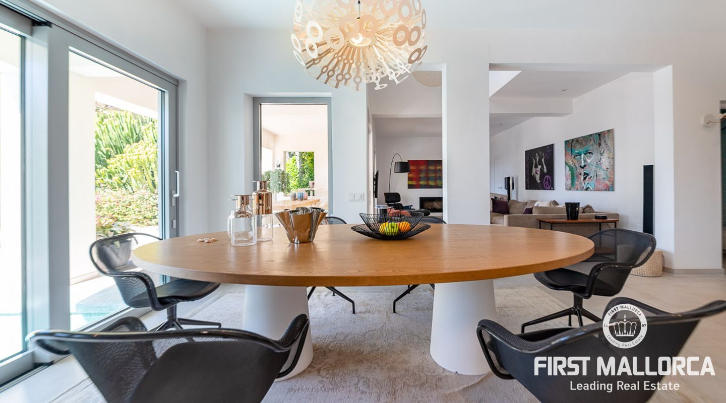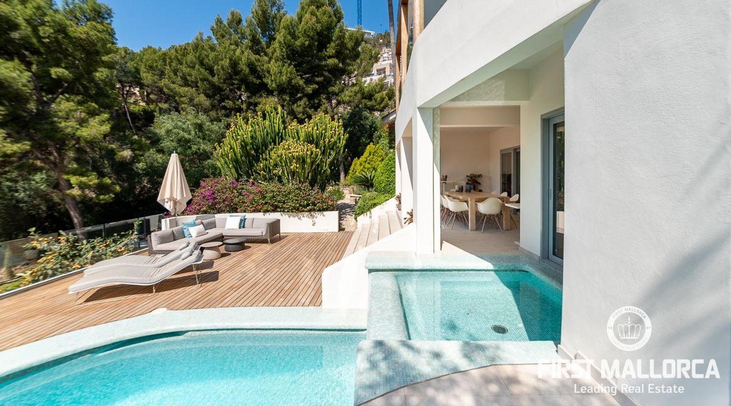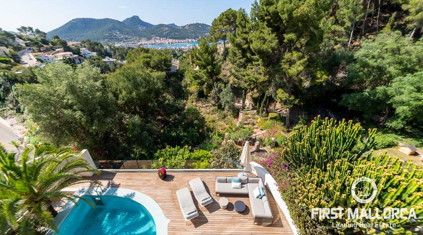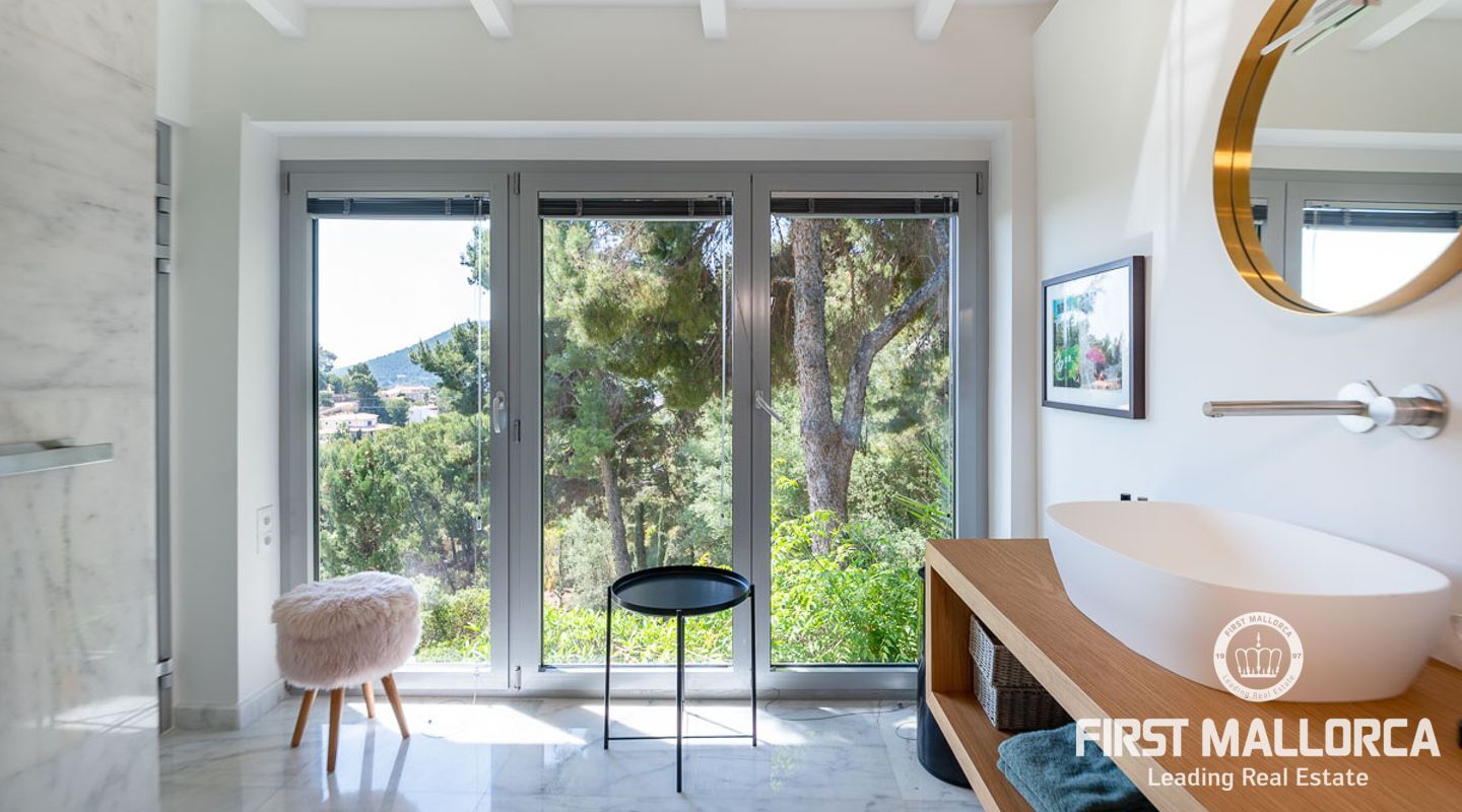 Underbar villa i ett mycket lugnt område med utsikt över Puerto de Andratx. Fastigheten har nyligen renoverats i modern design och kombinerar traditionell arkitektur med modern inredning. Villan ligger i Can Borras som är en trevlig urbanisering bara några minuters bilresa från centrum. Den har en tomt i söderläge på ca 768 m2 och en byggd yta på ca 212 m2 inklusive en täckt terrass på 30 m2 och flera öppna terrasser. Fördelningen är som följer: På bottenvåningen finns det rymliga vardagsrummet och matsalen med ett öppet kök samt gästtoalett och förråd. På första våningen finns 2 sovrum, varav ett med badkar i eget badrum och ett separat badrum. På översta våningen finns det stora sovrummet med spektakulär utsikt över hamnen, bad en-suite och walk-in closet. Ytterligare funktioner: Det finns en pool, golvvärme, luftkonditionering varm/kall i sovrummen, förråd, delvis möblerat.