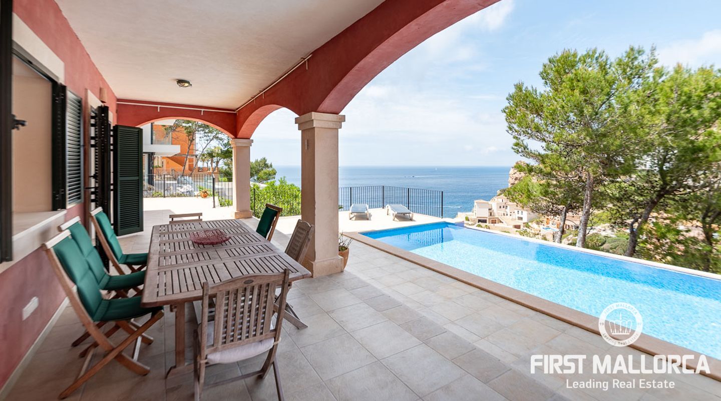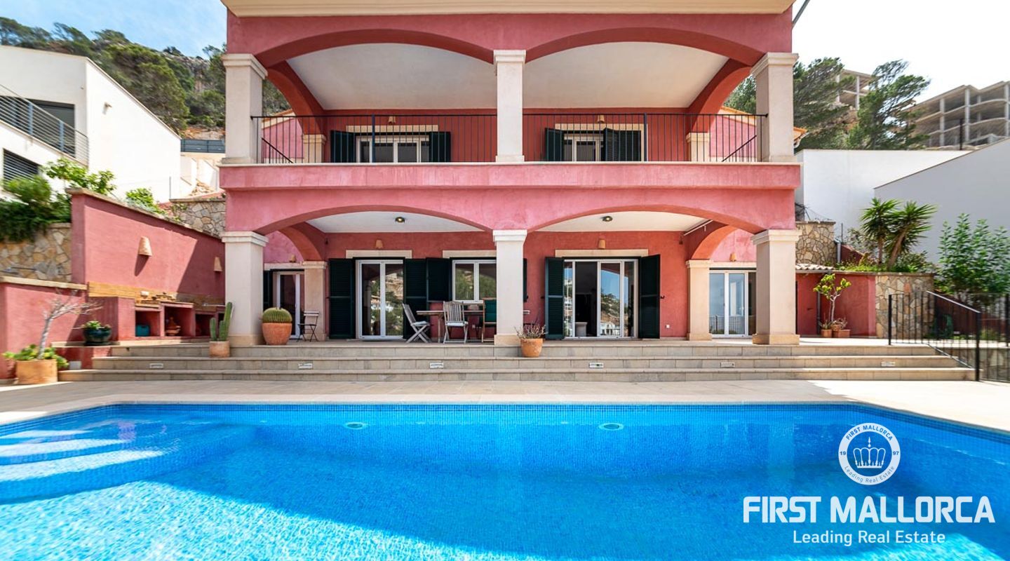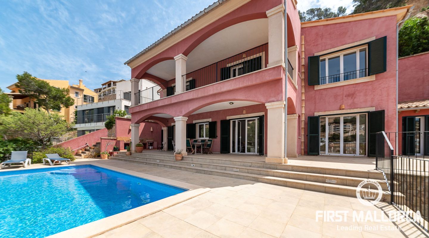 Rymlig villa i medelhavsstil med privat pool och havsutsikt på ett av de bästa platserna i sydväst: Puerto de Andratx! Boendet är fördelat på bottenvåningen med ett vardagsrum och kök i öppen planlösning som leder till terrasserna där du kan njuta av sommarlivet med en utomhusgrill och en täckt terrass, plus den öppna terrassen runt poolen. De tre sovrummen ligger på första våningen. Detta hus är ett perfekt köp för alla som vill koppla av under solen och den blå himlen på det magiska Mallorca. Ytterligare funktioner inkluderar hiss och privat parkering utanför gatan för 2 bilar.