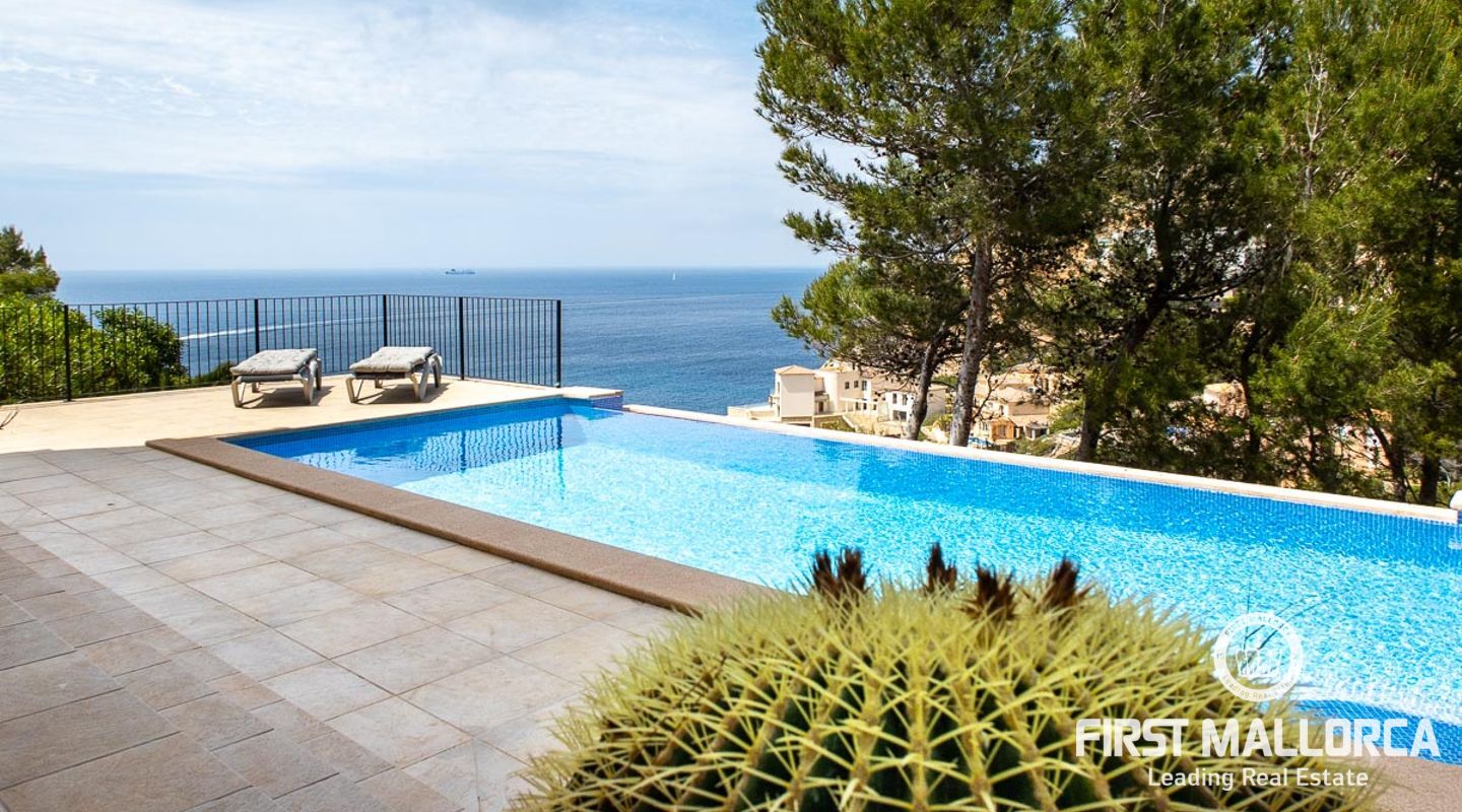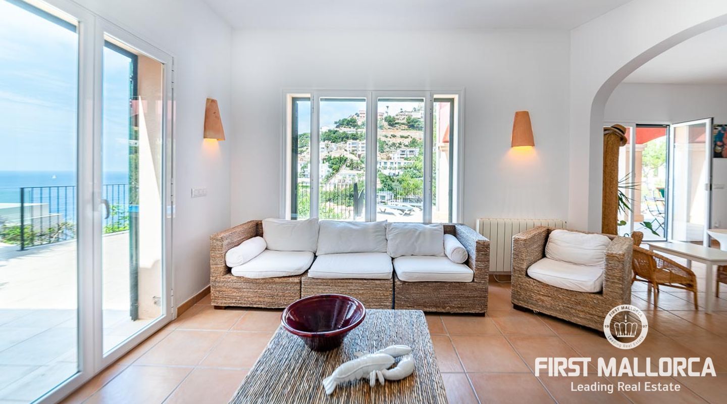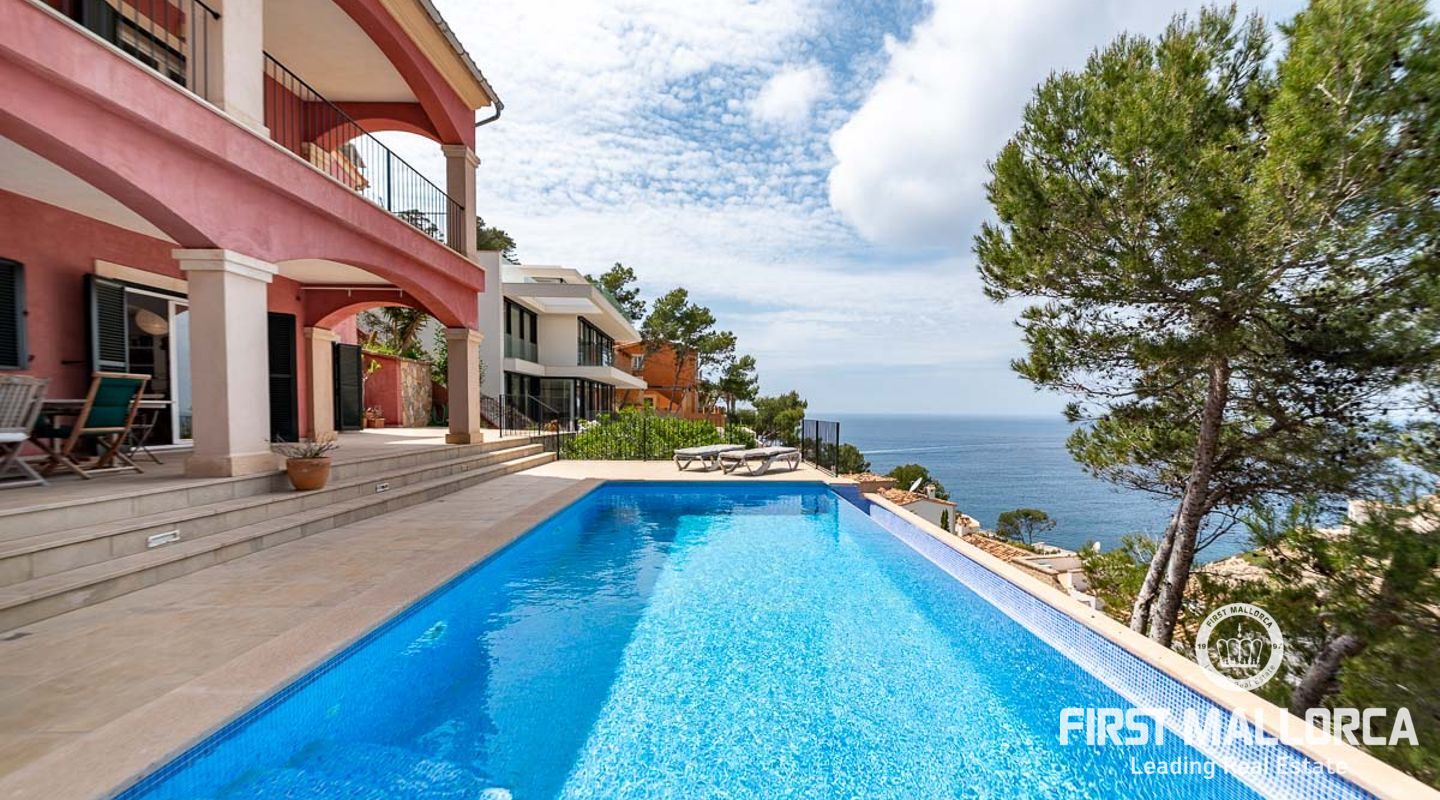Rymlig villa i medelhavsstil med privat pool och havsutsikt på ett av de bästa platserna i sydväst: Puerto de Andratx! Boendet är fördelat på bottenvåningen med ett vardagsrum och kök i öppen planlösning som leder till terrasserna där du kan njuta av sommarlivet med en utomhusgrill och en täckt terrass, plus den öppna terrassen runt poolen. De tre sovrummen ligger på första våningen. Detta hus är ett perfekt köp för alla som vill koppla av under solen och den blå himlen på det magiska Mallorca. Ytterligare funktioner inkluderar hiss och privat parkering utanför gatan för 2 bilar.