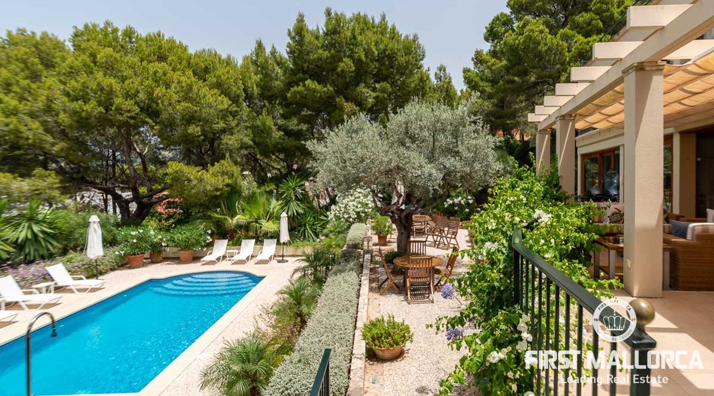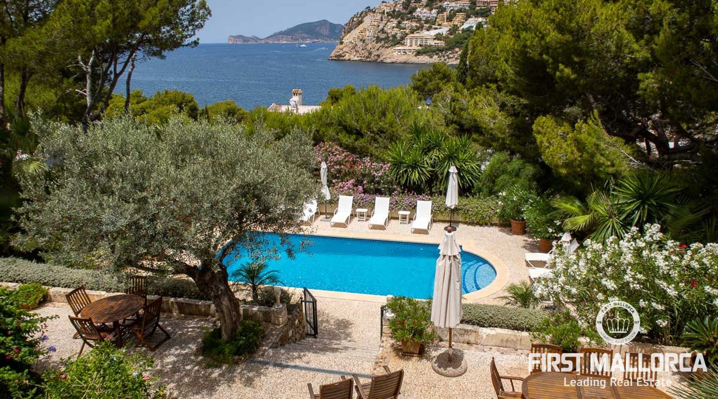 Ljus och rymlig familjevilla i ett av de bästa bostadsområdena, bara en kort promenad från Puerto de Andratx centrum. Fastigheten har avundsvärda underhållningsutrymmen, perfekt för lata sommardagar vid poolen och al fresco-middagar på terrasserna med utsikt över havet och naturreservatet ön Dragonera. Idyllisk miljö i oklanderligt skötta mogna trädgårdar och perfekt för barnfamiljer som kan njuta av den plana gräsmattan under poolområdet. En sällsynt fastighet med turistlicens som erbjuder en fantastisk investeringsmöjlighet för att tjäna en extra hyresinkomst. Magiska solnedgångar ingår!