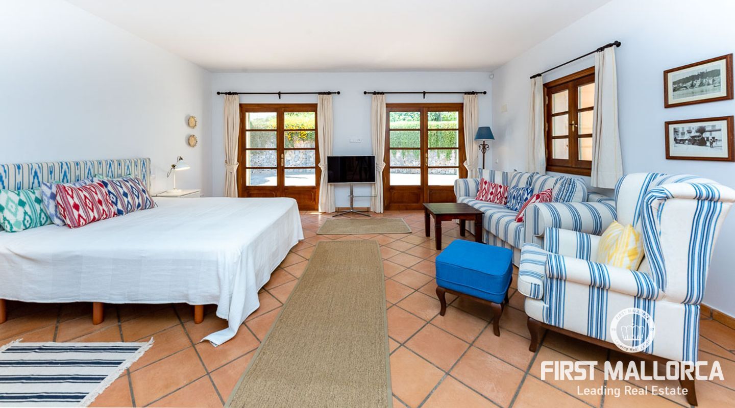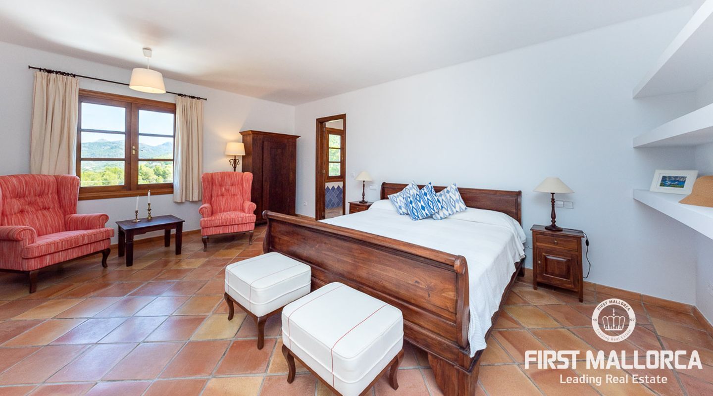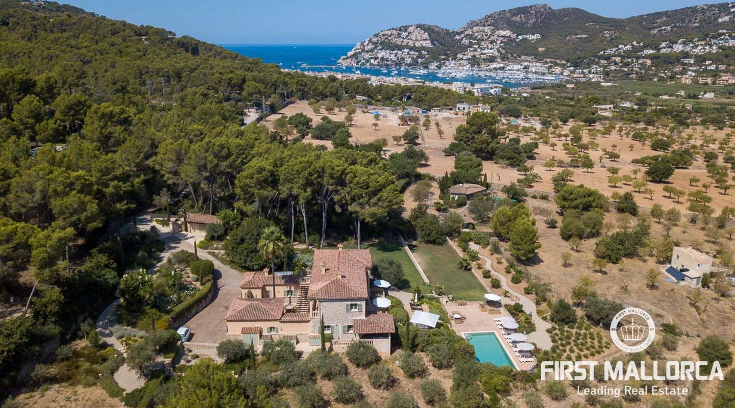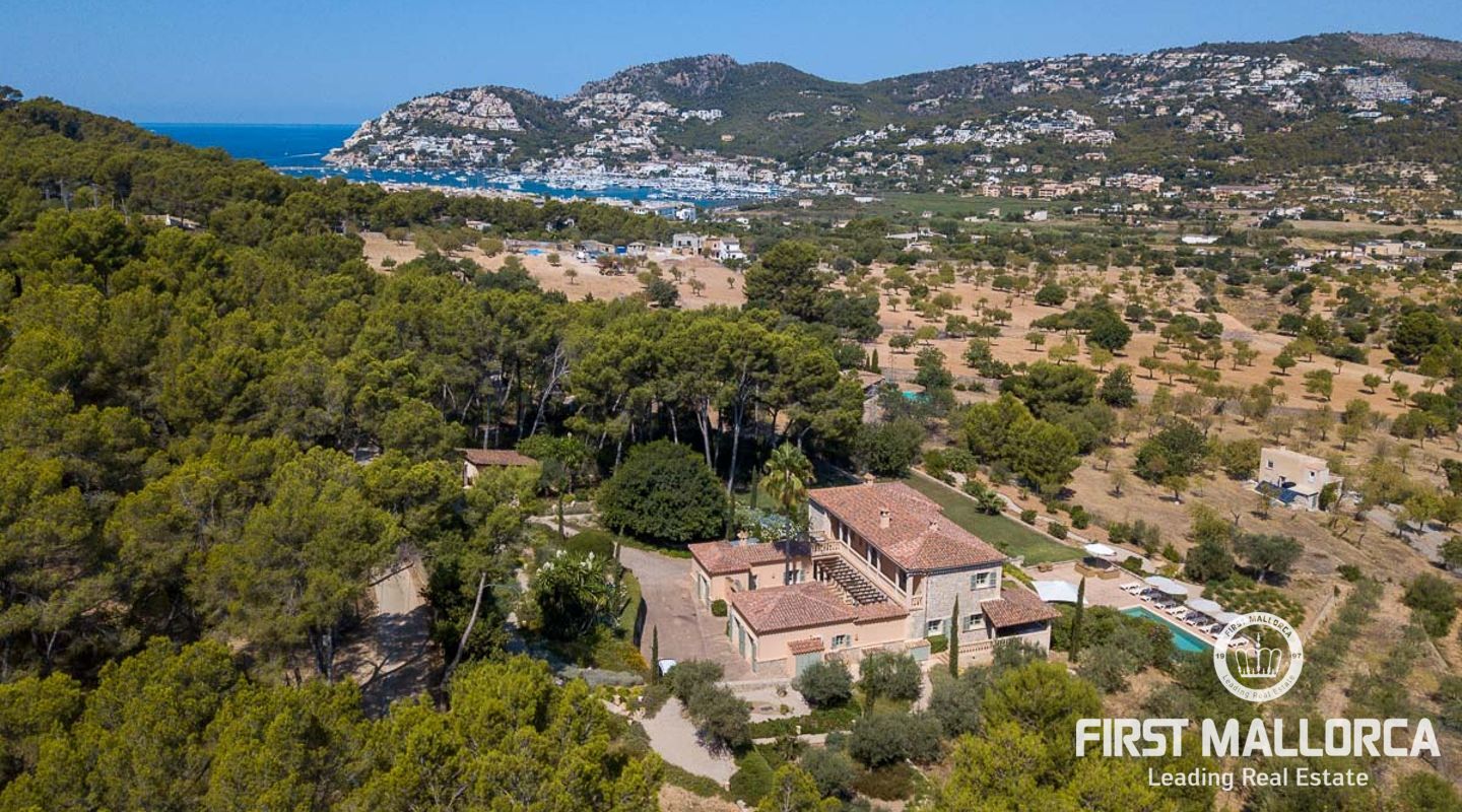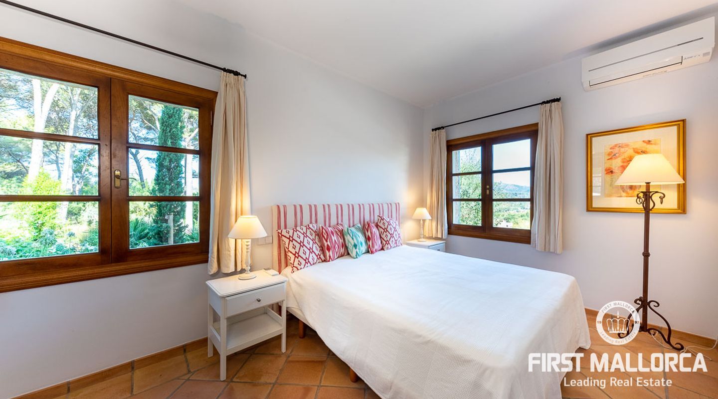 Fantastisk finca i medelhavsstil som förutom att erbjuda lugnet och livsstilen från en lantlig fastighet också ligger bara 10 minuters promenad från en av Mallorcas vackraste och mest eftertraktade hamnar, Puerto Andratx! Fastigheten renoverades kärleksfullt till högsta standard 2015, med ett spektakulärt resultat som kommer att förtrolla de som besöker den. Inuti, rymliga och ljusa utrymmen, med totalt 5 dubbelrum med badrum en suite, halvöppet kök till vardagsrum och matsal. Utanför hittar vi en trädgård som är minutiöst skapad med stor omsorg och med vackra hörn där du kan koppla av och njuta av avskildhet och vacker öppen utsikt. Poolen, omgiven av trädgården och med sina nästan 80 m², är utan tvekan ett av husets vackraste inslag och den perfekta platsen för att koppla av och njuta med familj och vänner.