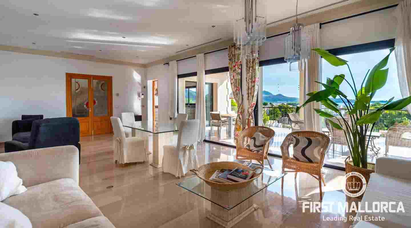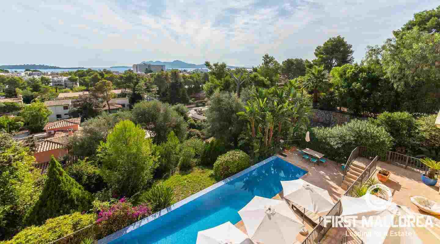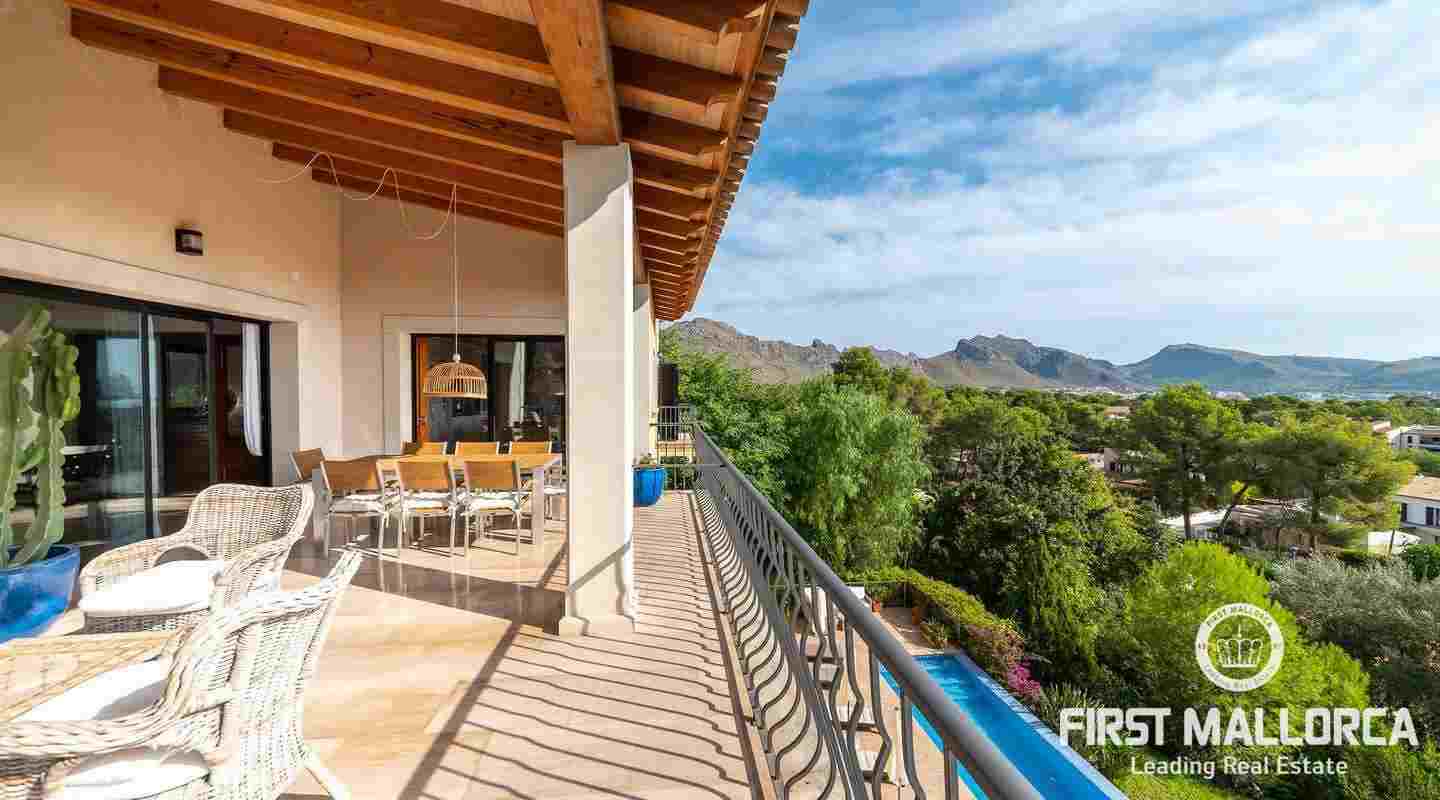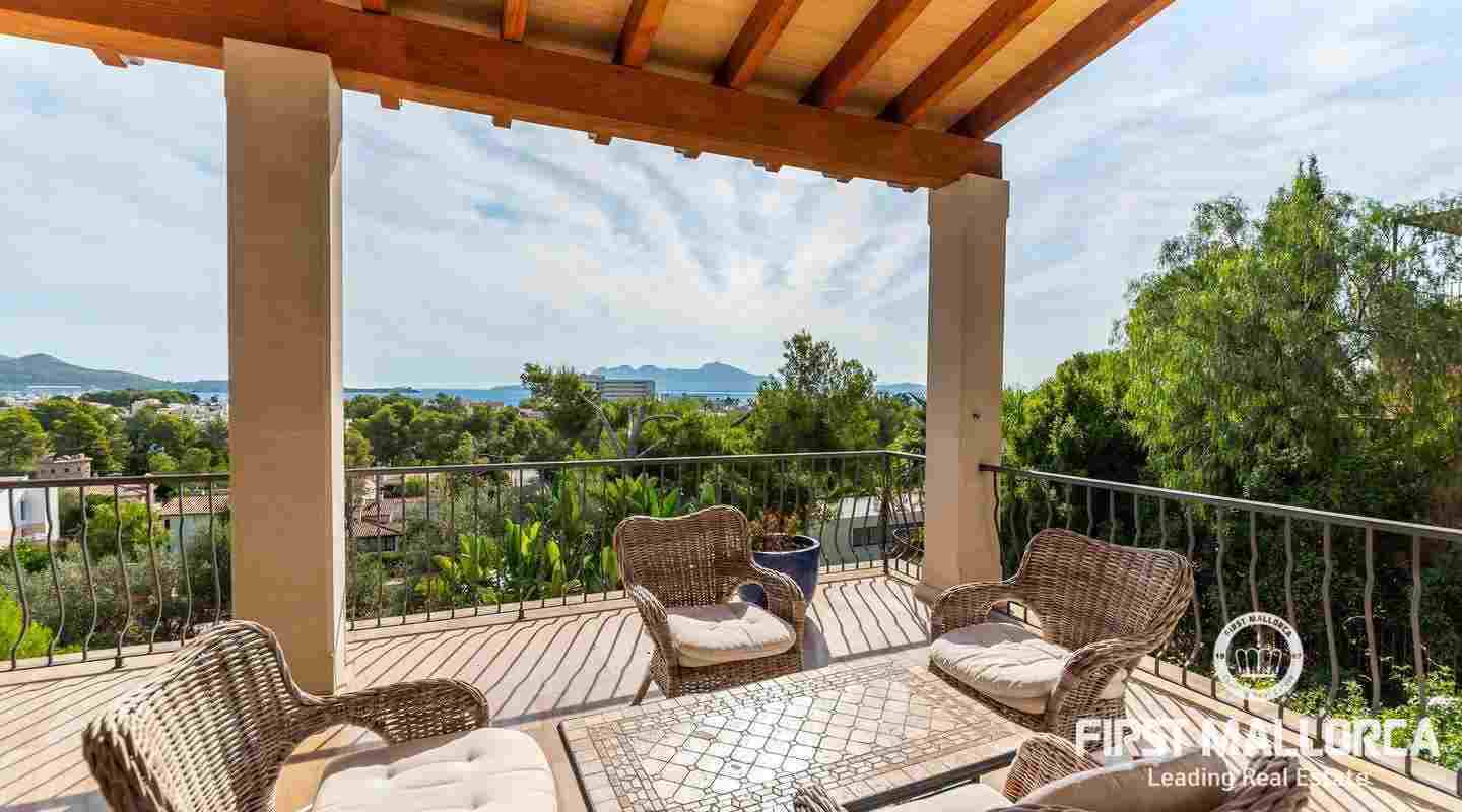 Denna moderna villa ligger i det exklusiva bostadsområdet Gotmar och har en fantastisk utsikt över Pollensabukten till Cap Formentor tack vare sitt höga läge. Fastigheten är fördelad på två våningar med fyra sovrum, tre badrum varav två en-suite, ett rymligt och ljust vardagsrum/matsal och ett fullt utrustat kök. Från det stora sovrummet, vardagsrummet och köket har du tillgång till den rymliga terrassen, som erbjuder gott om utrymme för mysiga sammankomster med familj och vänner. Du njuter också av en fantastisk utsikt över havet samt den välskötta trädgården och poolen. Hela fastigheten är utrustad med luftkonditionering varm/kall och har en privat parkeringsplats. Den erbjuder allt för att vara det perfekta hemmet eller semesterbostaden. Likaså finns den eftertraktade licensen för semesteruthyrning redan på plats, vilket gör det också till en attraktiv investeringsmöjlighet.