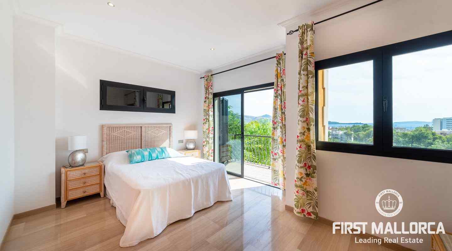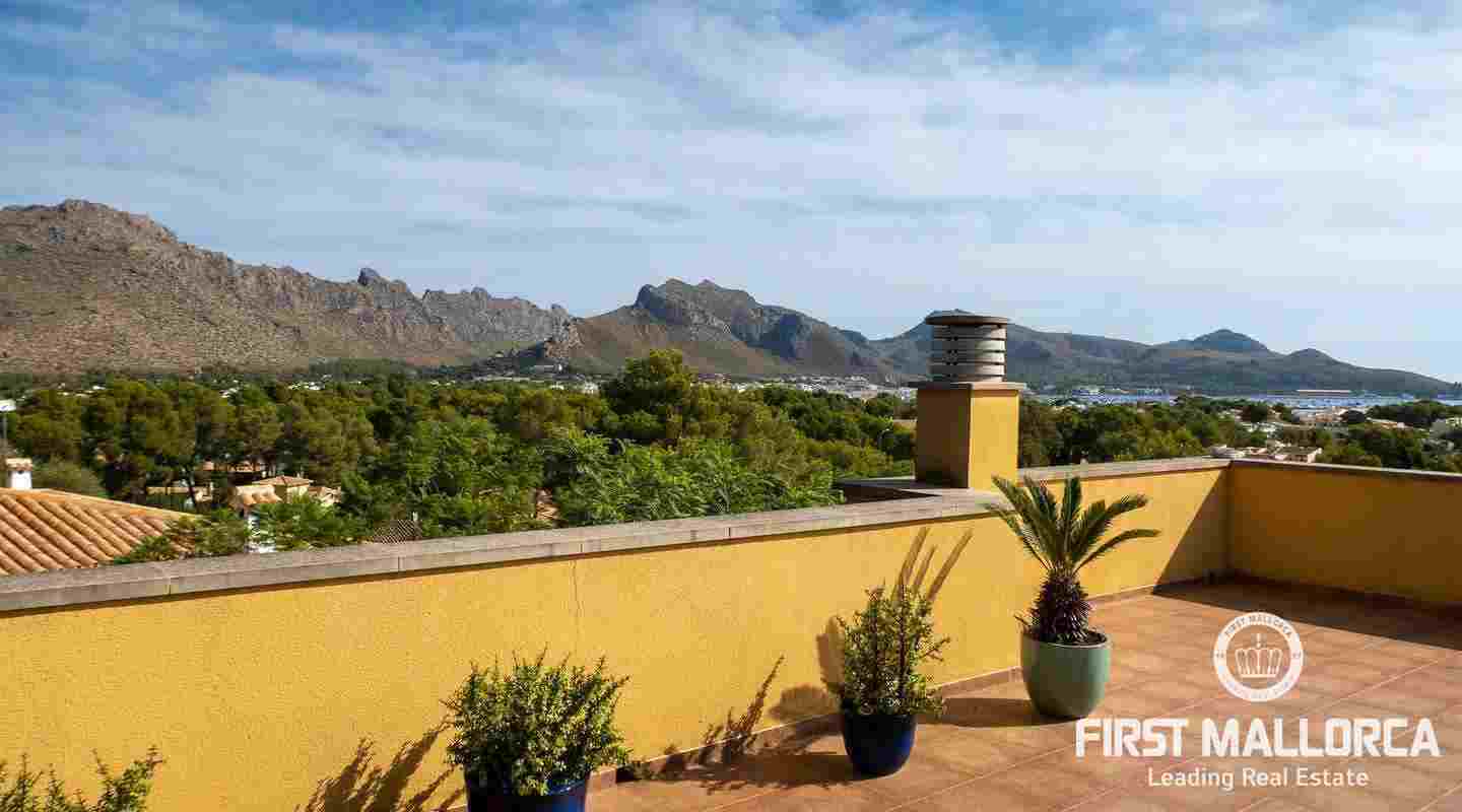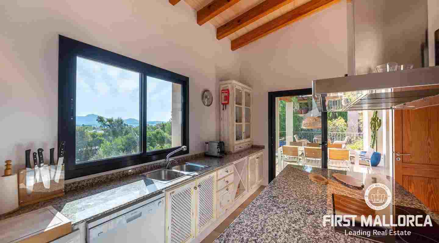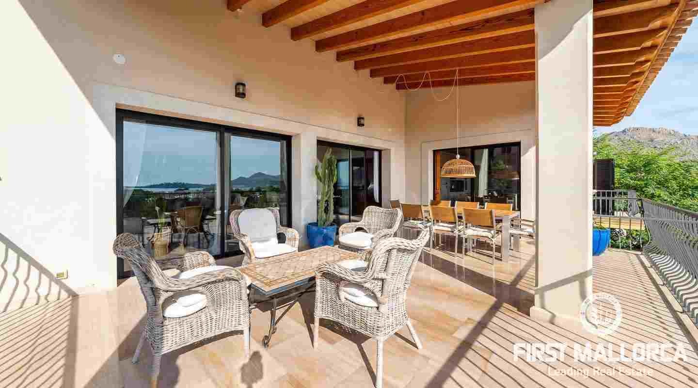 Denna moderna villa ligger i det exklusiva bostadsområdet Gotmar och har en fantastisk utsikt över Pollensabukten till Cap Formentor tack vare sitt höga läge. Fastigheten är fördelad på två våningar med fyra sovrum, tre badrum varav två en-suite, ett rymligt och ljust vardagsrum/matsal och ett fullt utrustat kök. Från det stora sovrummet, vardagsrummet och köket har du tillgång till den rymliga terrassen, som erbjuder gott om utrymme för mysiga sammankomster med familj och vänner. Du njuter också av en fantastisk utsikt över havet samt den välskötta trädgården och poolen. Hela fastigheten är utrustad med luftkonditionering varm/kall och har en privat parkeringsplats. Den erbjuder allt för att vara det perfekta hemmet eller semesterbostaden. Likaså finns den eftertraktade licensen för semesteruthyrning redan på plats, vilket gör det också till en attraktiv investeringsmöjlighet.