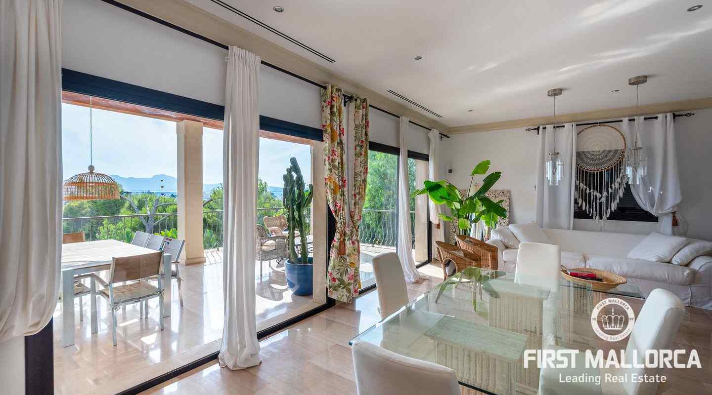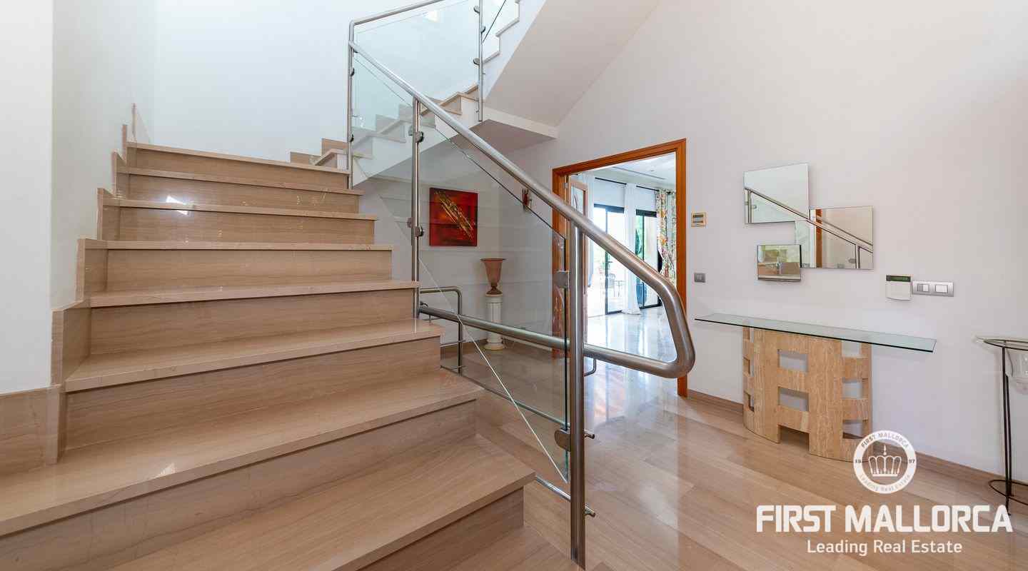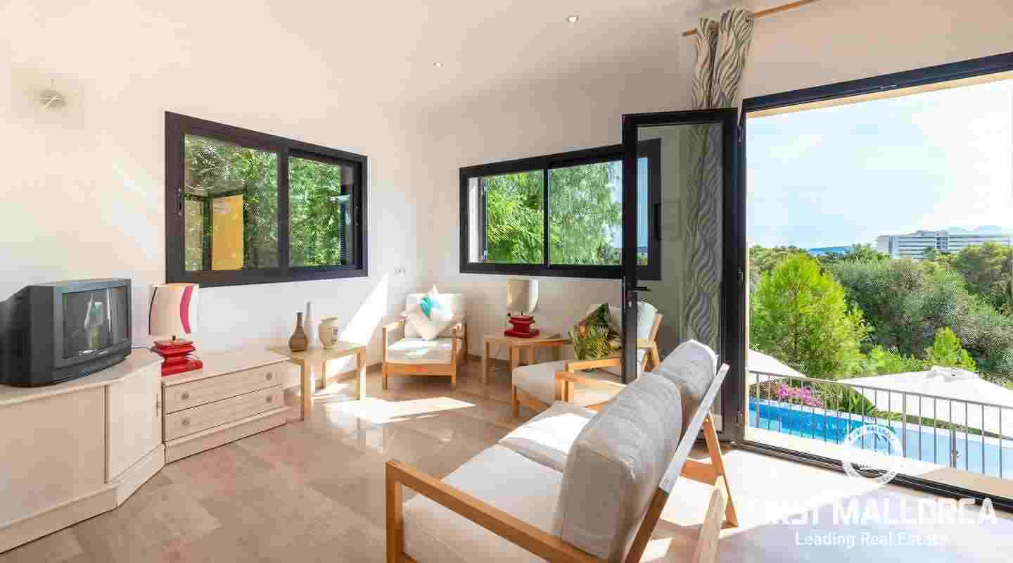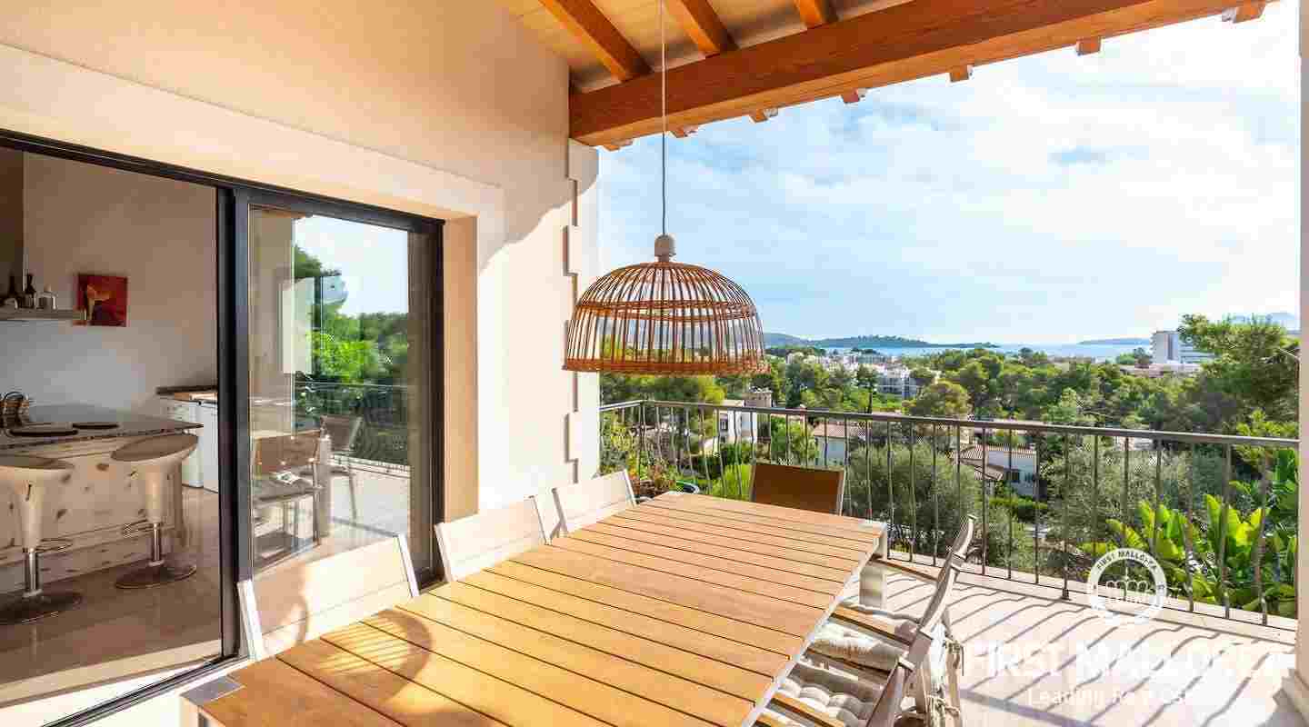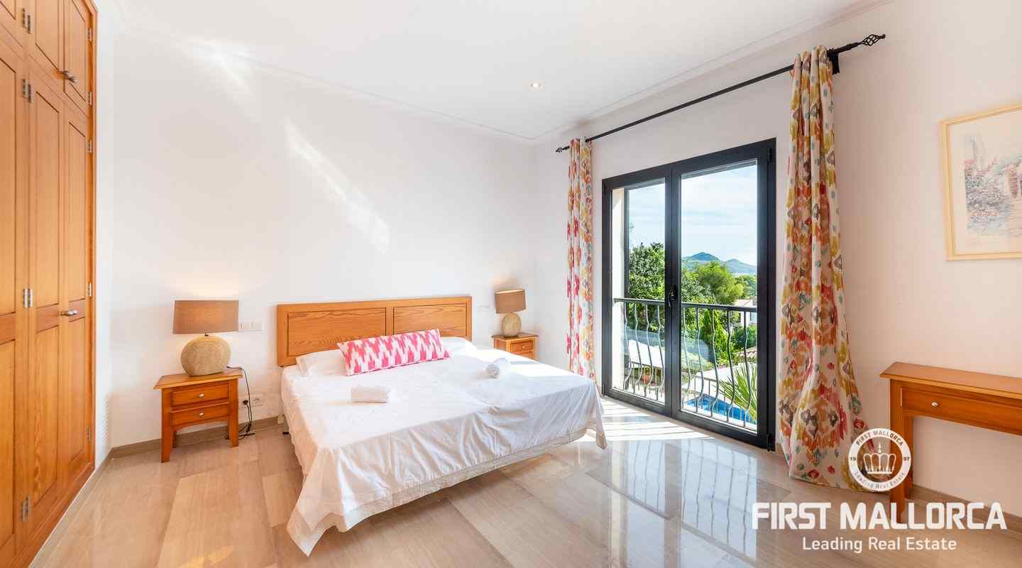 Denna moderna villa ligger i det exklusiva bostadsområdet Gotmar och har en fantastisk utsikt över Pollensabukten till Cap Formentor tack vare sitt höga läge. Fastigheten är fördelad på två våningar med fyra sovrum, tre badrum varav två en-suite, ett rymligt och ljust vardagsrum/matsal och ett fullt utrustat kök. Från det stora sovrummet, vardagsrummet och köket har du tillgång till den rymliga terrassen, som erbjuder gott om utrymme för mysiga sammankomster med familj och vänner. Du njuter också av en fantastisk utsikt över havet samt den välskötta trädgården och poolen. Hela fastigheten är utrustad med luftkonditionering varm/kall och har en privat parkeringsplats. Den erbjuder allt för att vara det perfekta hemmet eller semesterbostaden. Likaså finns den eftertraktade licensen för semesteruthyrning redan på plats, vilket gör det också till en attraktiv investeringsmöjlighet.