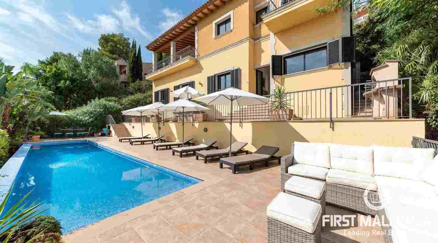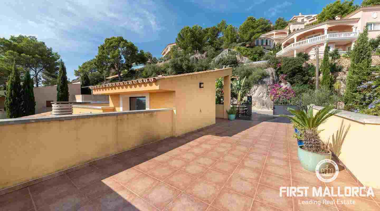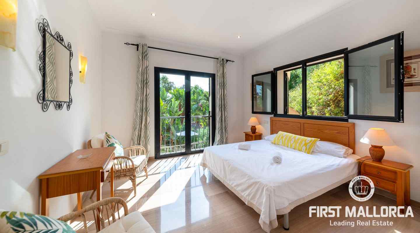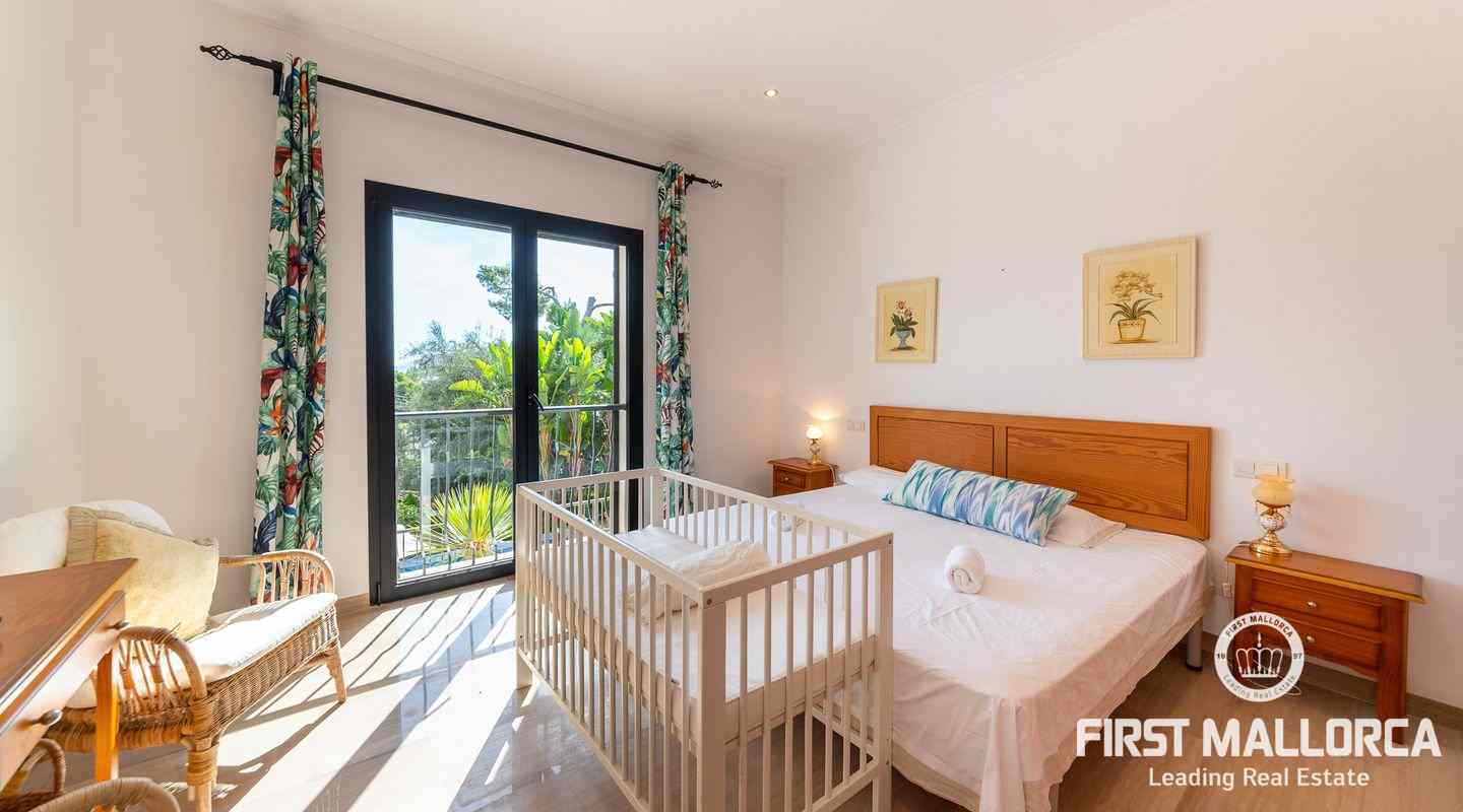 Denna moderna villa ligger i det exklusiva bostadsområdet Gotmar och har en fantastisk utsikt över Pollensabukten till Cap Formentor tack vare sitt höga läge. Fastigheten är fördelad på två våningar med fyra sovrum, tre badrum varav två en-suite, ett rymligt och ljust vardagsrum/matsal och ett fullt utrustat kök. Från det stora sovrummet, vardagsrummet och köket har du tillgång till den rymliga terrassen, som erbjuder gott om utrymme för mysiga sammankomster med familj och vänner. Du njuter också av en fantastisk utsikt över havet samt den välskötta trädgården och poolen. Hela fastigheten är utrustad med luftkonditionering varm/kall och har en privat parkeringsplats. Den erbjuder allt för att vara det perfekta hemmet eller semesterbostaden. Likaså finns den eftertraktade licensen för semesteruthyrning redan på plats, vilket gör det också till en attraktiv investeringsmöjlighet.
