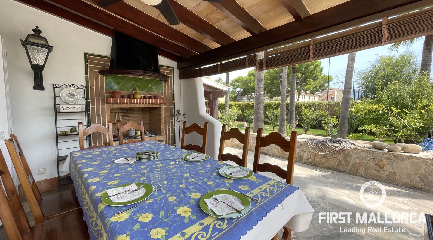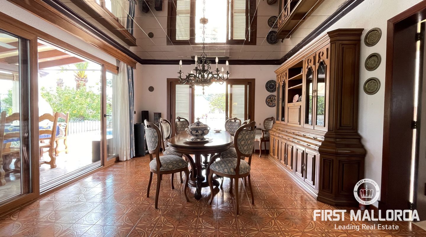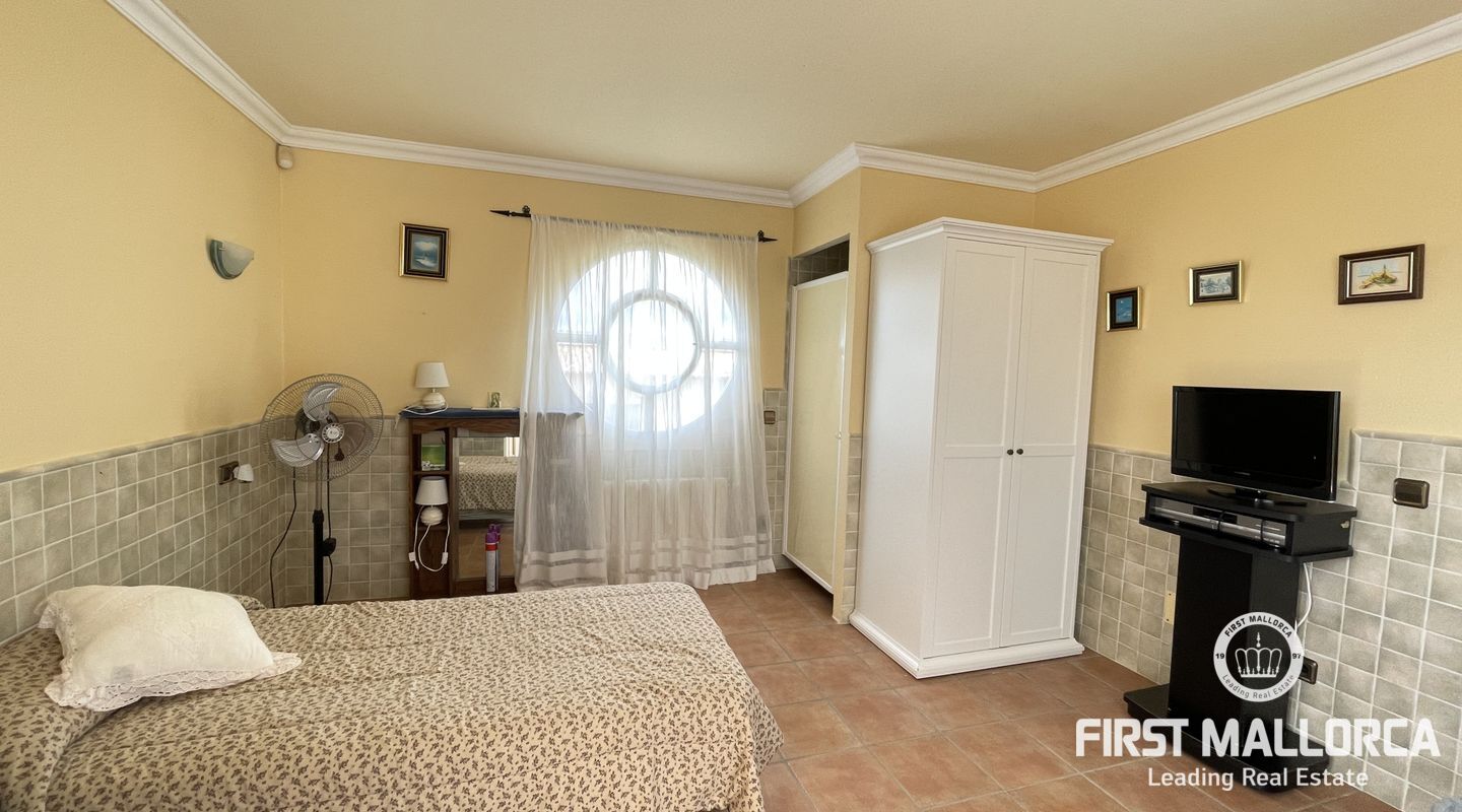 Vacker villa i Ibiza-stil som ligger några meter från den vackra stranden i Sa Coma, den är omgiven av en vacker privat trädgård med kungliga palmer och fruktträd. Dess stora konstruktion kännetecknas av sin elegans och vackra vita färg, som fördelar sina 425m2 inbyggda i 6 stora sovrum varav 3 av dem är sviter och totalt 5 badrum i hela huset med respektive dusch och badkar.
