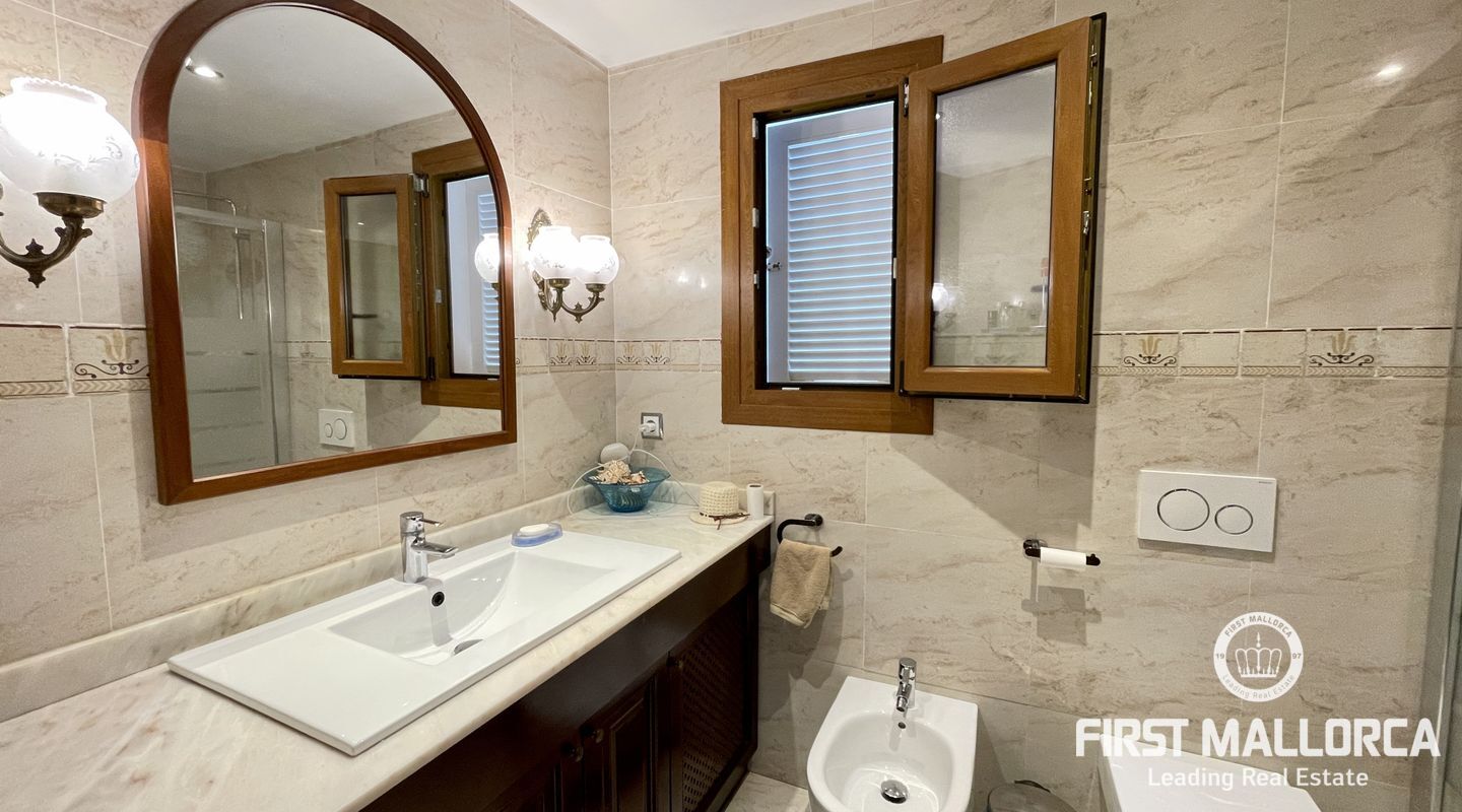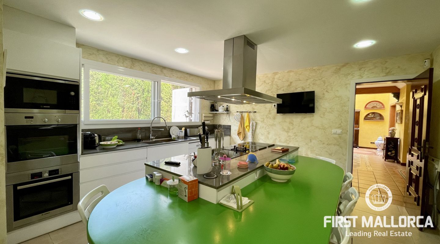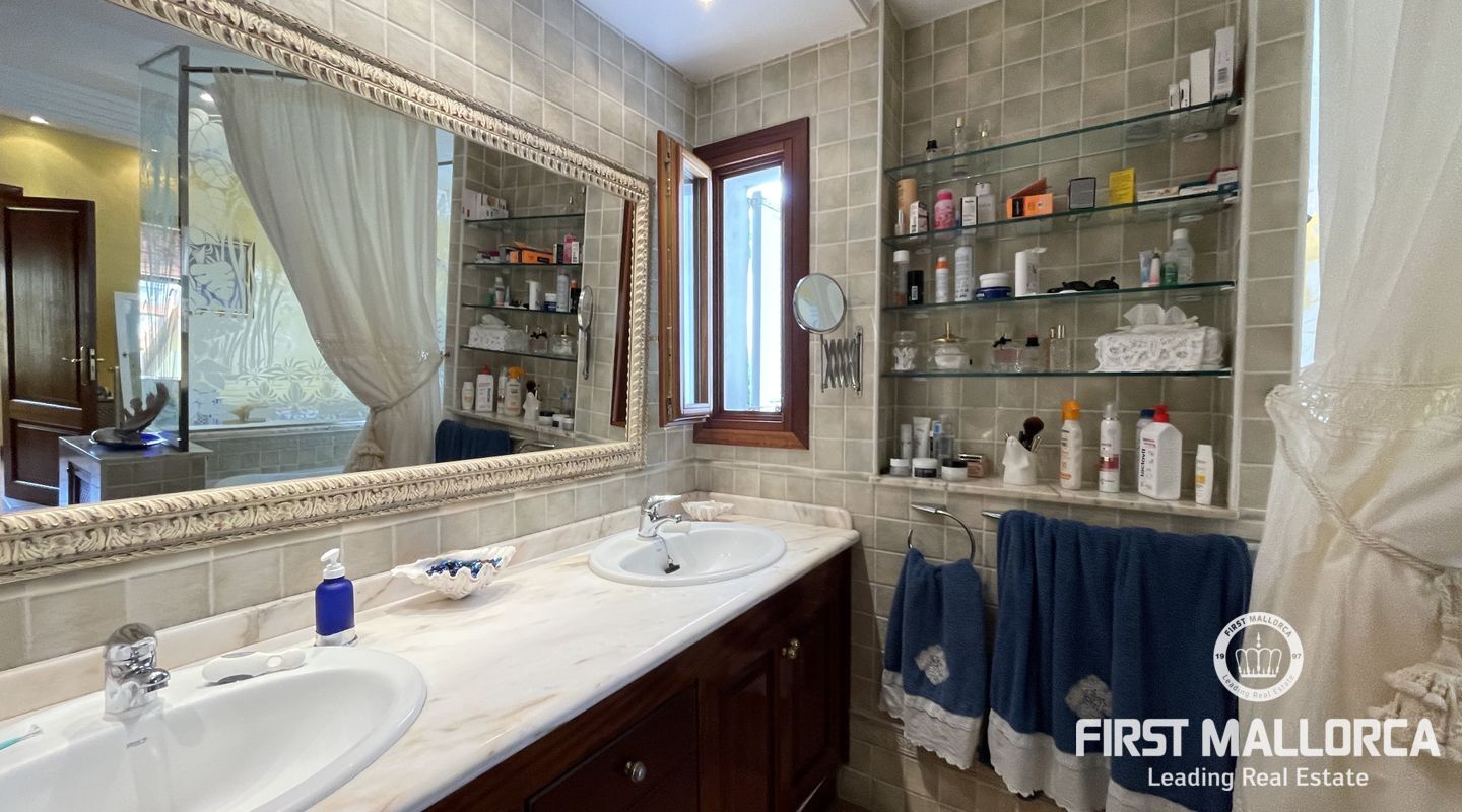 Vacker villa i Ibiza-stil som ligger några meter från den vackra stranden i Sa Coma, den är omgiven av en vacker privat trädgård med kungliga palmer och fruktträd. Dess stora konstruktion kännetecknas av sin elegans och vackra vita färg, som fördelar sina 425m2 inbyggda i 6 stora sovrum varav 3 av dem är sviter och totalt 5 badrum i hela huset med respektive dusch och badkar.