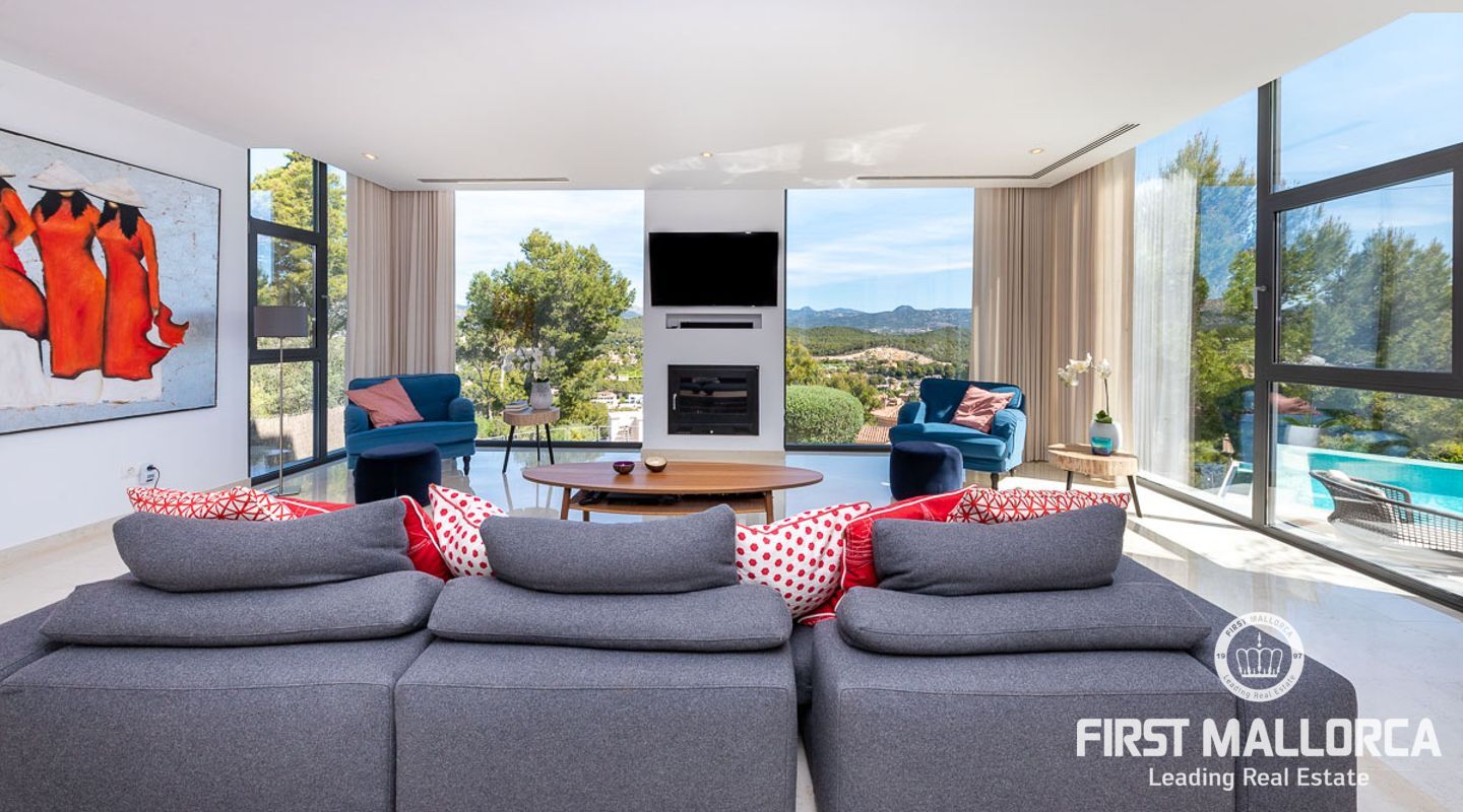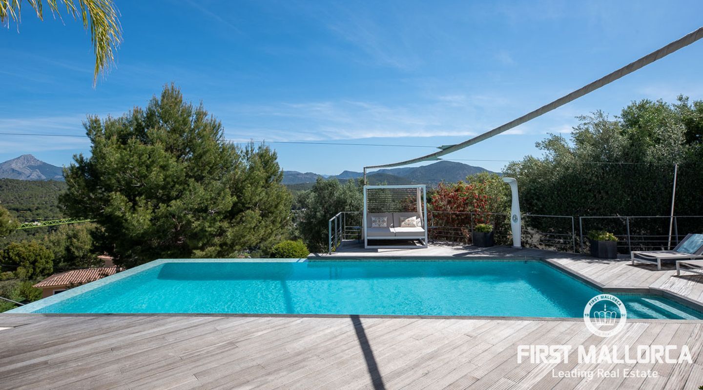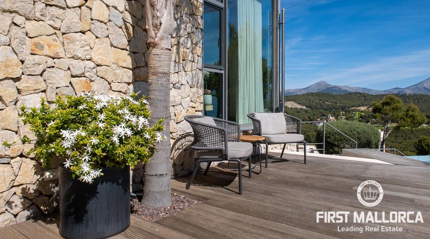 Huset är byggt på 2 våningar och fyllt av ljus och har 4 rymliga sovrumssviter, en öppen planlösning med kök, vardagsrum med öppen spis, stora fönster och utsikt över bergen. Infinitypoolen med solterrass, liksom takterrassen med 360 graders panoramautsikt och magnifikt sommarkök samt matplats och relaxavdelning, kompletterar de förstklassiga faciliteterna i denna fastighet.