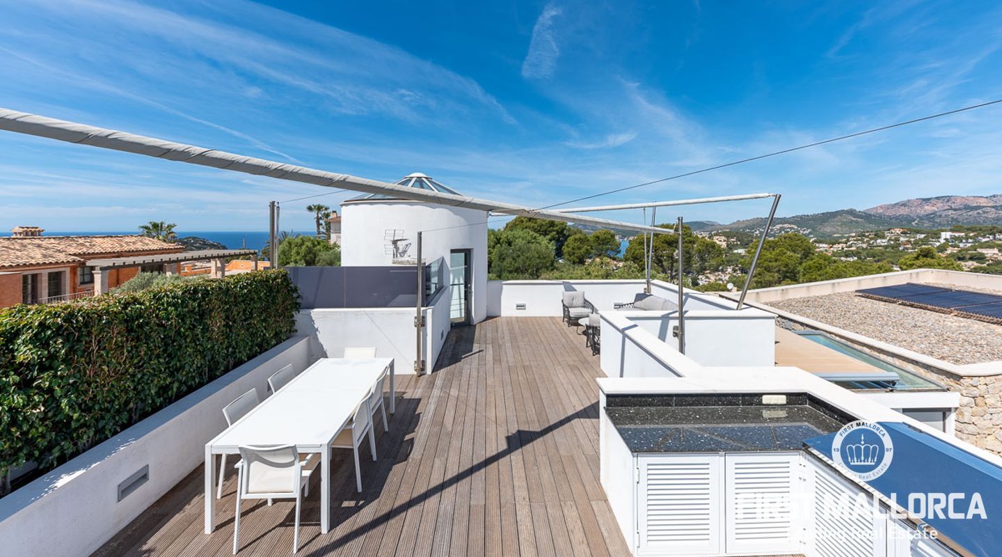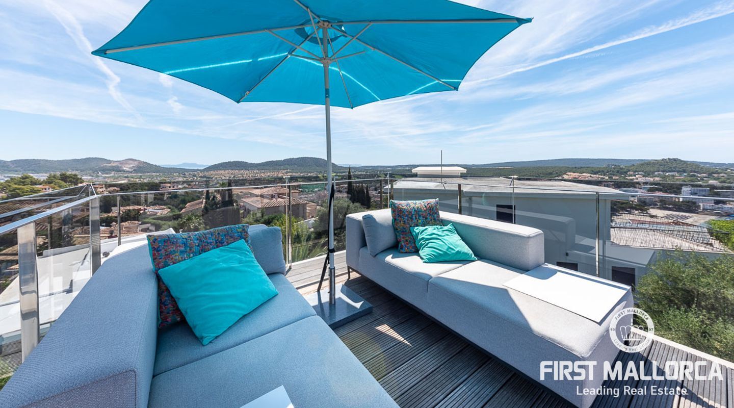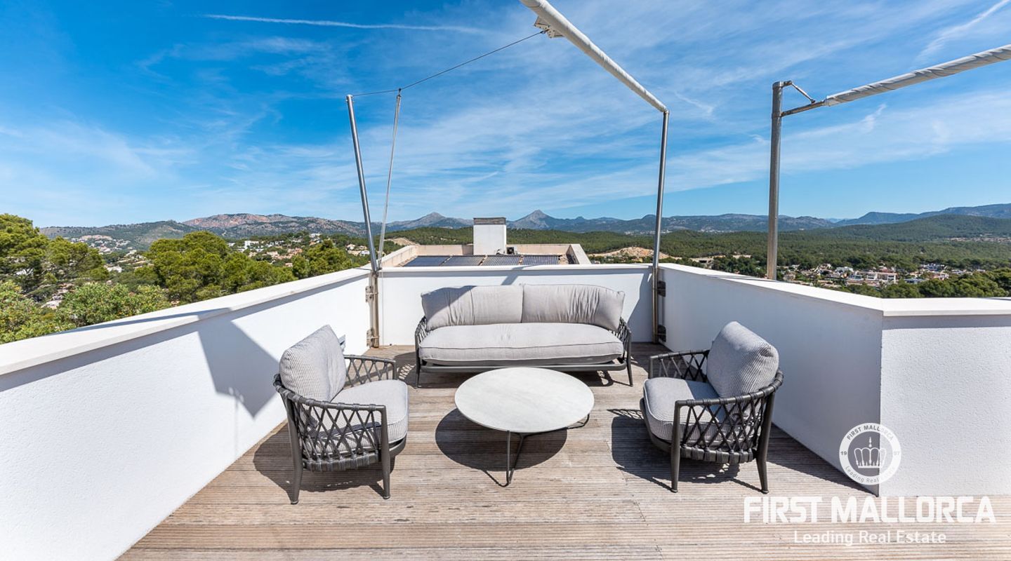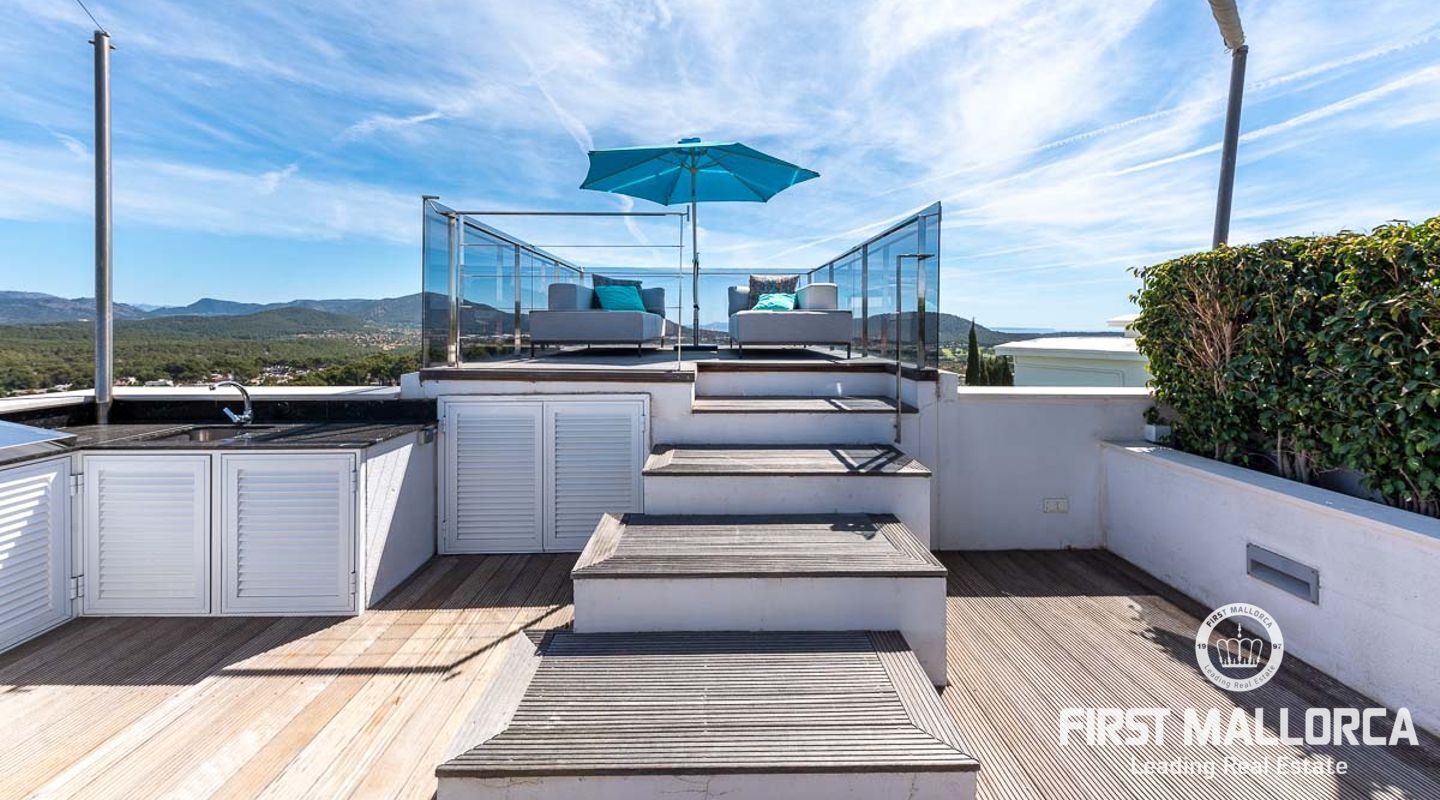 Huset är byggt på 2 våningar och fyllt av ljus och har 4 rymliga sovrumssviter, en öppen planlösning med kök, vardagsrum med öppen spis, stora fönster och utsikt över bergen. Infinitypoolen med solterrass, liksom takterrassen med 360 graders panoramautsikt och magnifikt sommarkök samt matplats och relaxavdelning, kompletterar de förstklassiga faciliteterna i denna fastighet.