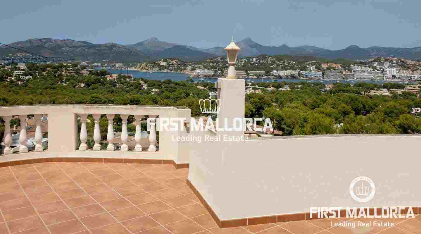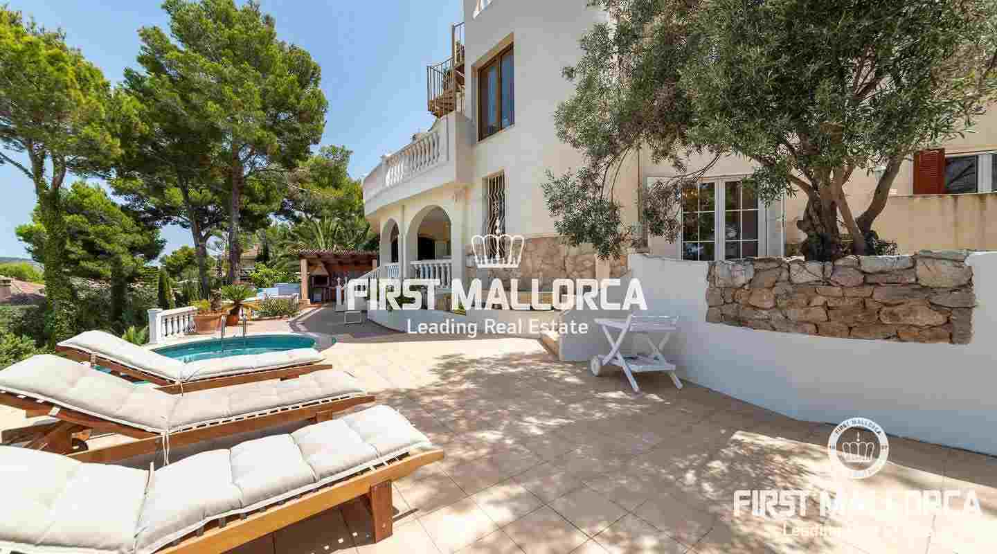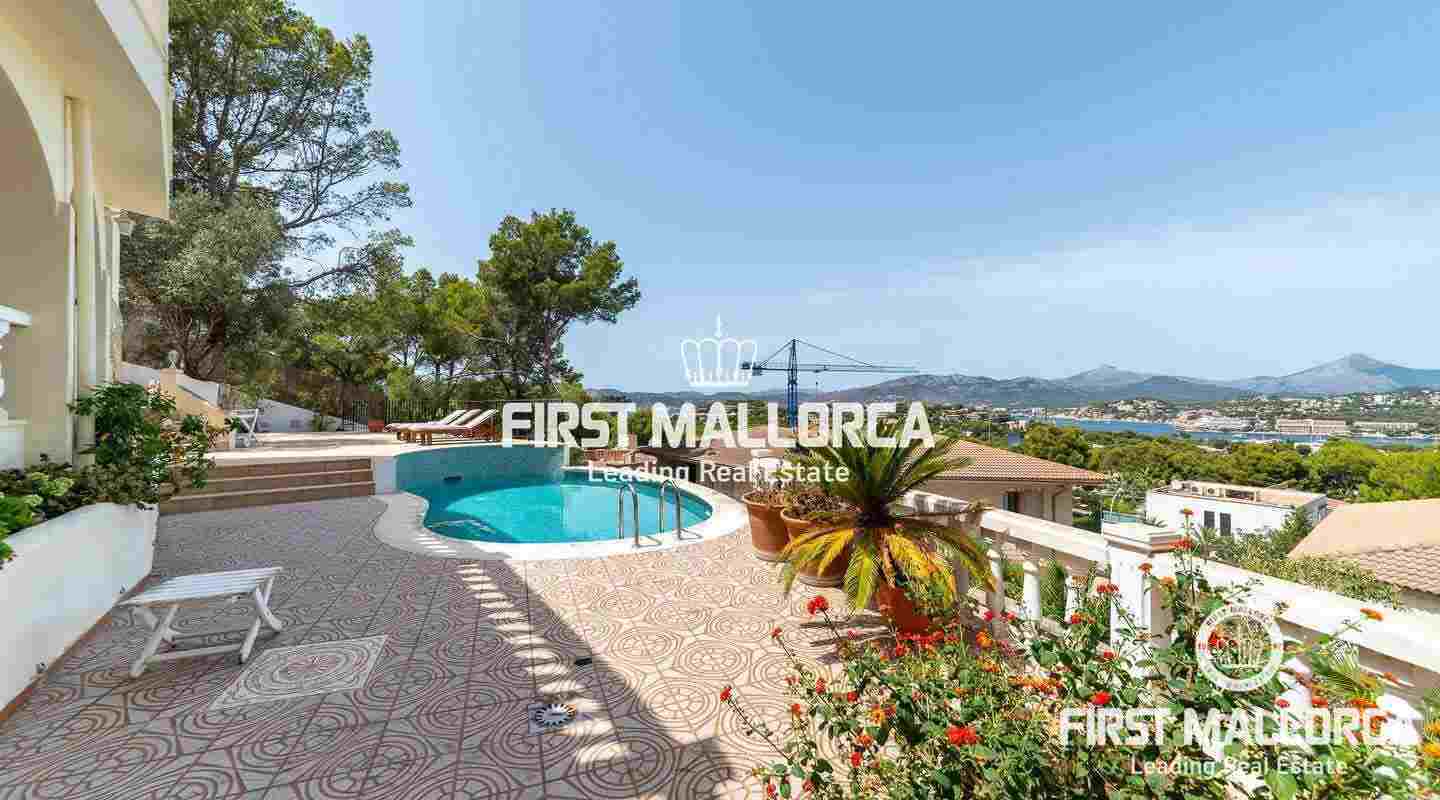 Denna fantastiska villa i ett lugnt bostadsområde har vacker utsikt över havet och Santa Ponsa-bukten. Den eleganta småbåtshamnen i Port Adriano, olika golfbanor och Santa Ponsa Country Club ligger bara ett par minuter bort.