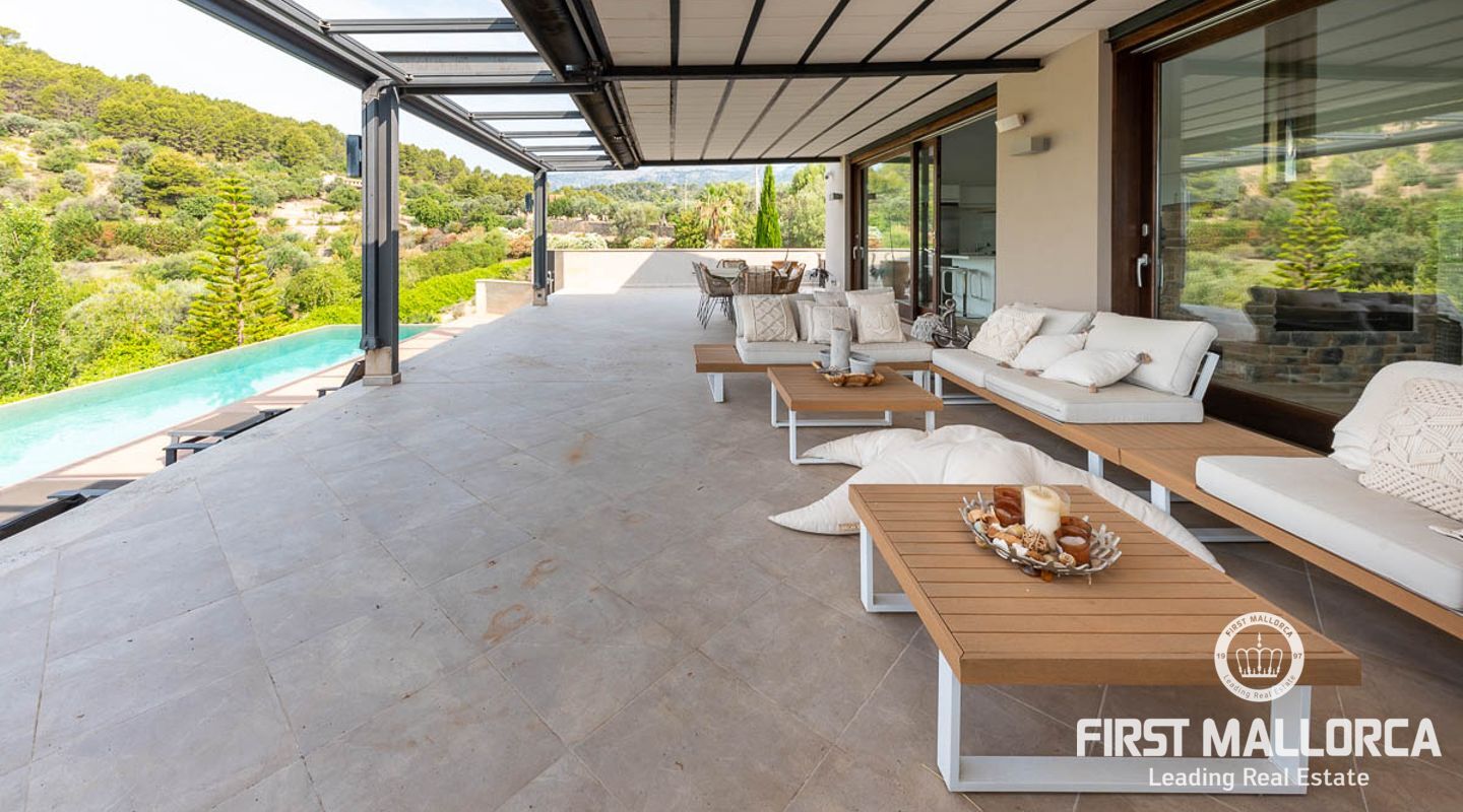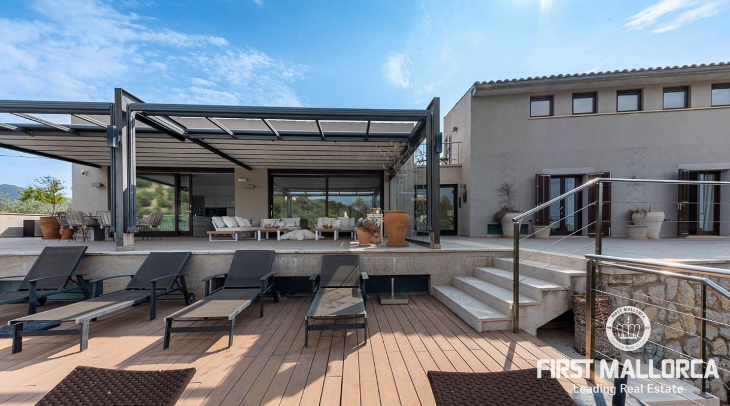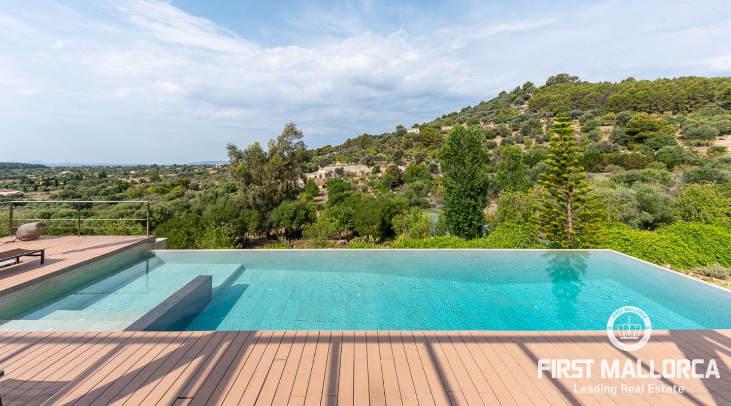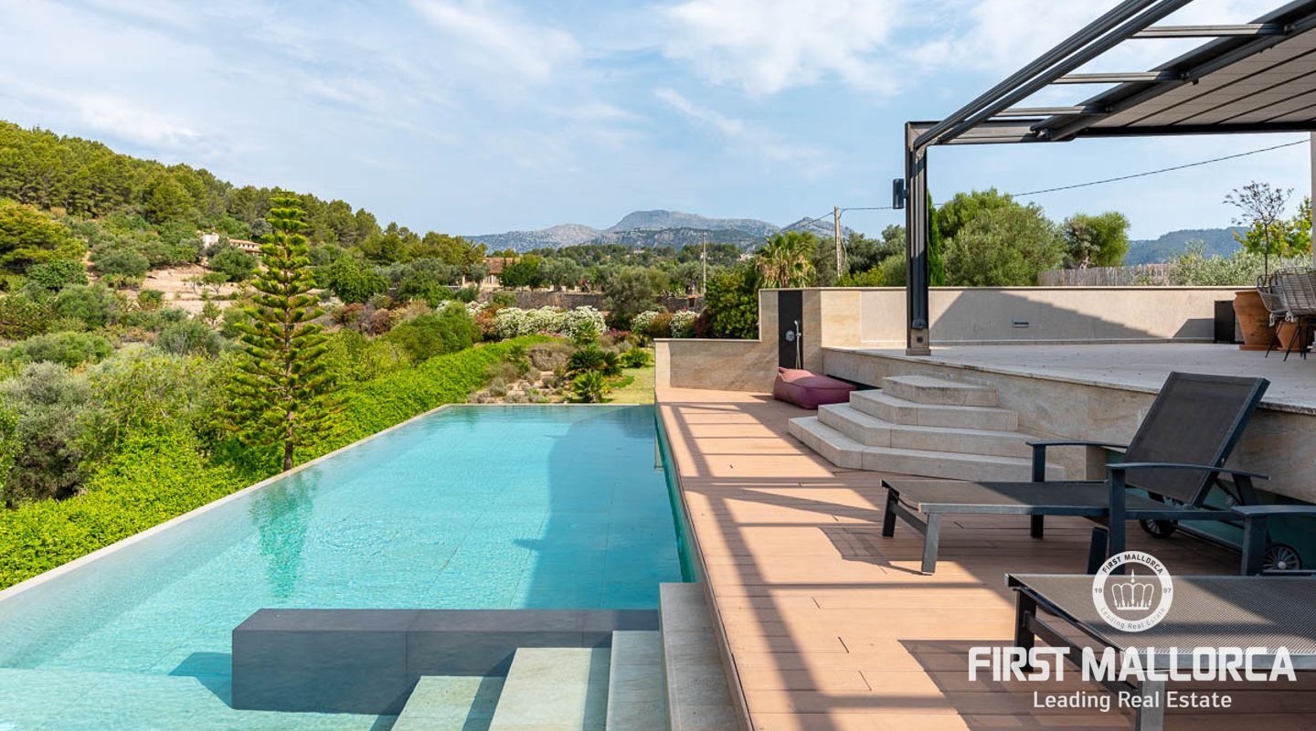 Ett unikt tillfälle att köpa en exklusiv och nyligen renoverad fastighet i toppklass med fantastisk utsikt över bergen. Det magnifika sydvästvända huset ligger i ett privilegierat läge och är idealiskt för dem som söker komfort och avskildhet i det vackra området Selva. Det spektakulära 717 m2 stora huset ligger på en tomt på 14 500 m2 och välkomnar dig i en utsökt entré som öppnar upp till ett rymligt och ljust vardagsrum med öppen spis och ett elegant och minimalistiskt kök med integrerade apparater. Här erbjuds också fem eleganta sovrum med fyra badrum, en hemmabio med underhållningsområde (biljardbord, dart och barområde), en vinkällare och ett gym som ännu inte är färdigställt. Den imponerande infinitypoolen står i centrum och utgör en idyllisk miljö för ett uppfriskande dopp en varm mallorcinsk dag. En fullständig känsla av avkoppling, denna fastighet har både täckta och icke täckta "chill-out" områden, Fastigheten har många parkeringsplatser i utomhusområdet, en damm, en tennisbana, välskötta trädgårdar och ett skogsområde. detta framtida hem är utrustat med avancerad teknik (hemautomation), luftkonditionering, värmesystem installerat på taket, larm, övervakningskamera, Sonos-ljudsystem och solpaneler. Det idylliska läget, och den enkla tillgängligheten gör det lätt att nå vilken plats som helst på ön och närheten till Selva förhindrar känslan av isolering.