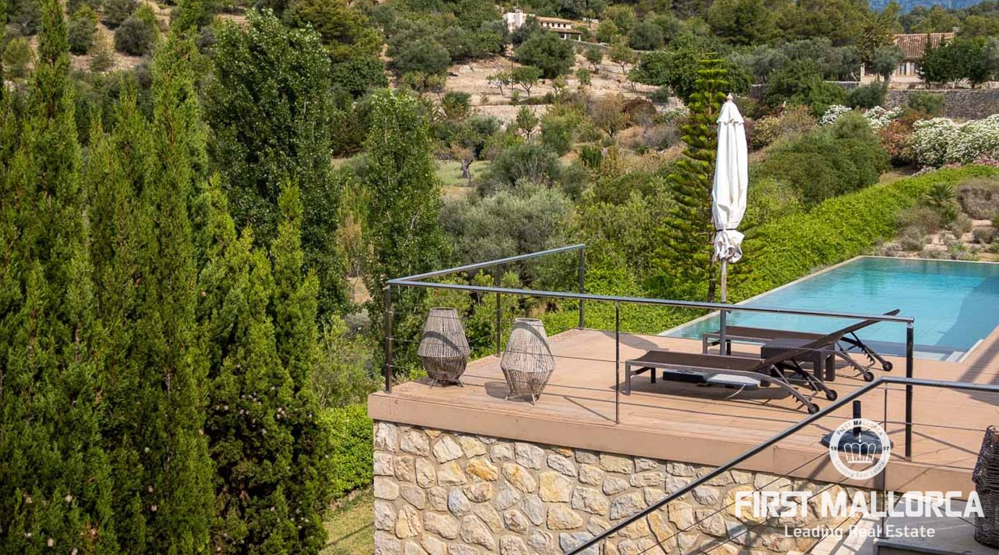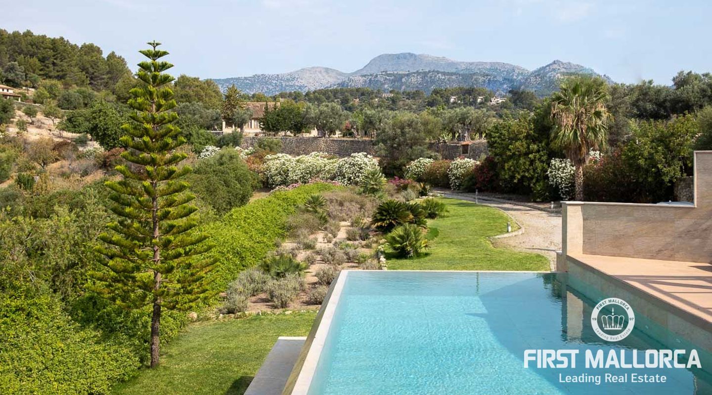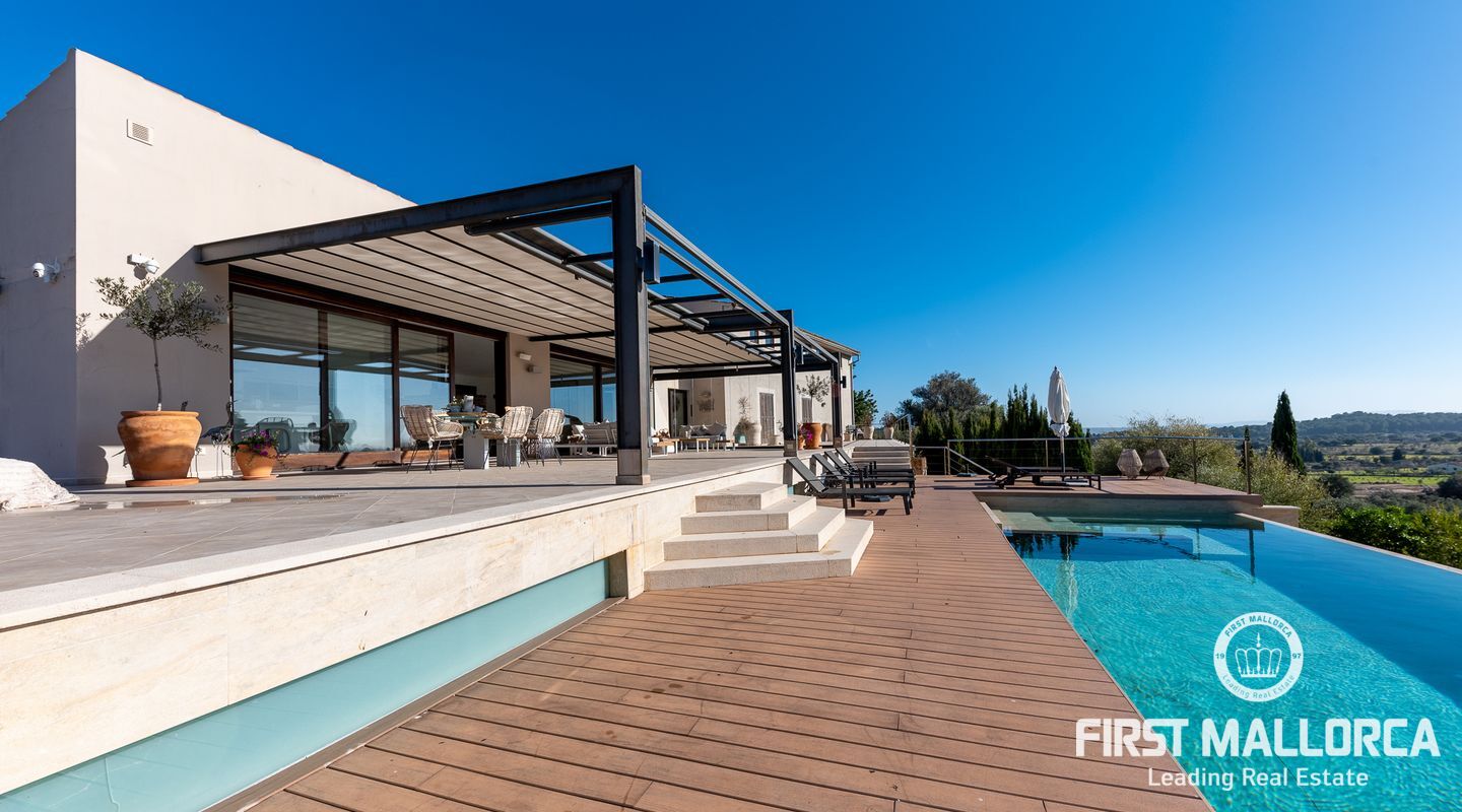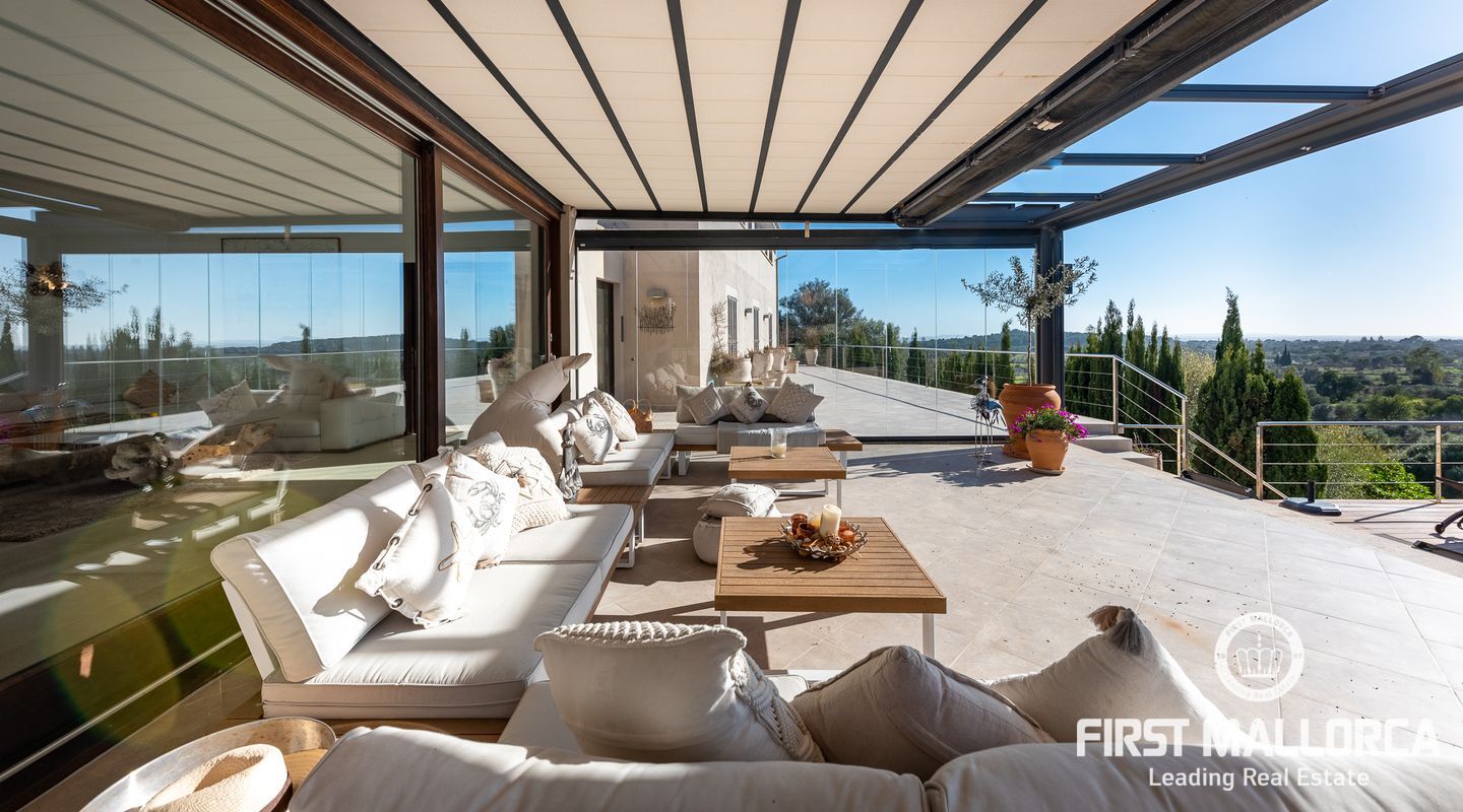 Ett unikt tillfälle att köpa en exklusiv och nyligen renoverad fastighet i toppklass med fantastisk utsikt över bergen. Det magnifika sydvästvända huset ligger i ett privilegierat läge och är idealiskt för dem som söker komfort och avskildhet i det vackra området Selva. Det spektakulära 717 m2 stora huset ligger på en tomt på 14 500 m2 och välkomnar dig i en utsökt entré som öppnar upp till ett rymligt och ljust vardagsrum med öppen spis och ett elegant och minimalistiskt kök med integrerade apparater. Här erbjuds också fem eleganta sovrum med fyra badrum, en hemmabio med underhållningsområde (biljardbord, dart och barområde), en vinkällare och ett gym som ännu inte är färdigställt. Den imponerande infinitypoolen står i centrum och utgör en idyllisk miljö för ett uppfriskande dopp en varm mallorcinsk dag. En fullständig känsla av avkoppling, denna fastighet har både täckta och icke täckta "chill-out" områden, Fastigheten har många parkeringsplatser i utomhusområdet, en damm, en tennisbana, välskötta trädgårdar och ett skogsområde. detta framtida hem är utrustat med avancerad teknik (hemautomation), luftkonditionering, värmesystem installerat på taket, larm, övervakningskamera, Sonos-ljudsystem och solpaneler. Det idylliska läget, och den enkla tillgängligheten gör det lätt att nå vilken plats som helst på ön och närheten till Selva förhindrar känslan av isolering.