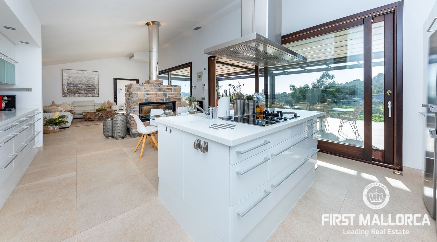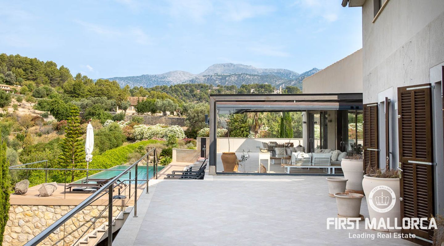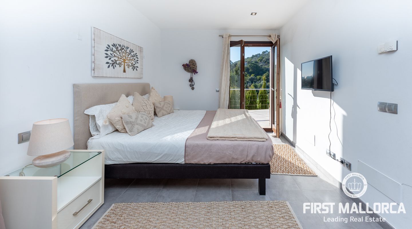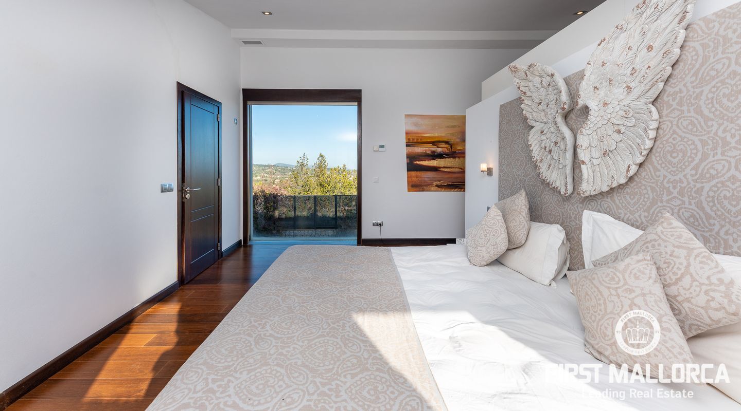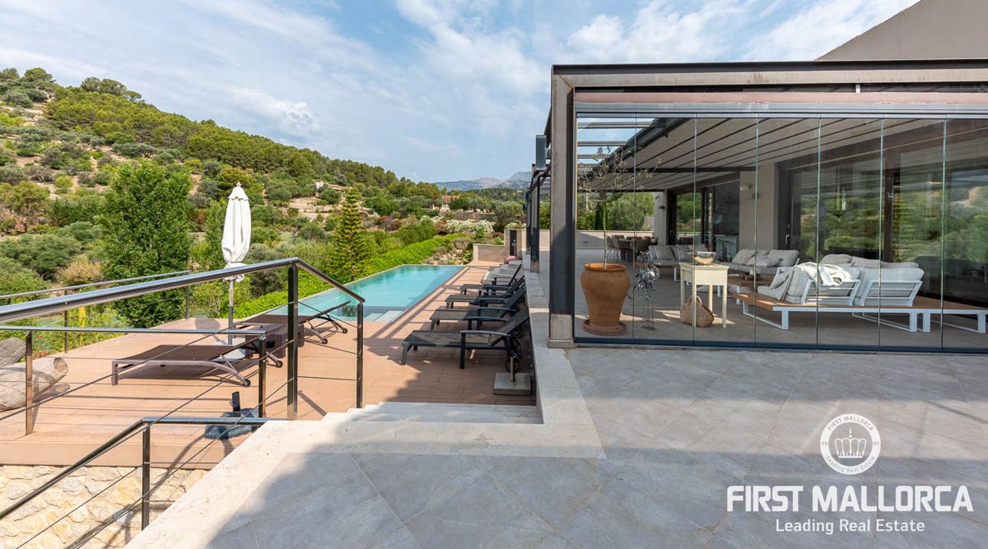 Ett unikt tillfälle att köpa en exklusiv och nyligen renoverad fastighet i toppklass med fantastisk utsikt över bergen. Det magnifika sydvästvända huset ligger i ett privilegierat läge och är idealiskt för dem som söker komfort och avskildhet i det vackra området Selva. Det spektakulära 717 m2 stora huset ligger på en tomt på 14 500 m2 och välkomnar dig i en utsökt entré som öppnar upp till ett rymligt och ljust vardagsrum med öppen spis och ett elegant och minimalistiskt kök med integrerade apparater. Här erbjuds också fem eleganta sovrum med fyra badrum, en hemmabio med underhållningsområde (biljardbord, dart och barområde), en vinkällare och ett gym som ännu inte är färdigställt. Den imponerande infinitypoolen står i centrum och utgör en idyllisk miljö för ett uppfriskande dopp en varm mallorcinsk dag. En fullständig känsla av avkoppling, denna fastighet har både täckta och icke täckta "chill-out" områden, Fastigheten har många parkeringsplatser i utomhusområdet, en damm, en tennisbana, välskötta trädgårdar och ett skogsområde. detta framtida hem är utrustat med avancerad teknik (hemautomation), luftkonditionering, värmesystem installerat på taket, larm, övervakningskamera, Sonos-ljudsystem och solpaneler. Det idylliska läget, och den enkla tillgängligheten gör det lätt att nå vilken plats som helst på ön och närheten till Selva förhindrar känslan av isolering.