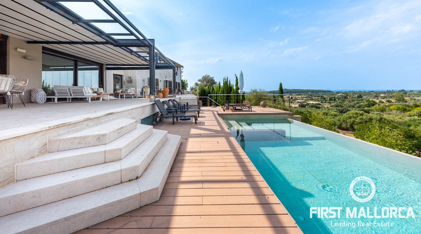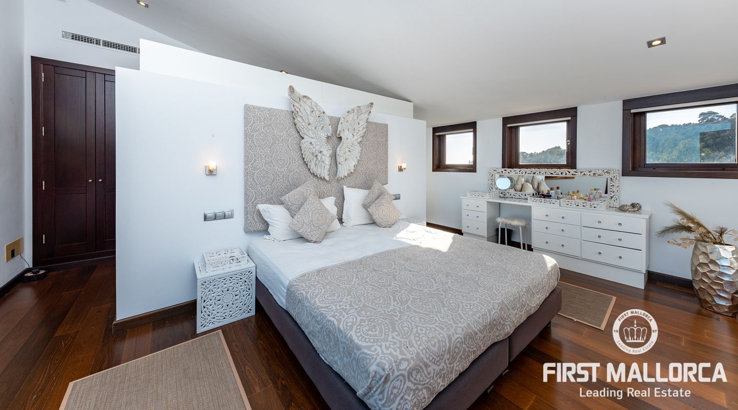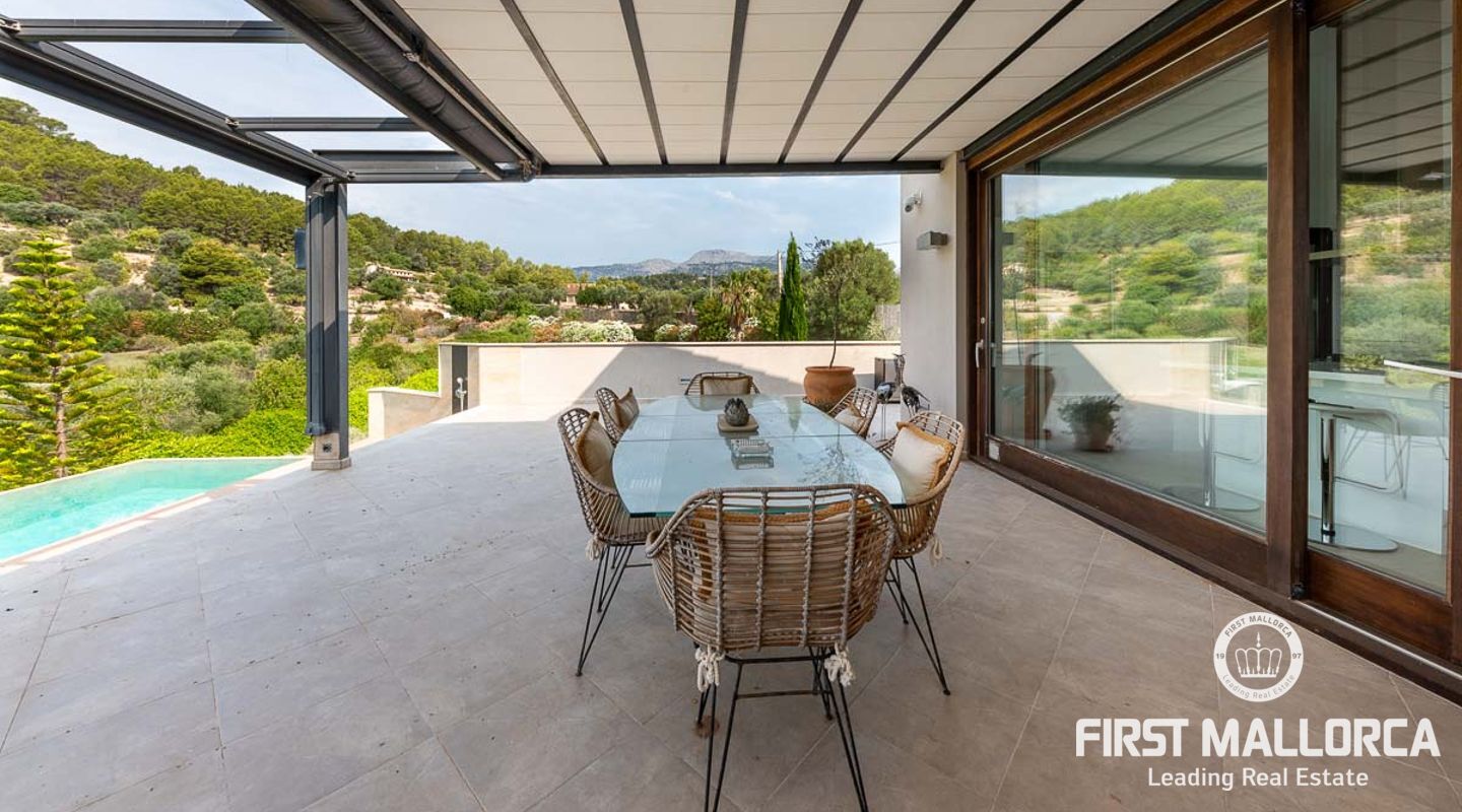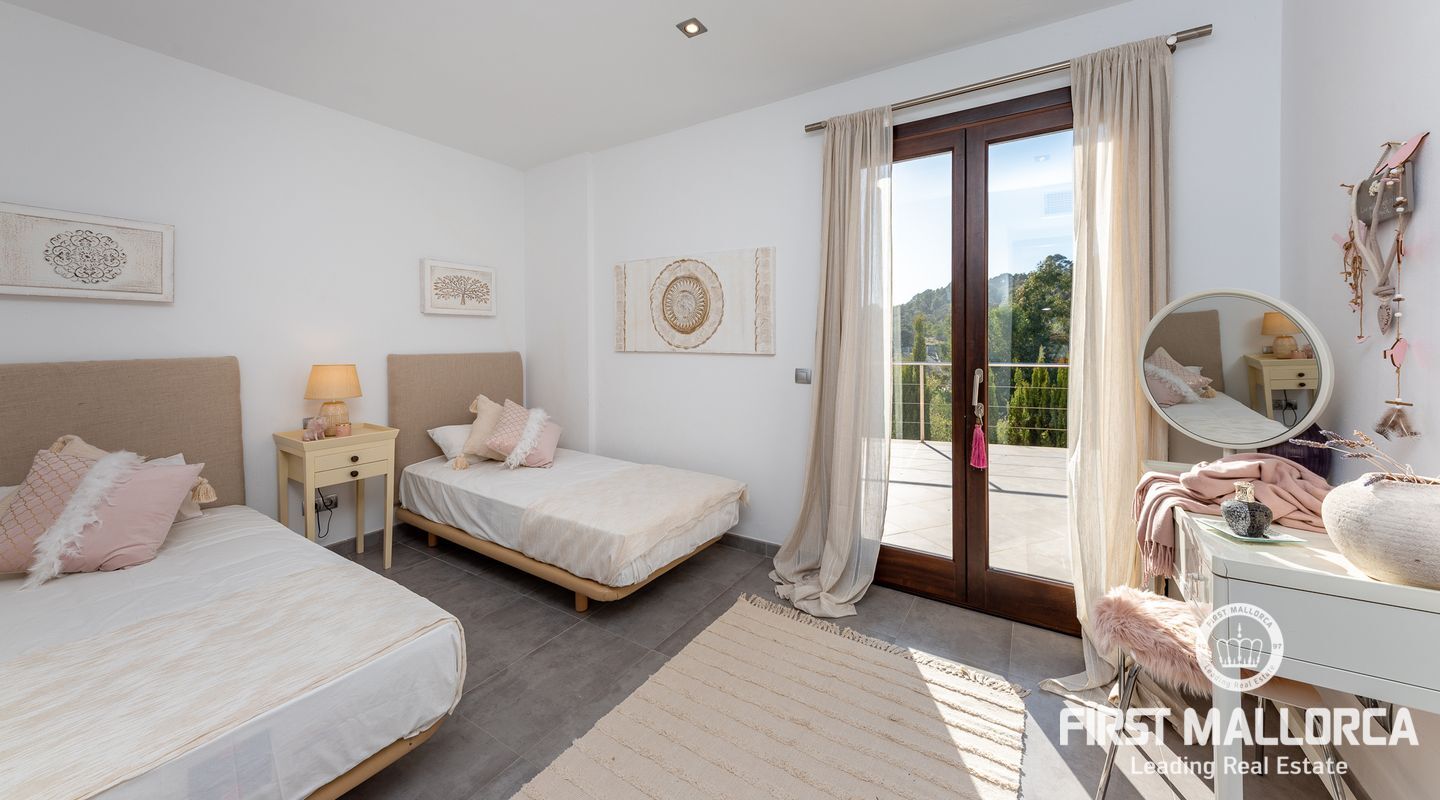 Ett unikt tillfälle att köpa en exklusiv och nyligen renoverad fastighet i toppklass med fantastisk utsikt över bergen. Det magnifika sydvästvända huset ligger i ett privilegierat läge och är idealiskt för dem som söker komfort och avskildhet i det vackra området Selva. Det spektakulära 717 m2 stora huset ligger på en tomt på 14 500 m2 och välkomnar dig i en utsökt entré som öppnar upp till ett rymligt och ljust vardagsrum med öppen spis och ett elegant och minimalistiskt kök med integrerade apparater. Här erbjuds också fem eleganta sovrum med fyra badrum, en hemmabio med underhållningsområde (biljardbord, dart och barområde), en vinkällare och ett gym som ännu inte är färdigställt. Den imponerande infinitypoolen står i centrum och utgör en idyllisk miljö för ett uppfriskande dopp en varm mallorcinsk dag. En fullständig känsla av avkoppling, denna fastighet har både täckta och icke täckta "chill-out" områden, Fastigheten har många parkeringsplatser i utomhusområdet, en damm, en tennisbana, välskötta trädgårdar och ett skogsområde. detta framtida hem är utrustat med avancerad teknik (hemautomation), luftkonditionering, värmesystem installerat på taket, larm, övervakningskamera, Sonos-ljudsystem och solpaneler. Det idylliska läget, och den enkla tillgängligheten gör det lätt att nå vilken plats som helst på ön och närheten till Selva förhindrar känslan av isolering.