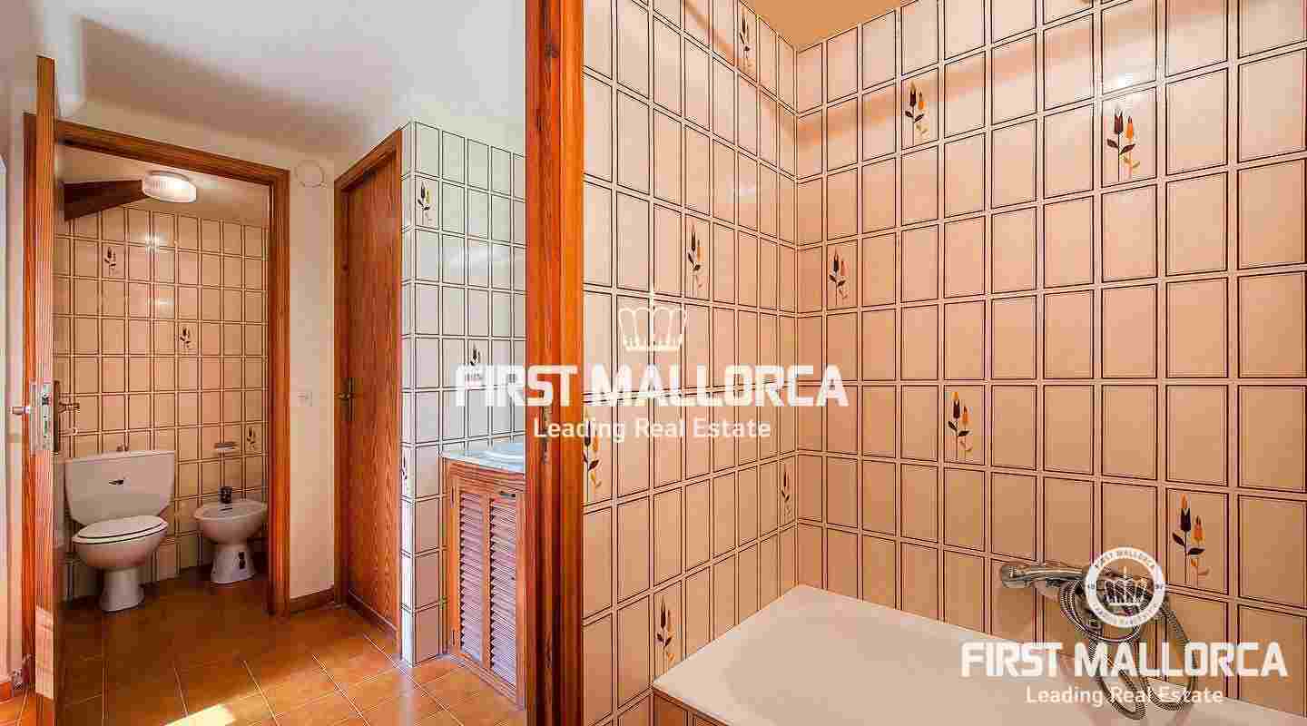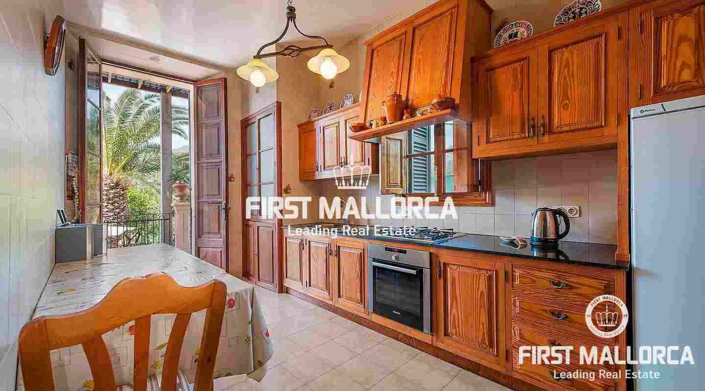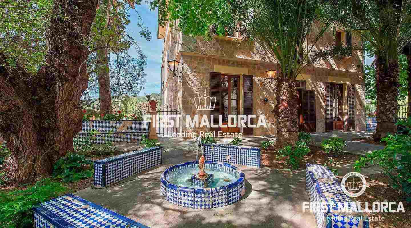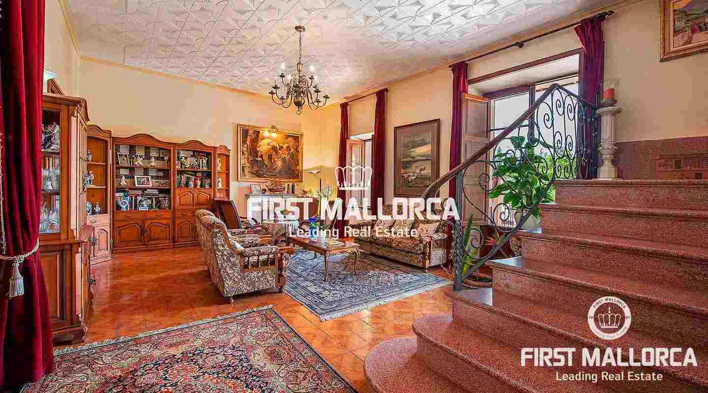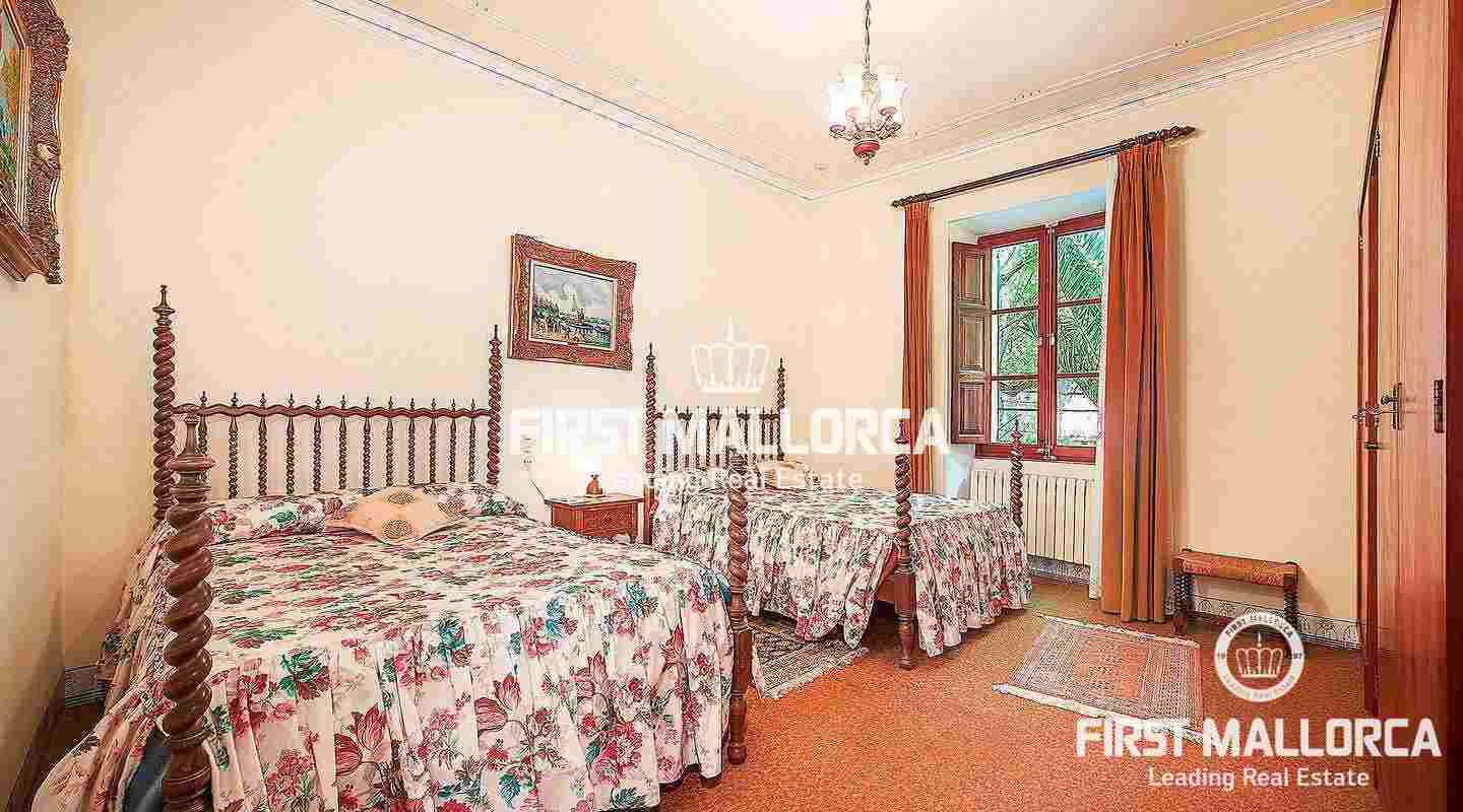 Den byggda ytan på 300 m² är fördelad på 3 våningar plus en bodega och ett gästrum i källaren. Huvudvåningen med rymligt vardagsrum, matsal, kök och kontor har tillgång till trädgården med en härlig fontän. Övervåningen består av 4 sovrum, 3 badrum och ett vinterträdgård med fantastisk utsikt över landsbygden. På övervåningen finns ytterligare 2 sovrum, 2 badrum, en takterrass och andra rum som kan utformas av den nya ägaren. Centralvärme med olja och en öppen spis garanterar behagliga temperaturer även under de kallare dagarna. Alla rum har högt i tak och stora fönster som ger en ljus interiör. Dessutom finns det flera förrådsutrymmen, typiskt mallorcanskt kakel och ett dubbelgarage. Bakom villan finns en apelsinlund, olika terrasser och en stor pool.